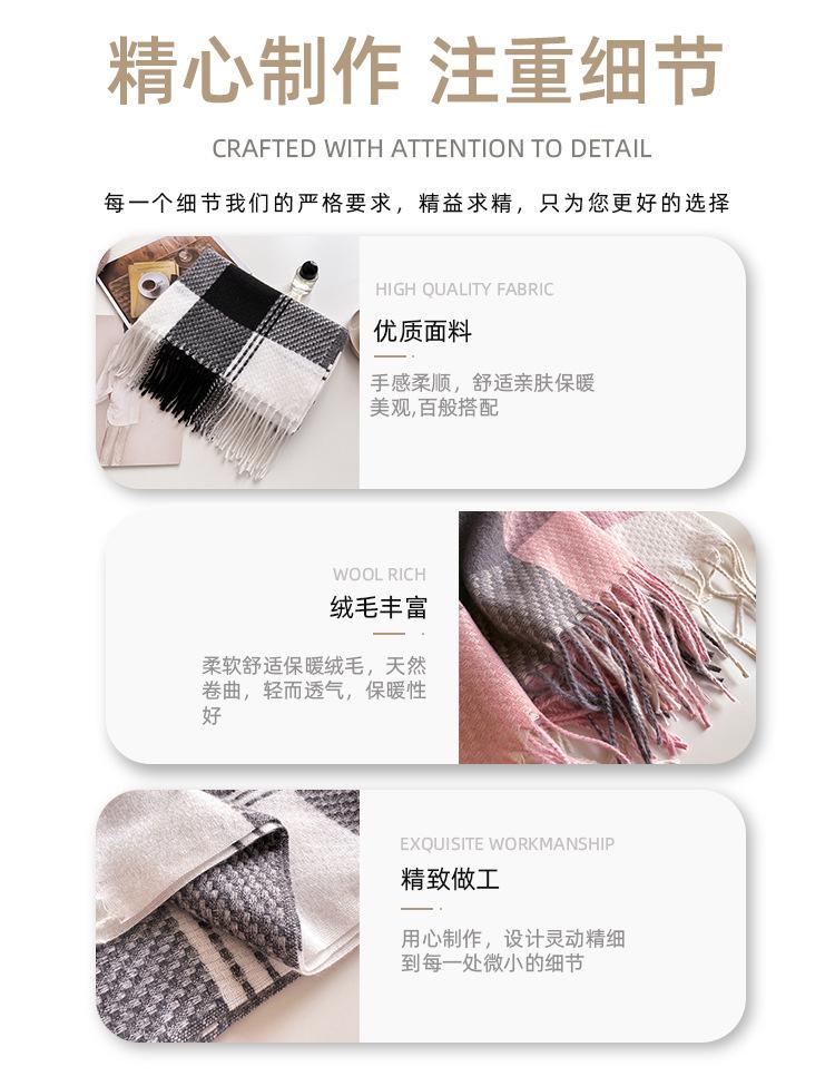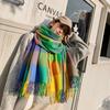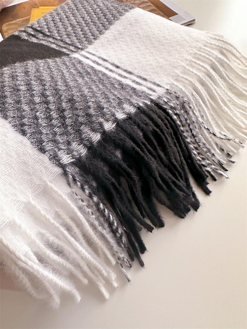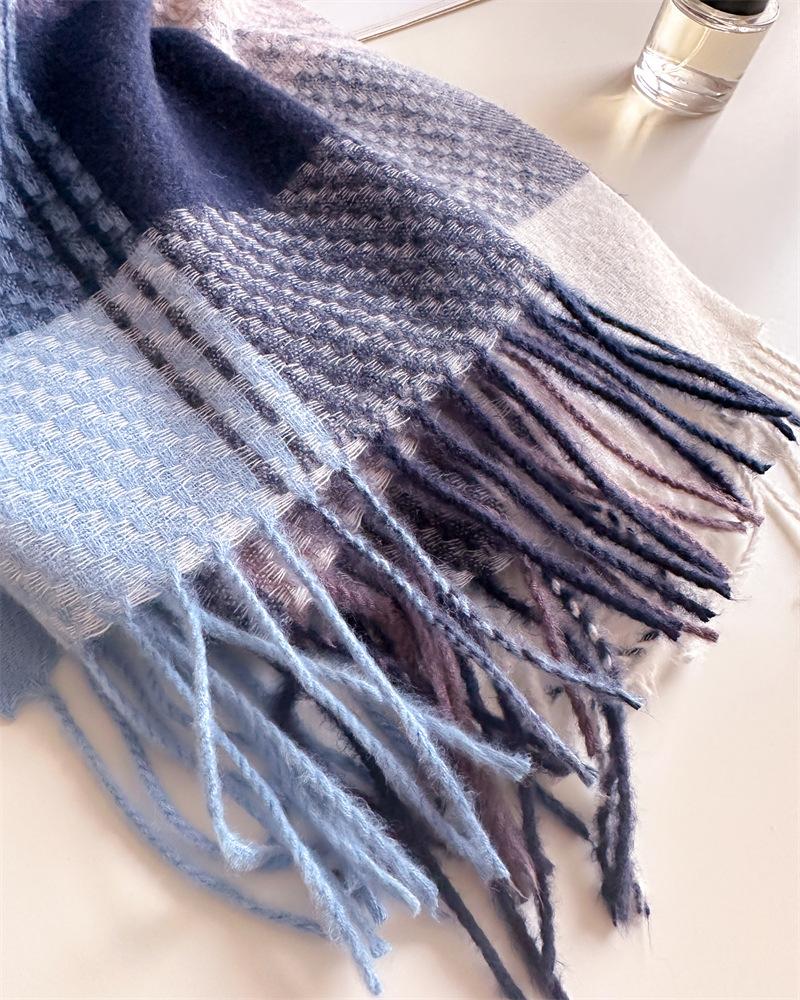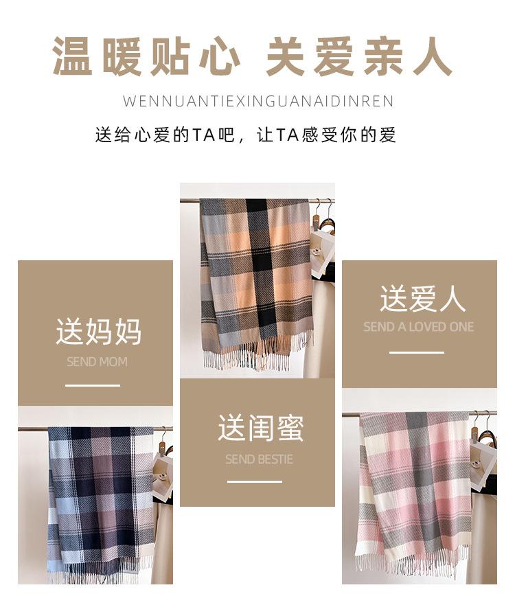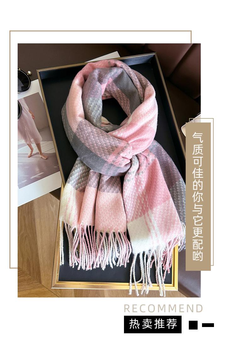 Bufanda de cachemira de estilo nórdico, grande, cálida, a cuadros, unisex, para otoño e invierno, con borlas que combinan con todo.