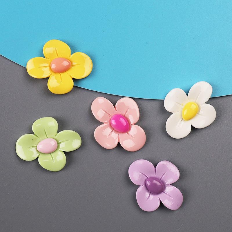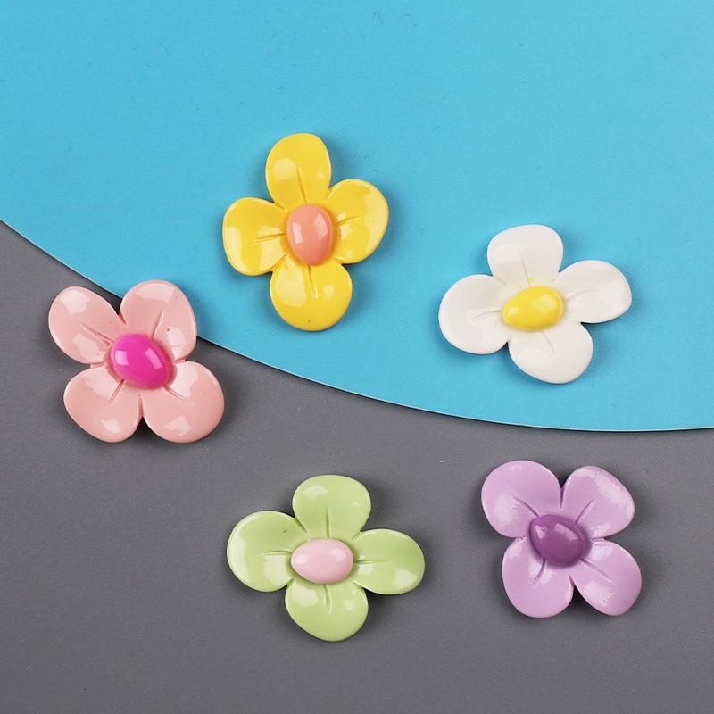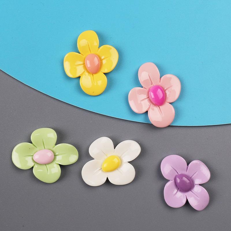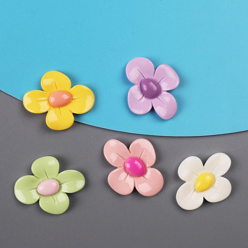 Pegamento en crema de resina con forma de flor brillante de cuatro pétalos, accesorio para horquillas hecho a mano, parche para carcasa de teléfono móvil, material para taza