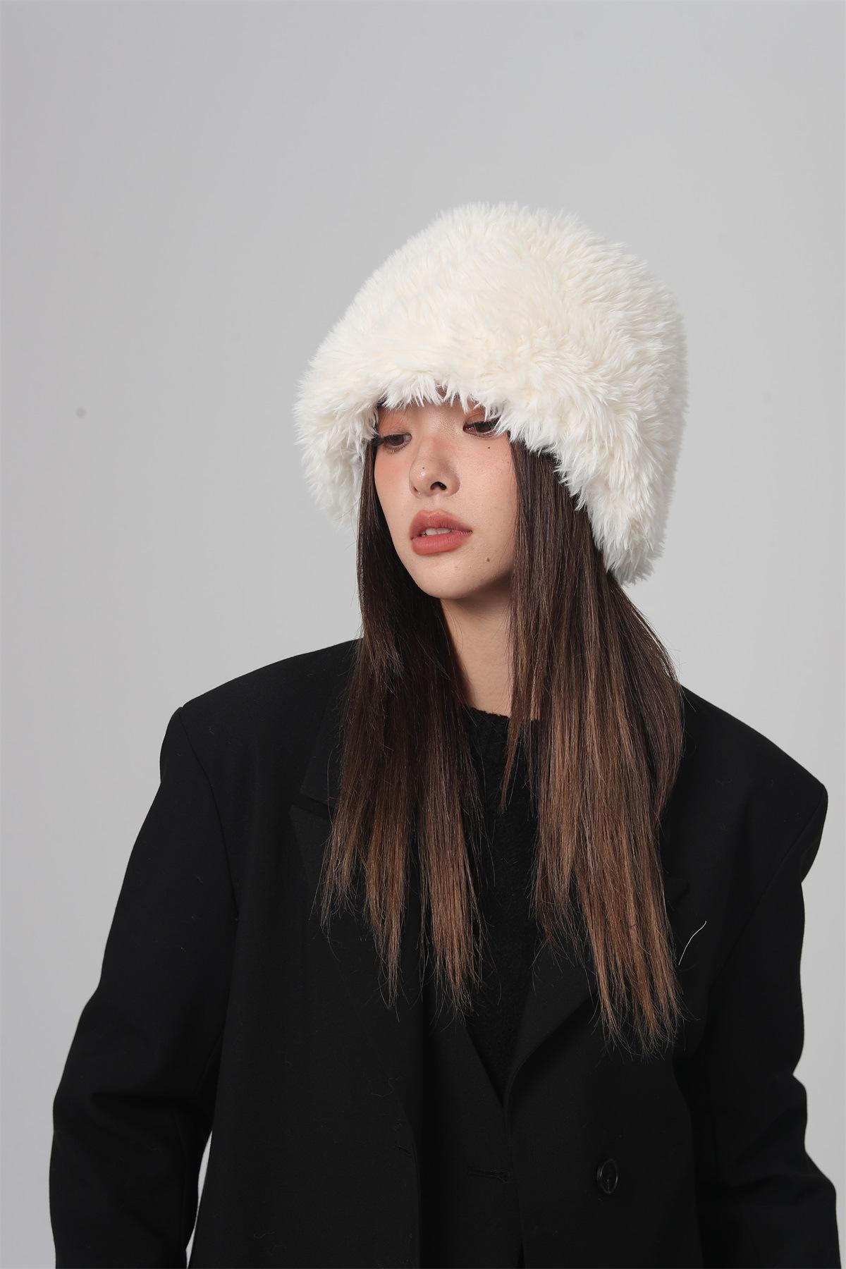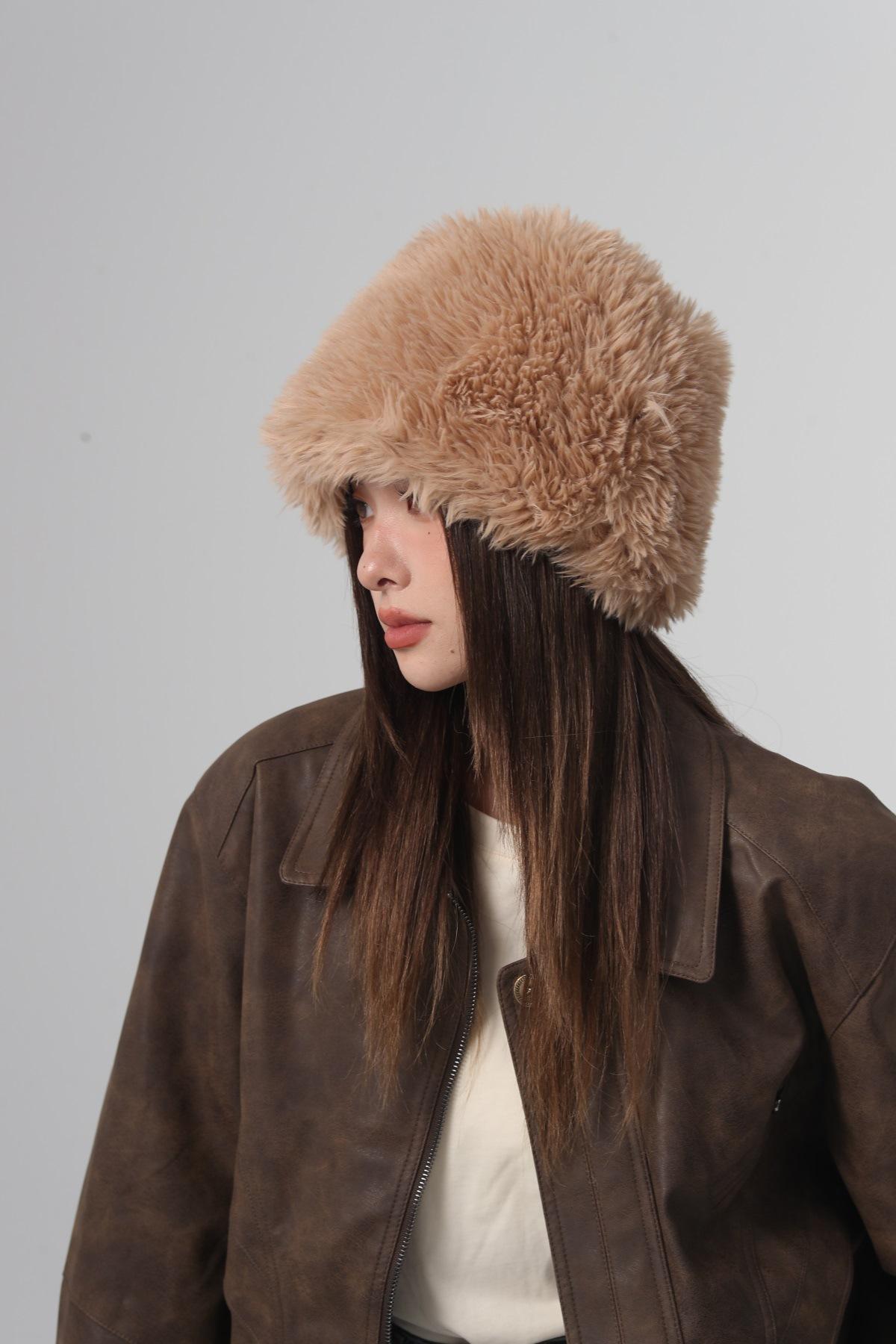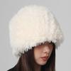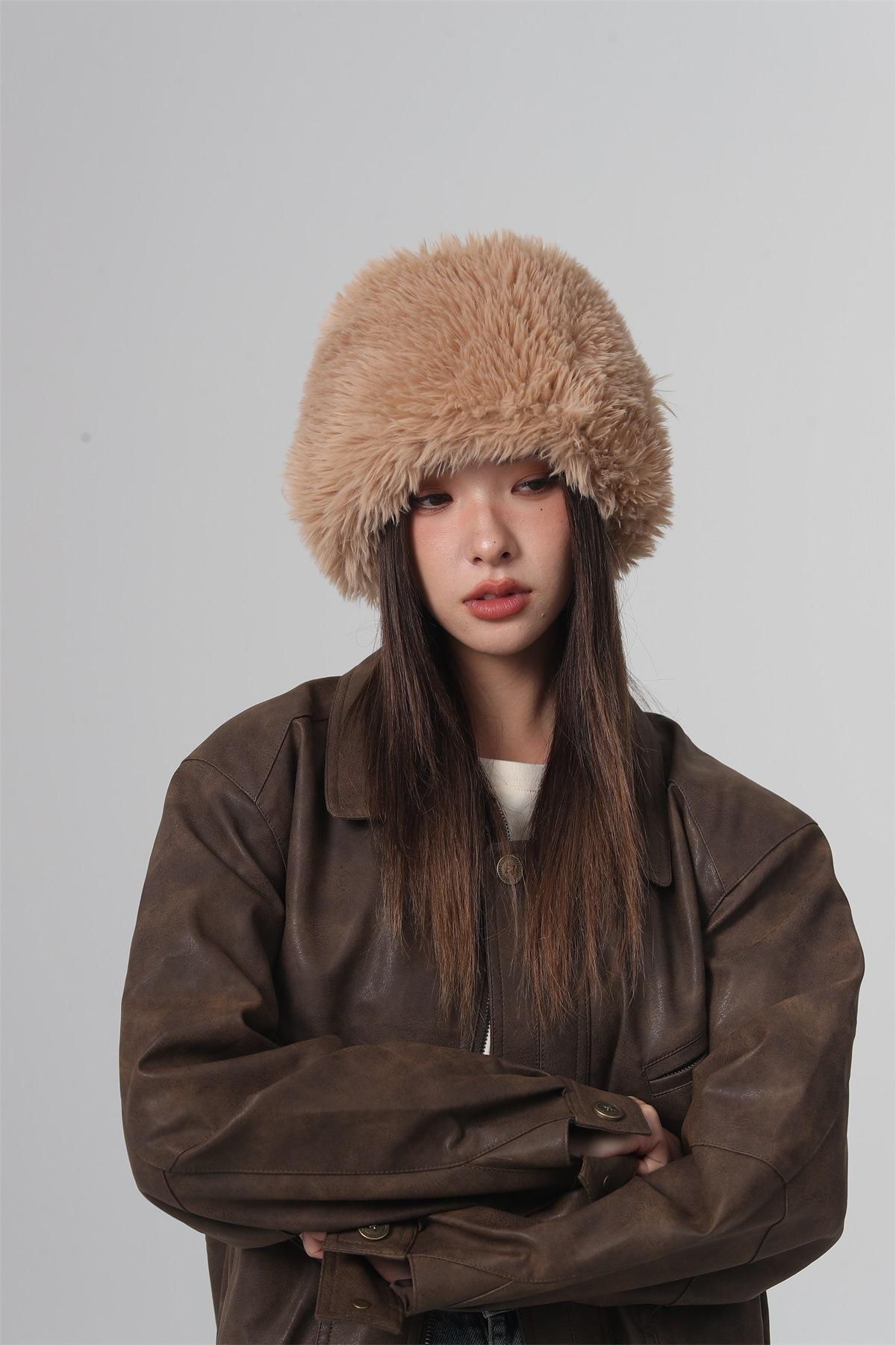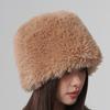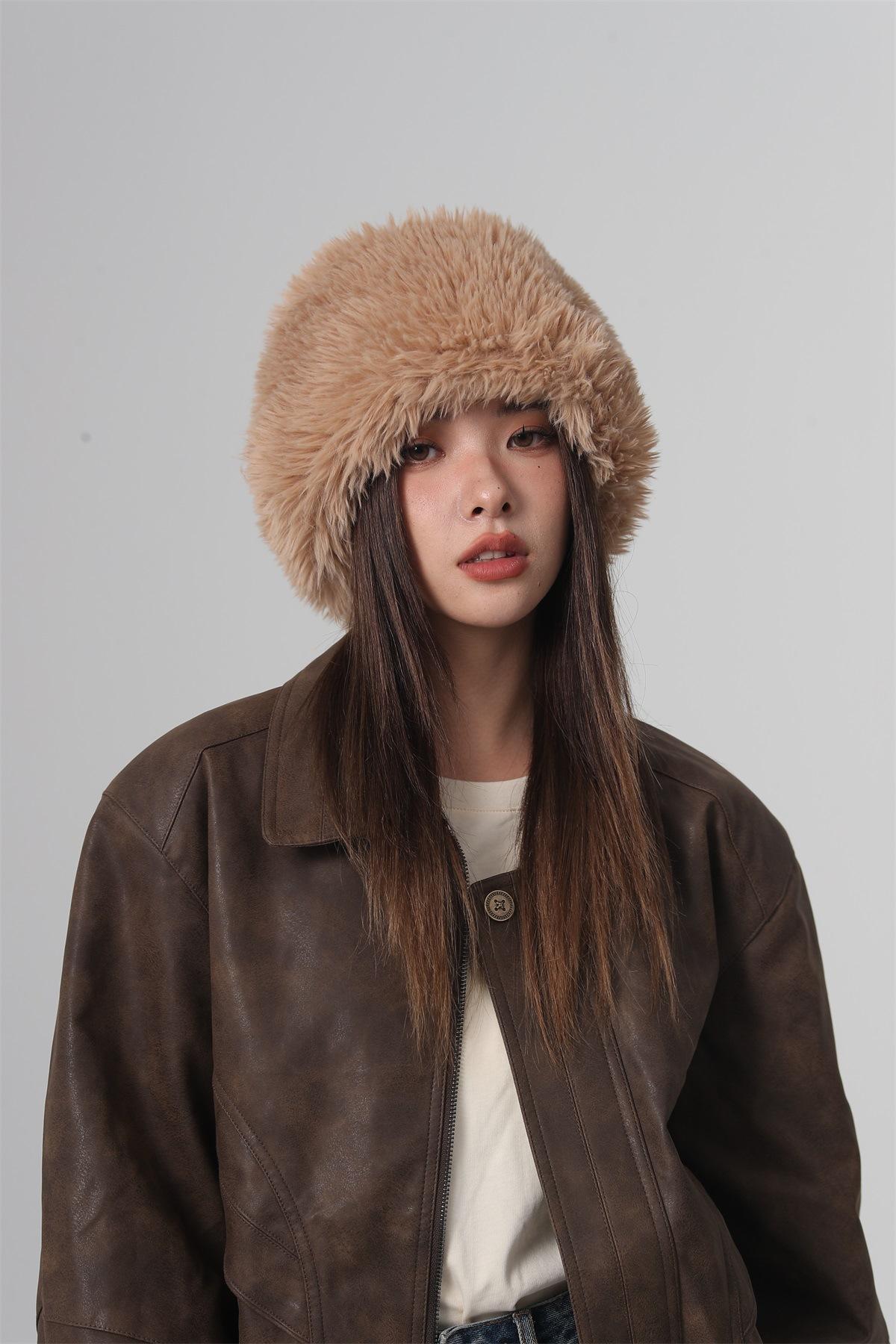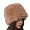 Sombrero de pescador de felpa simple de estilo japonés para mujer, gorro de lavabo informal liso para otoño e invierno, gorro de cubo pequeño con aspecto cálido y cara abrigada.