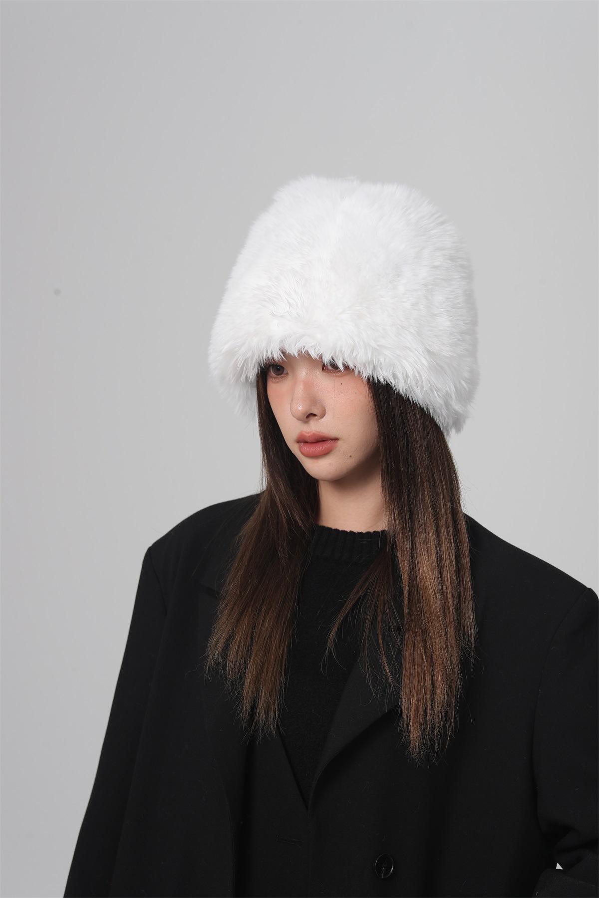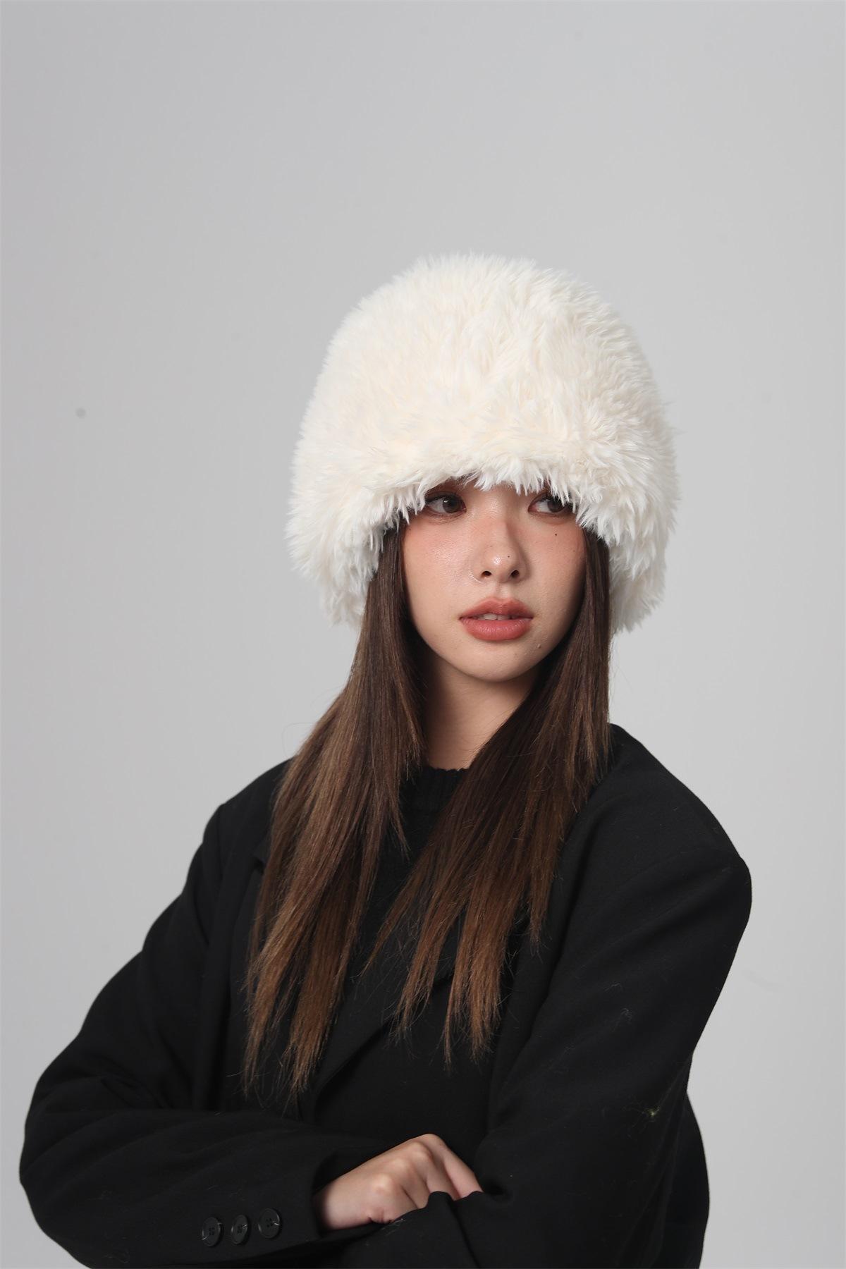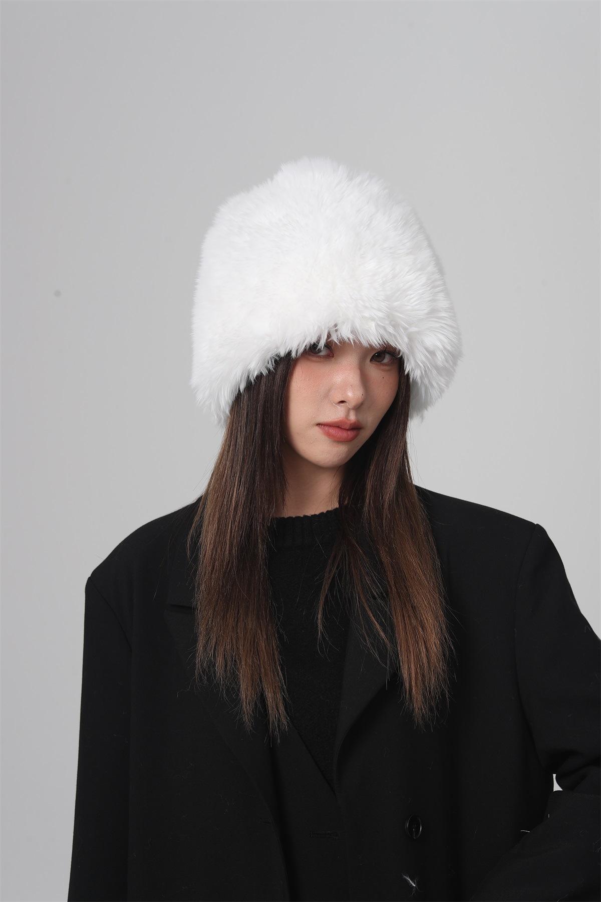 Sombrero de pescador de felpa simple de estilo japonés para mujer, gorro de lavabo informal liso para otoño e invierno, gorro de cubo pequeño con aspecto cálido y cara abrigada.