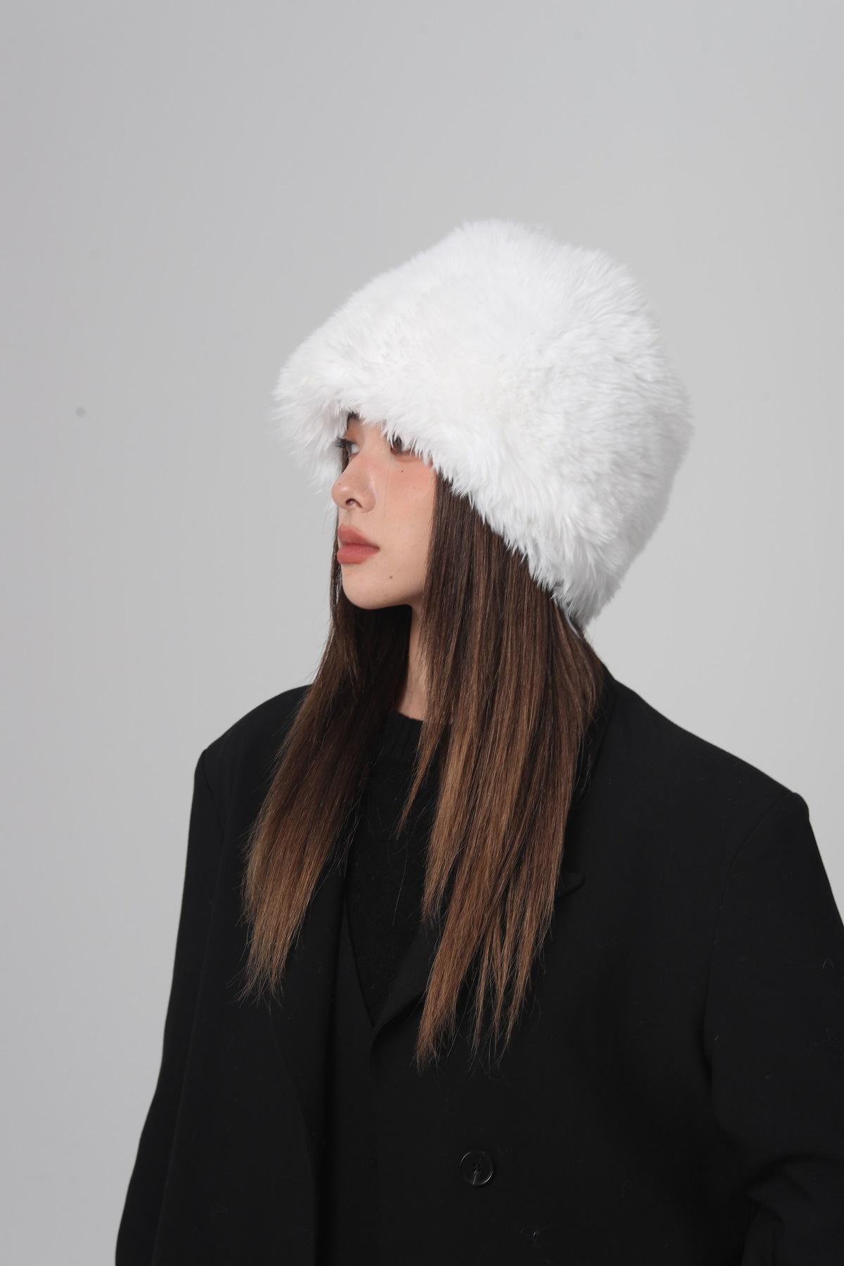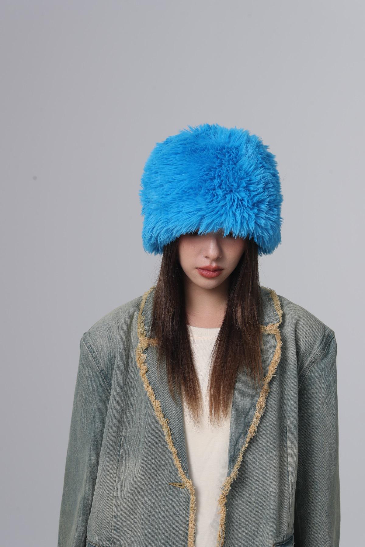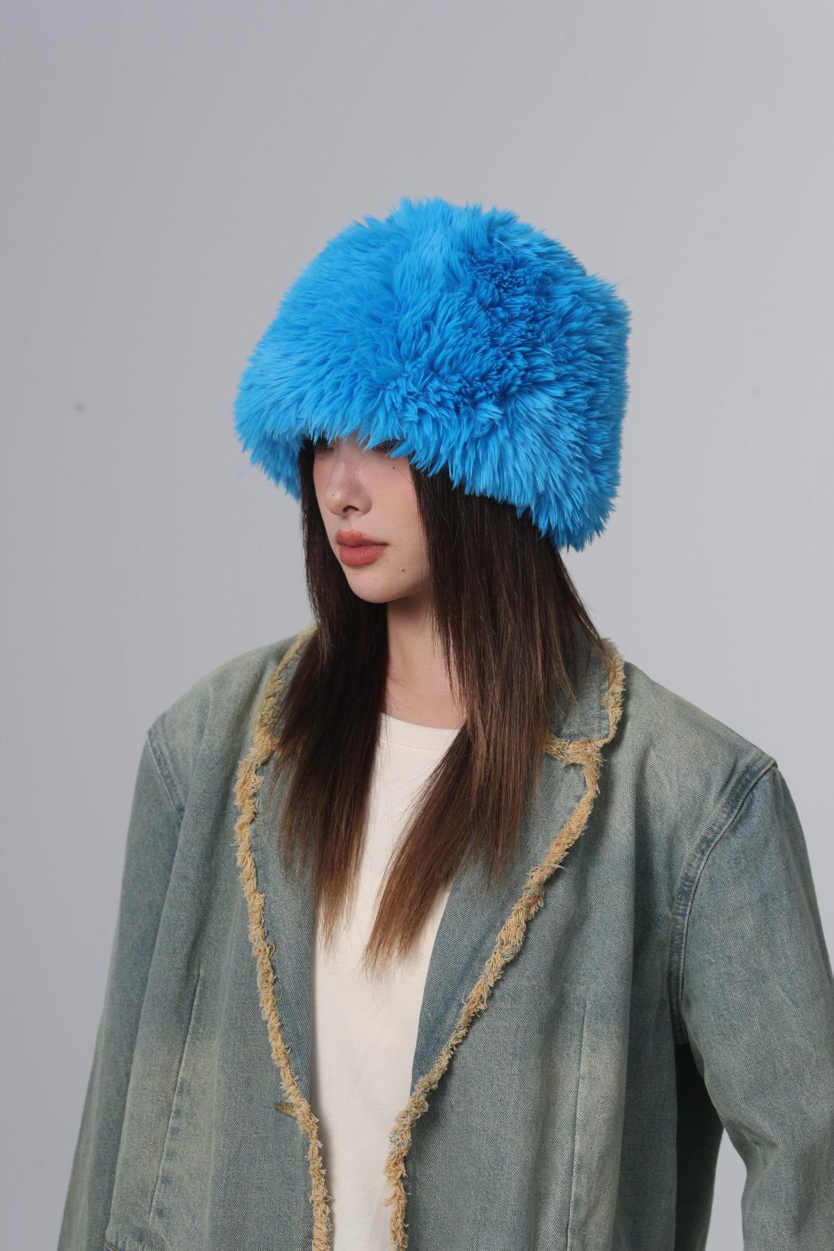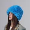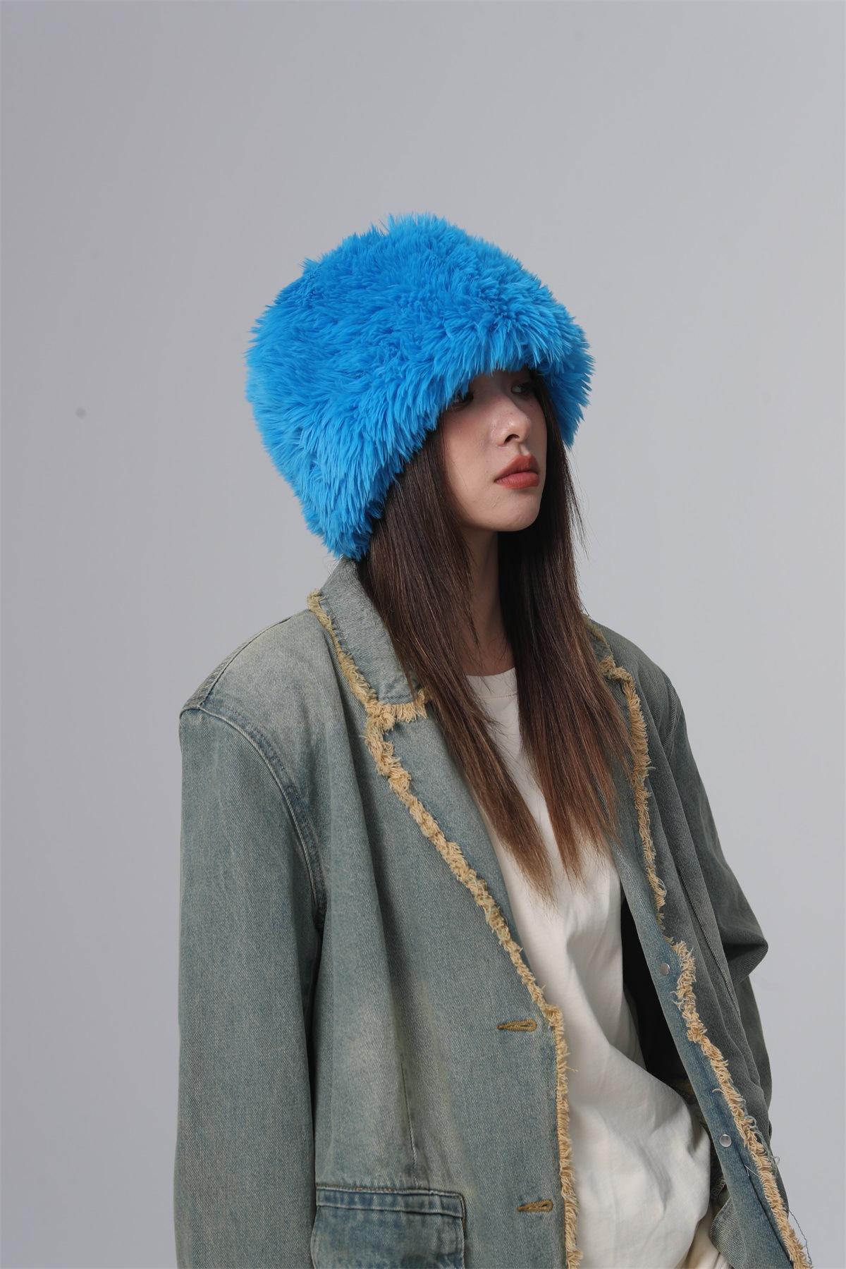 Sombrero de pescador de felpa simple de estilo japonés para mujer, gorro de lavabo informal liso para otoño e invierno, gorro de cubo pequeño con aspecto cálido y cara abrigada.