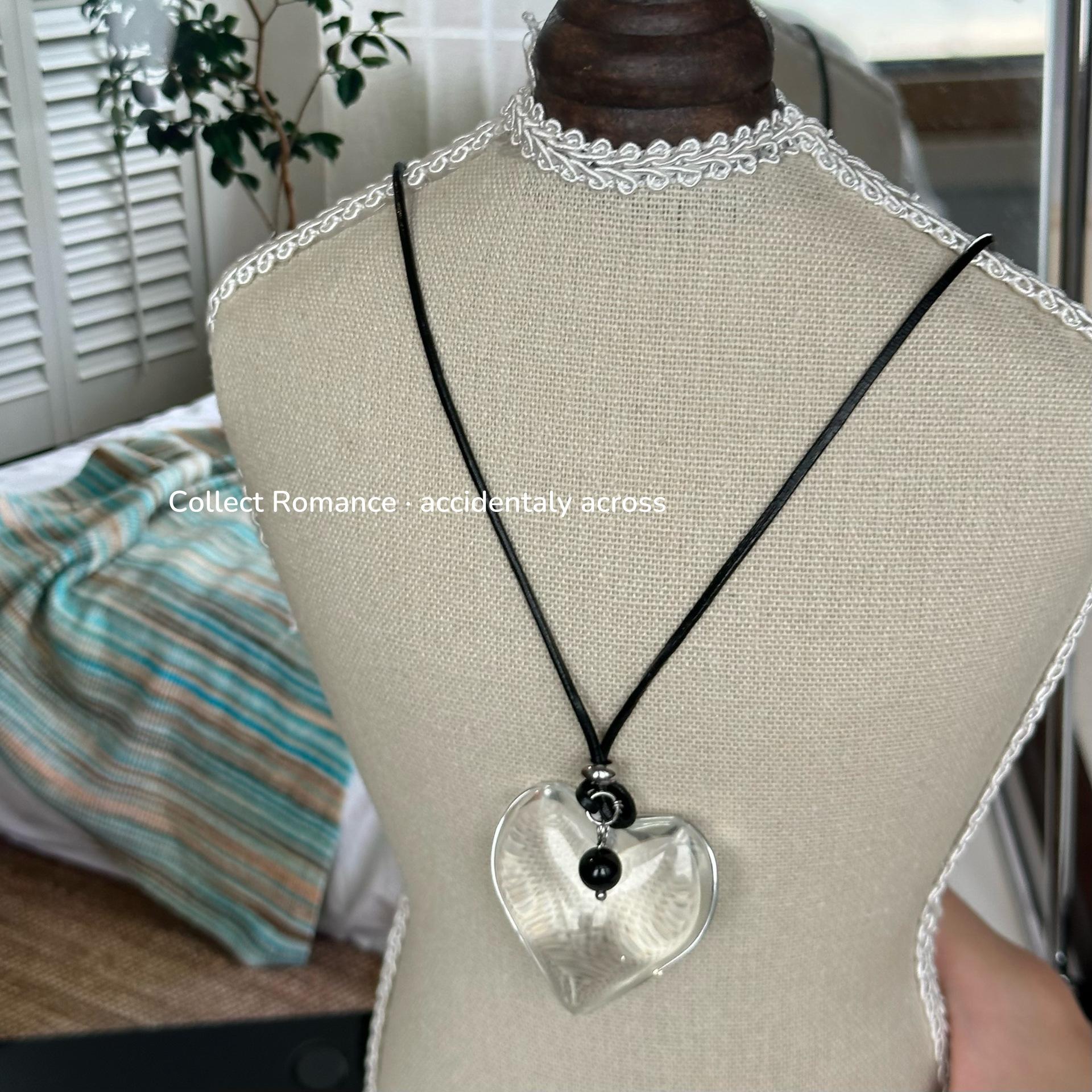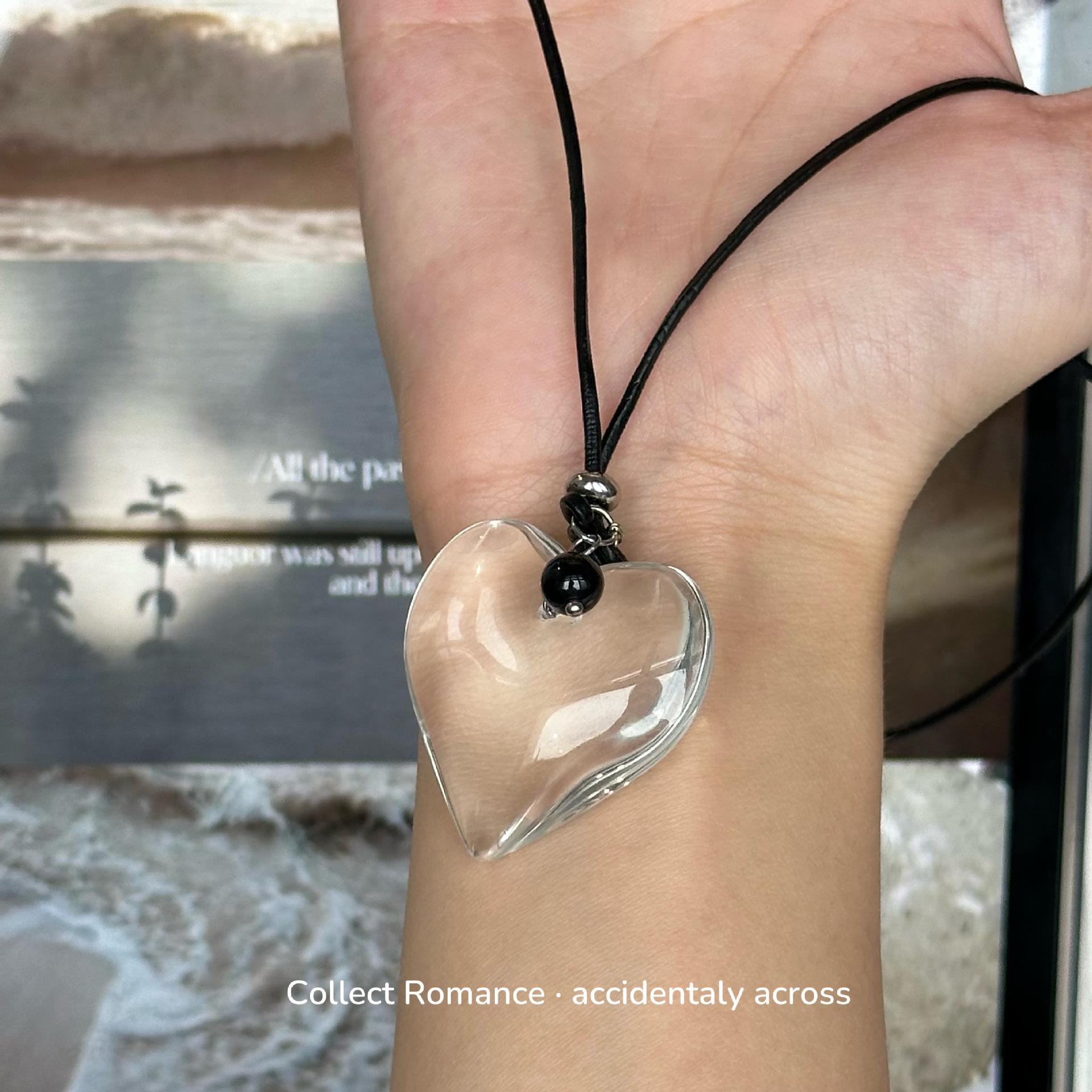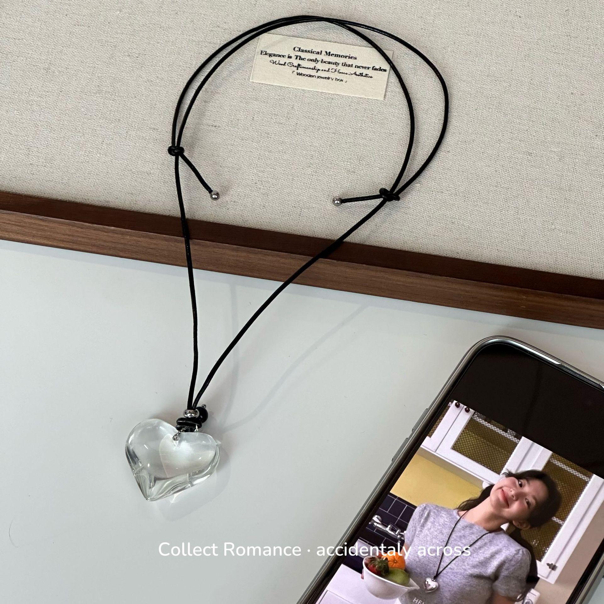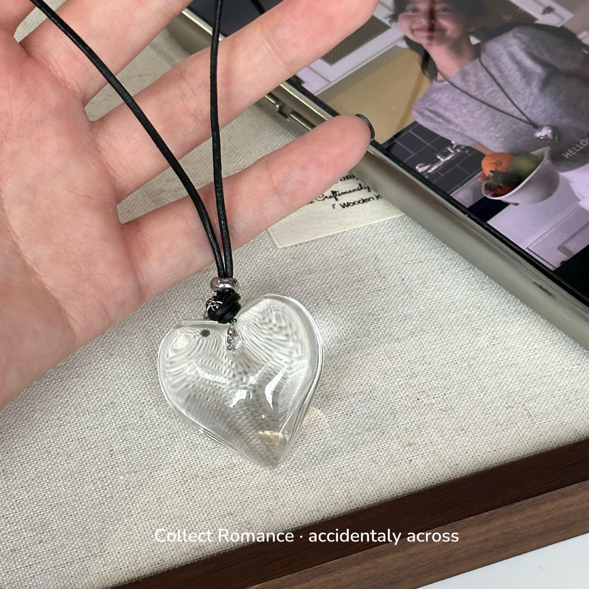 Collar con colgante de corazón de cristal transparente con diseño de nicho de estilo coreano, cadena de suéter versátil para mujer
