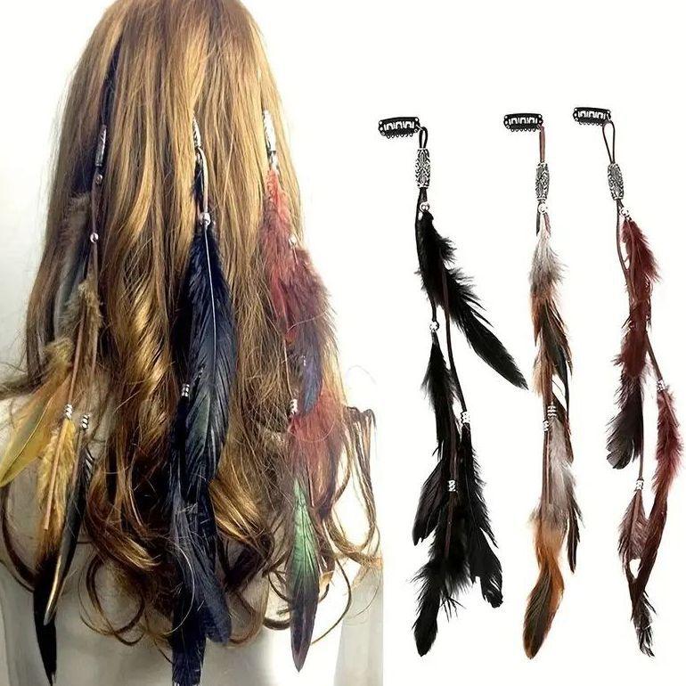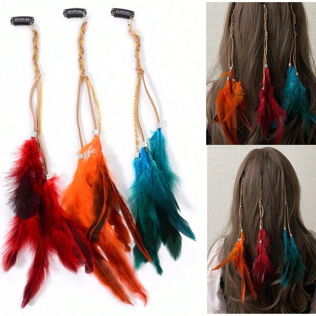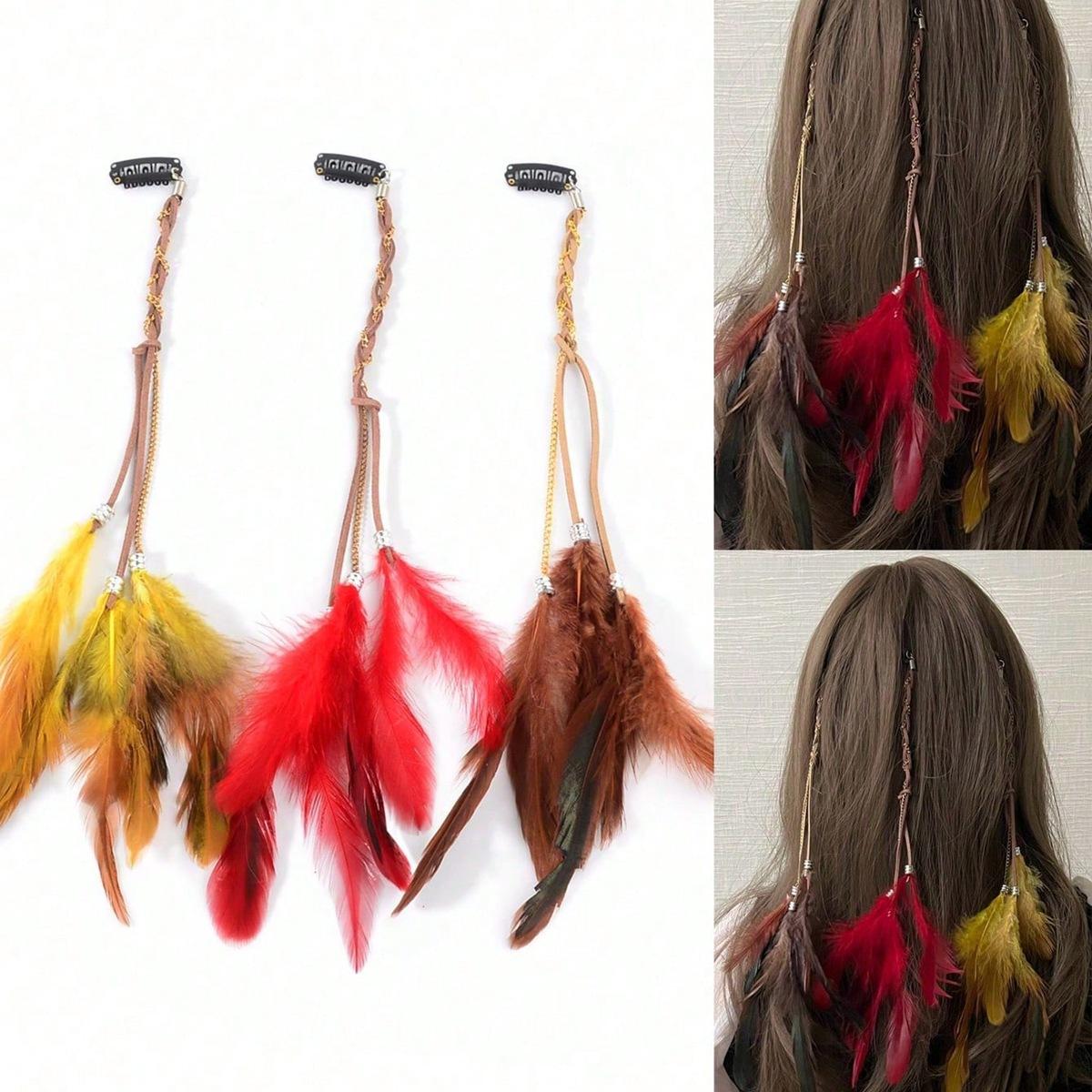 Horquilla para el pelo con plumas de pollo estilo indio étnico, estilo bohemio, estilo retro transfronterizo europeo y americano.
