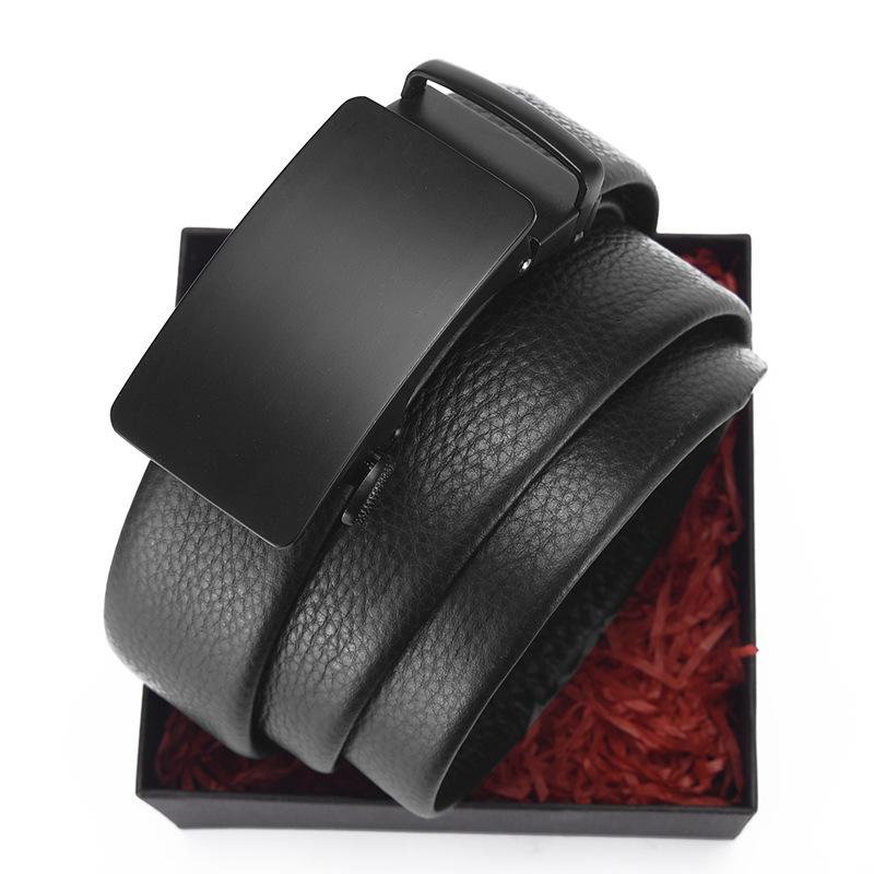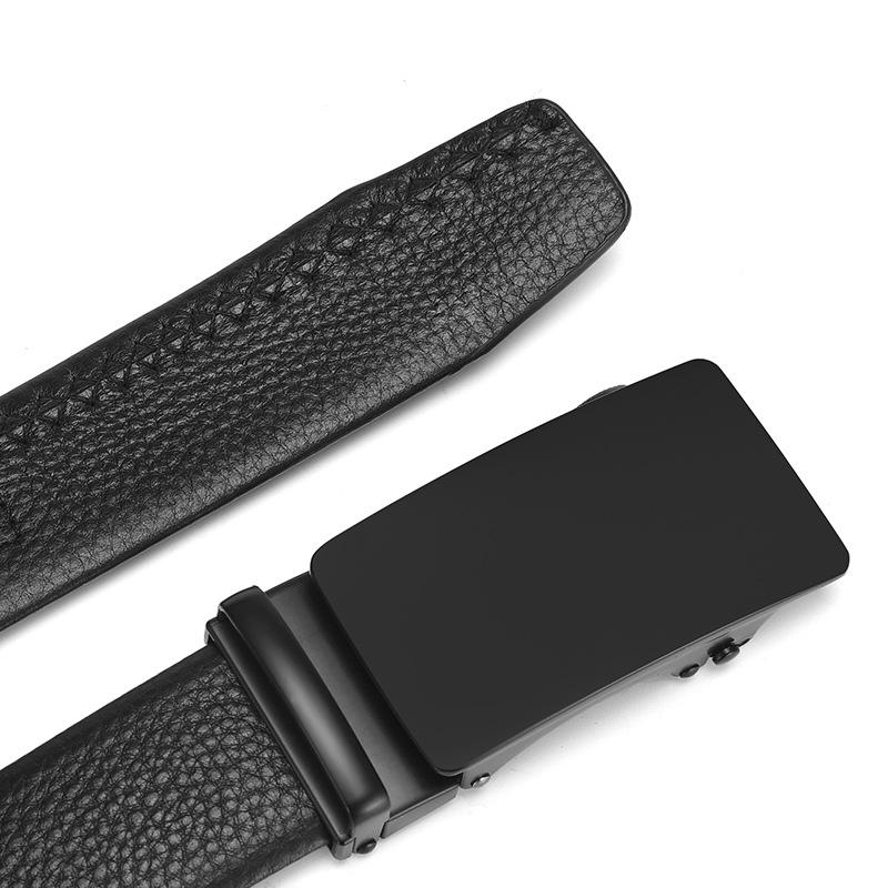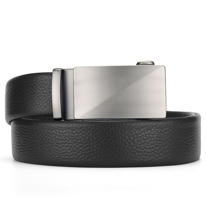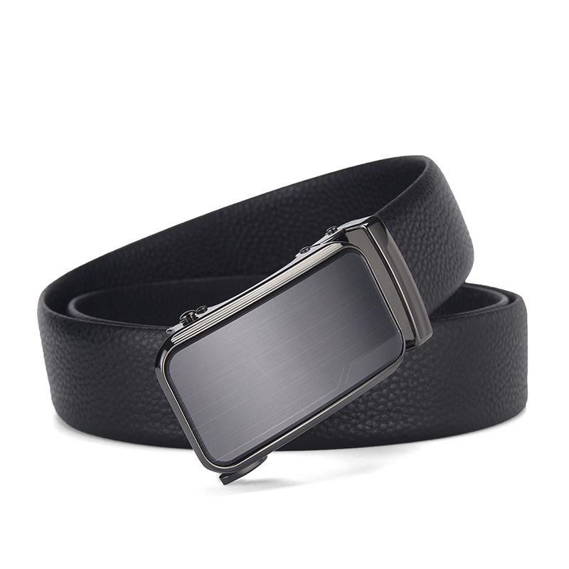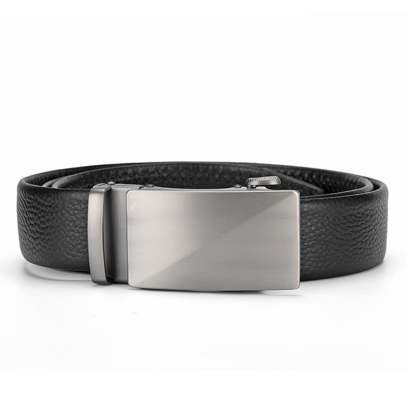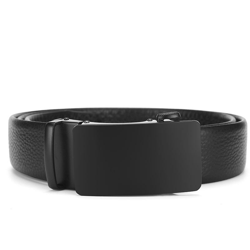Cinturón de hombre de gran venta transfronteriza, hebilla automática, estampado de lichi, de piel de vaca de dos capas, informal