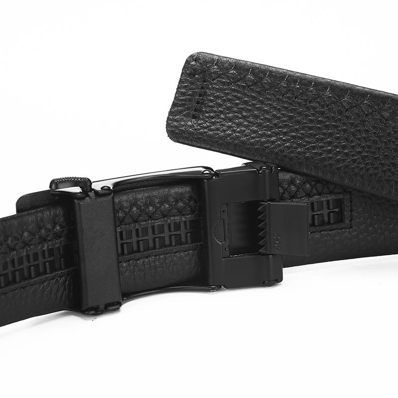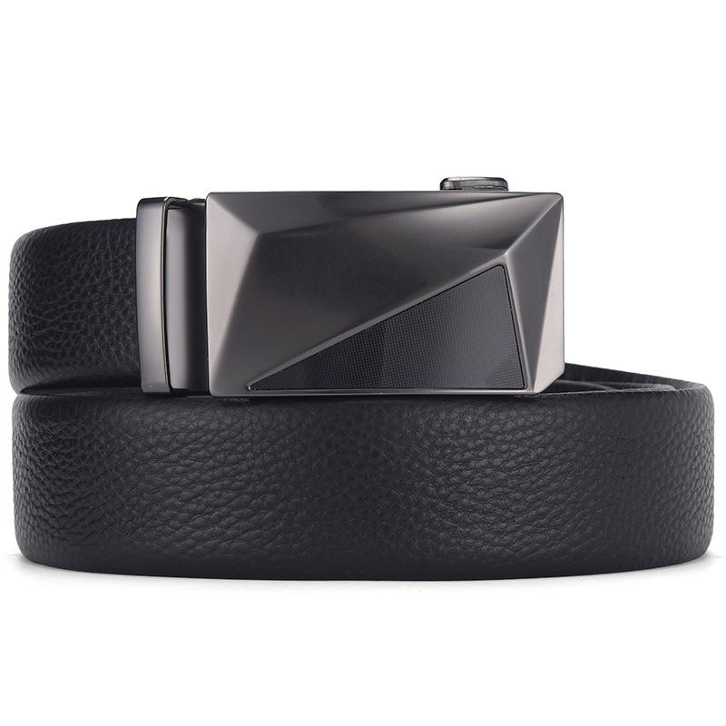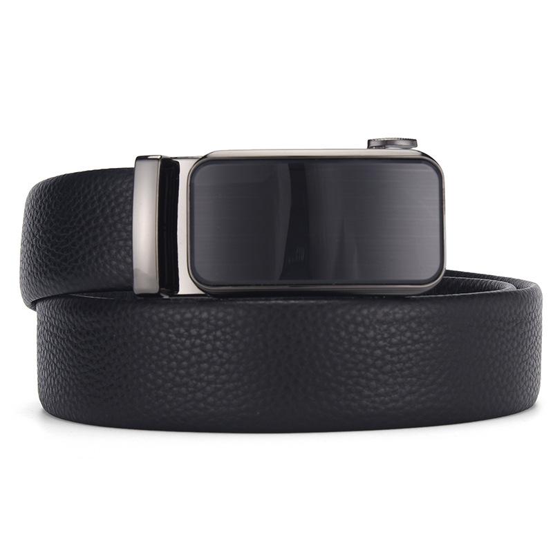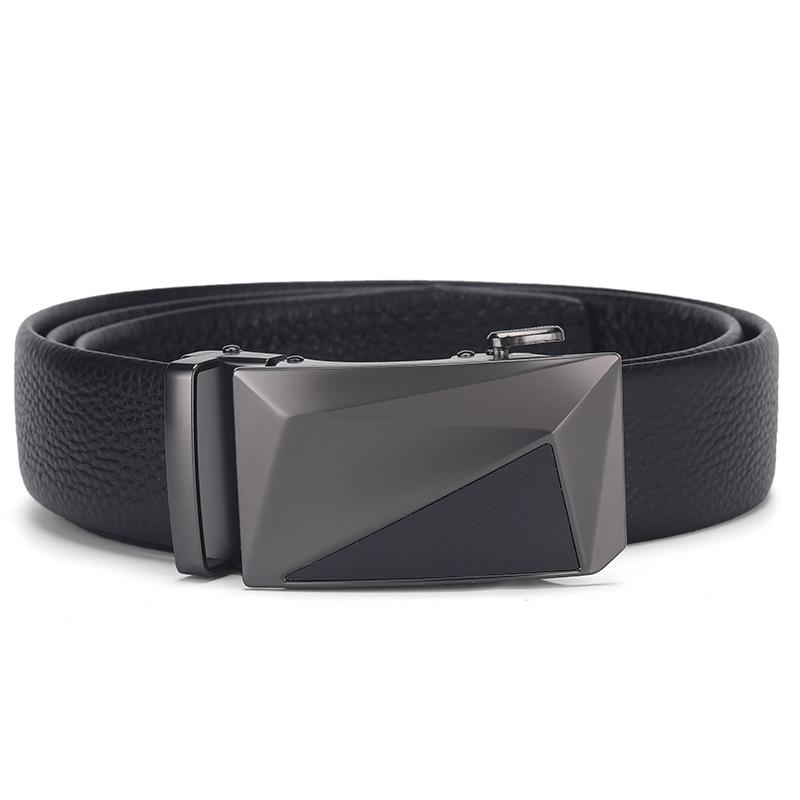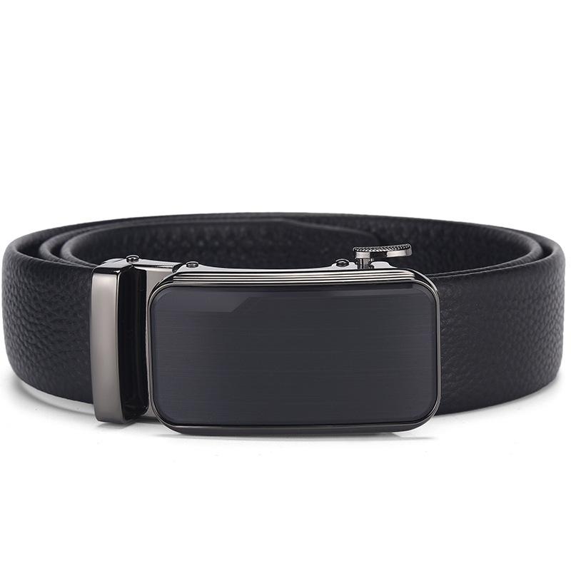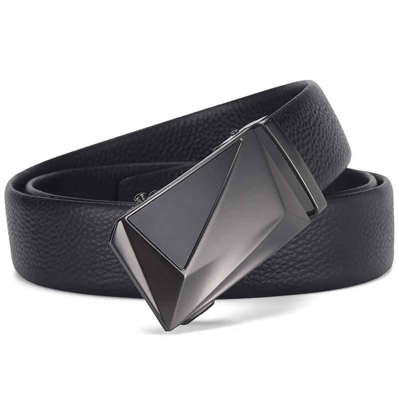 Cinturón de hombre de gran venta transfronteriza, hebilla automática, estampado de lichi, de piel de vaca de dos capas, informal