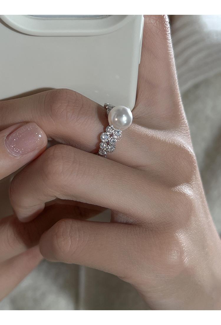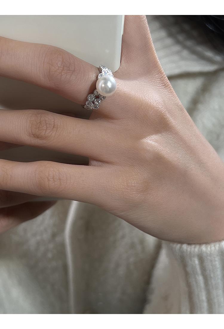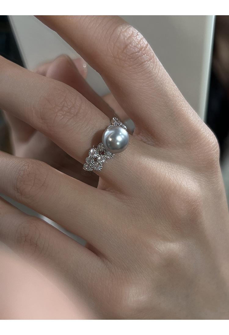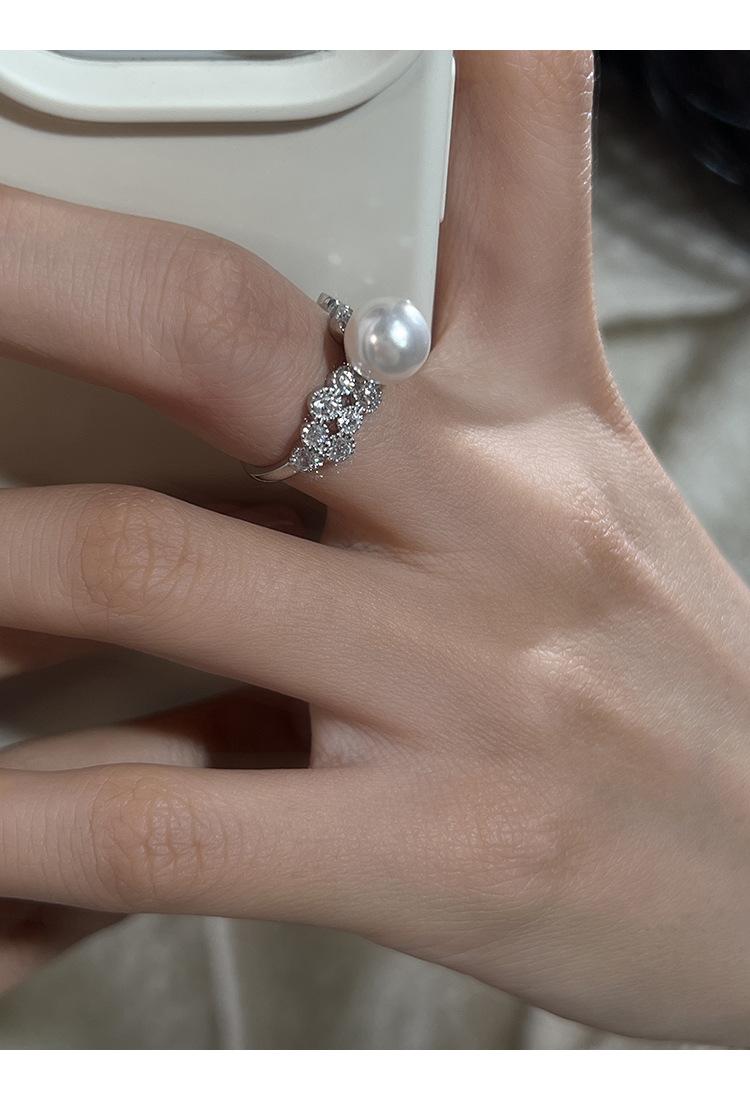 | Anillo de dedo índice retro apilable con nicho abierto, anillo de flor de rosa blanca, diseño de nicho femenino, anillo de alta gama |