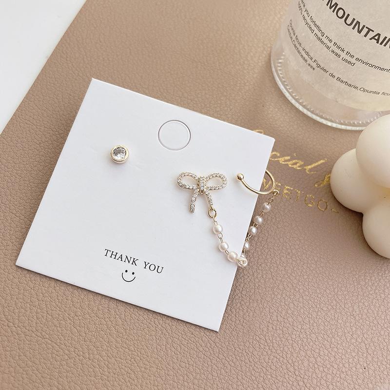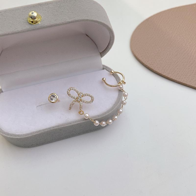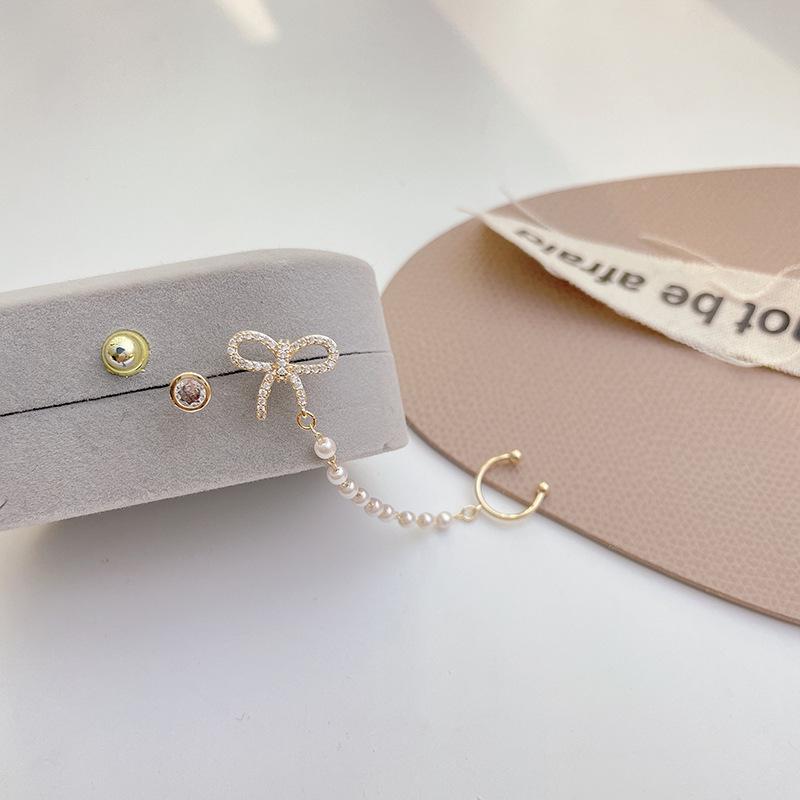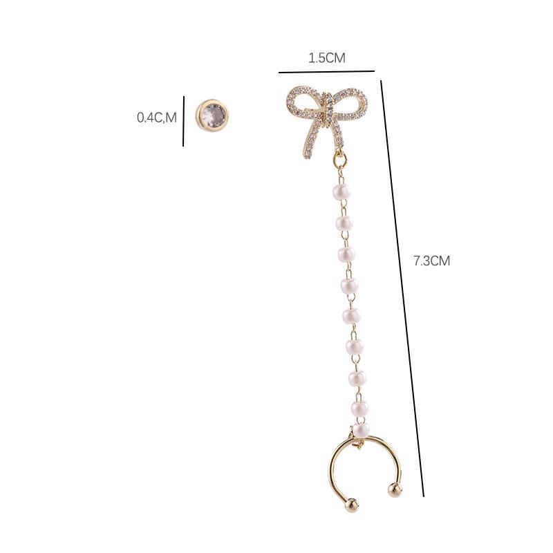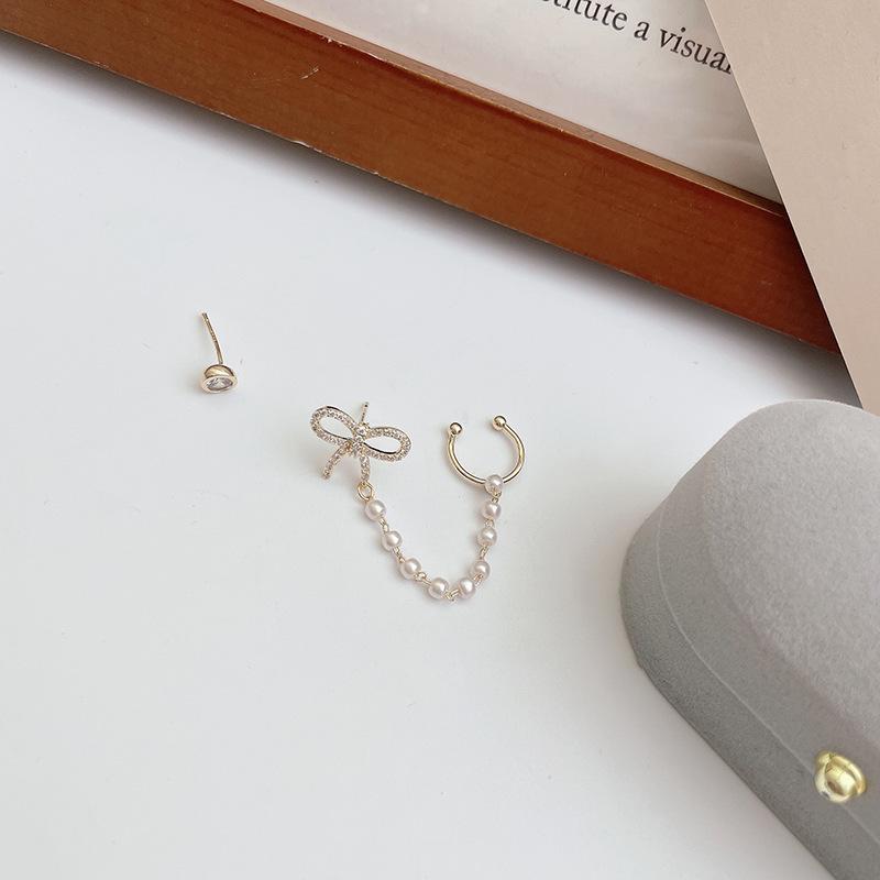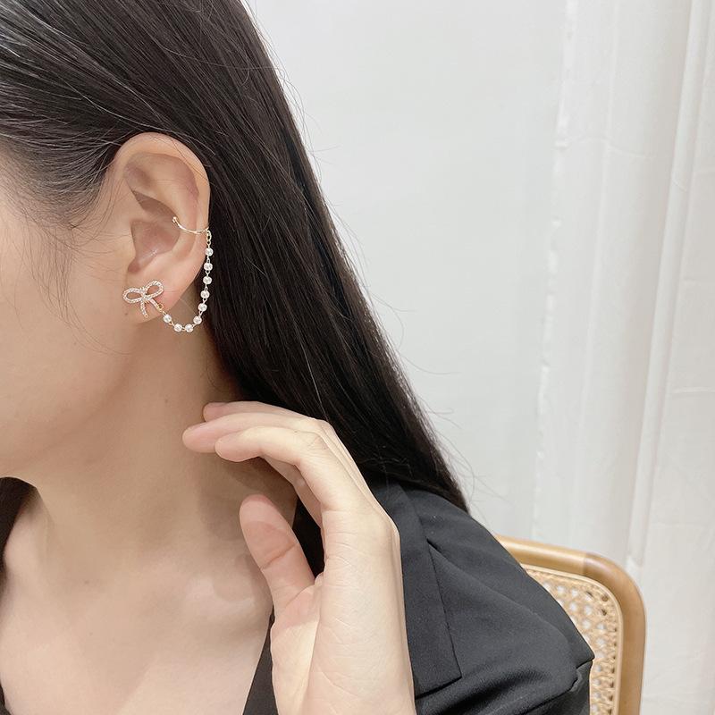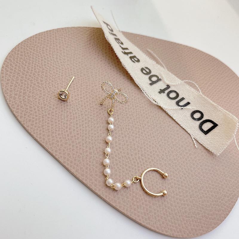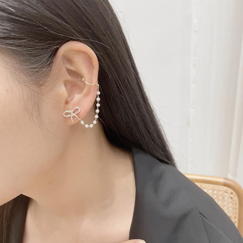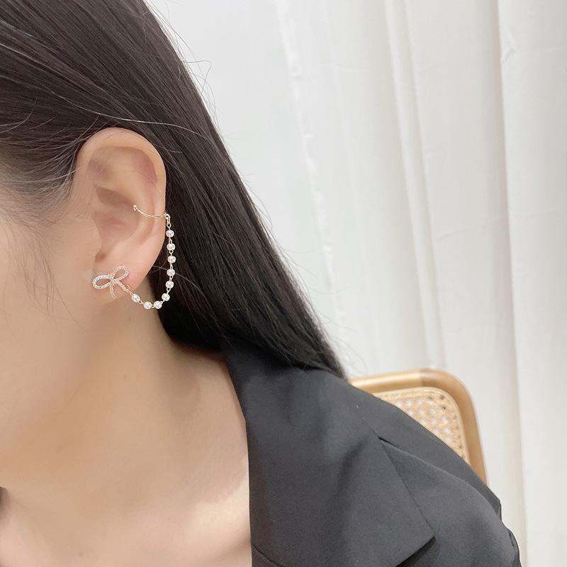 Pendientes de plata s925 con clip para oreja, borlas, perlas y lazo asimétricos, de una sola pieza, sencillos y pequeños, combinables con todo.