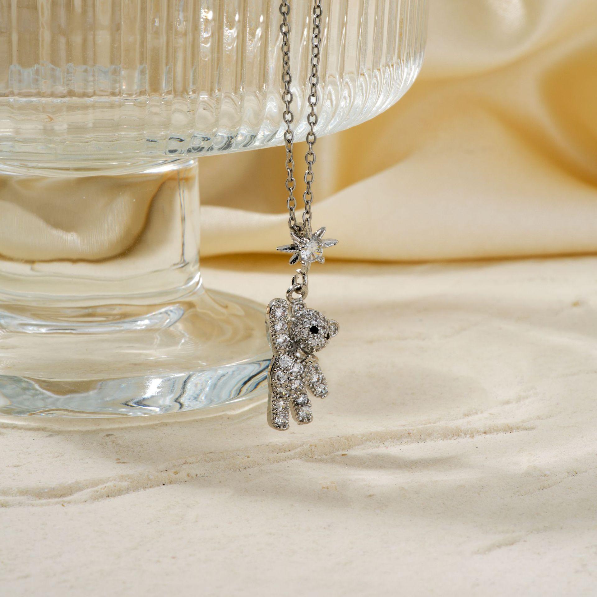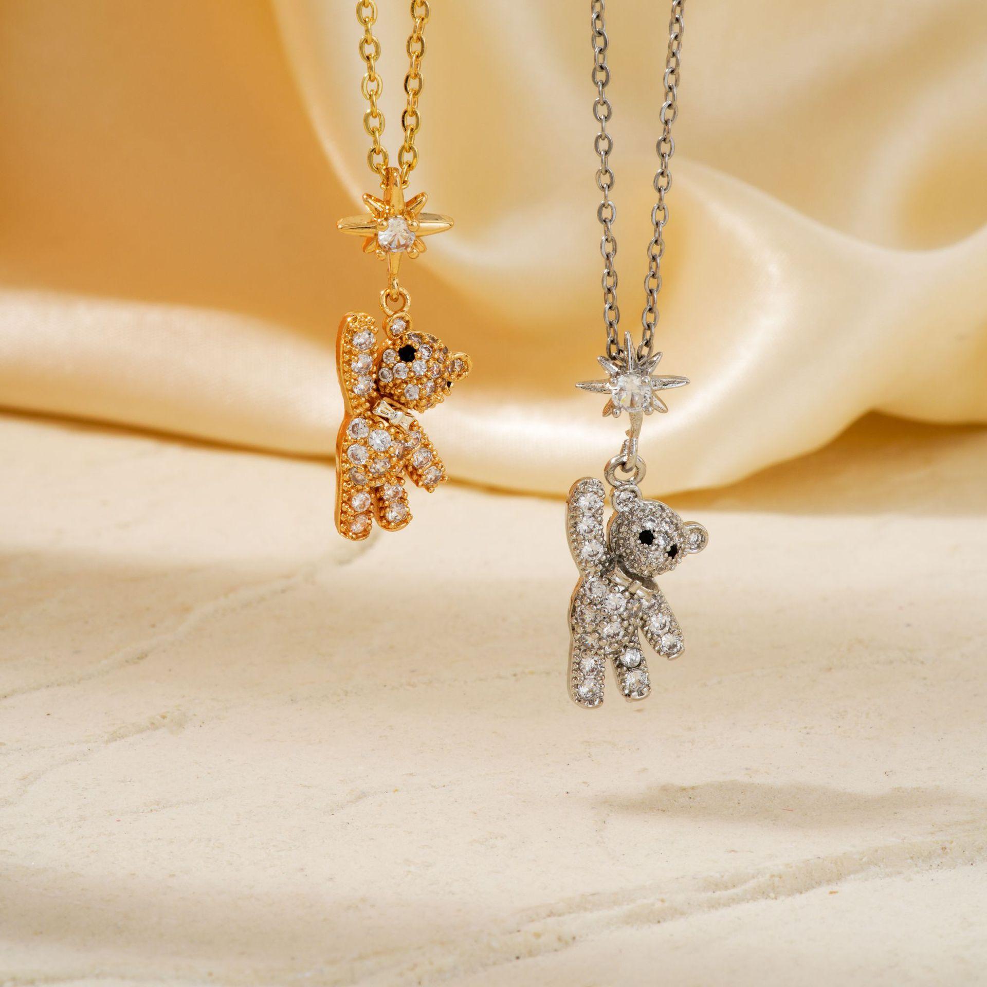 Compra Collar con colgante de oso Sense de Niche Design 2024, nuevo, combinable, estilo japonés y coreano, ligero, de lujo, con circonitas para mujer. al por mayor en Joom.pro