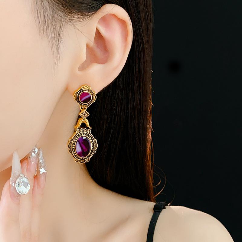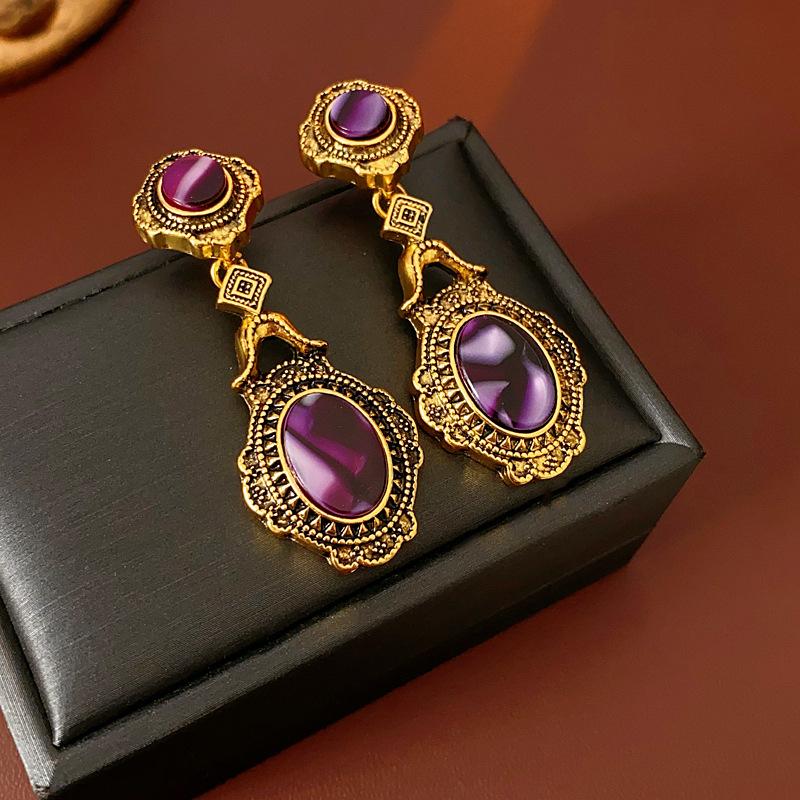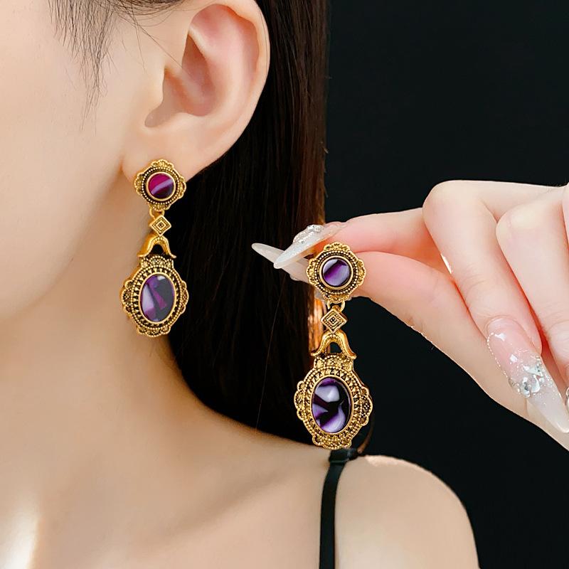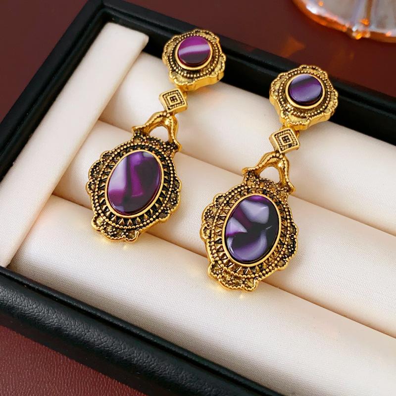 Pendientes medievales vintage con aguja de plata, pendientes ovalados degradados, elegantes, accesibles, de lujo, de alta gama, estilo palacio, venta al por mayor