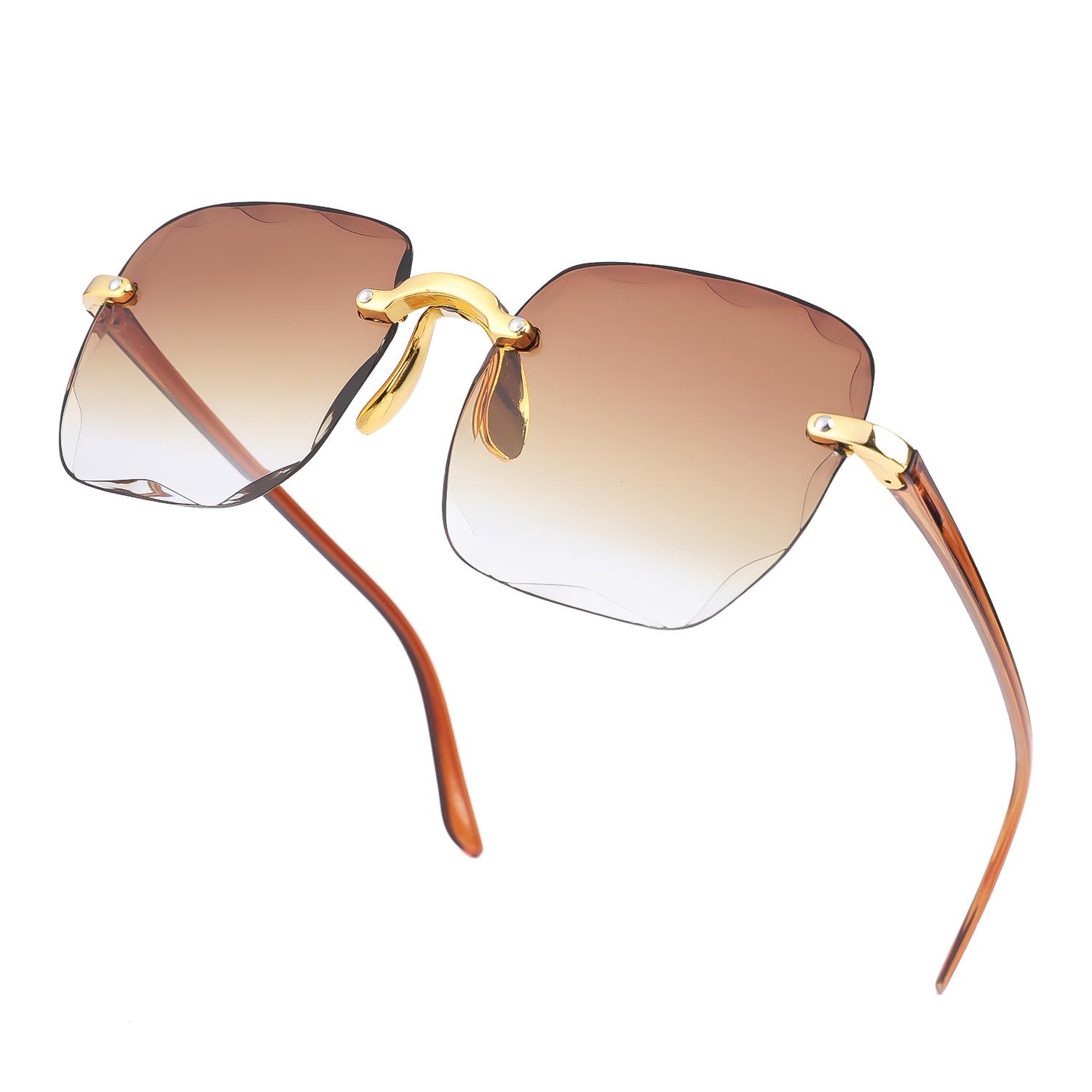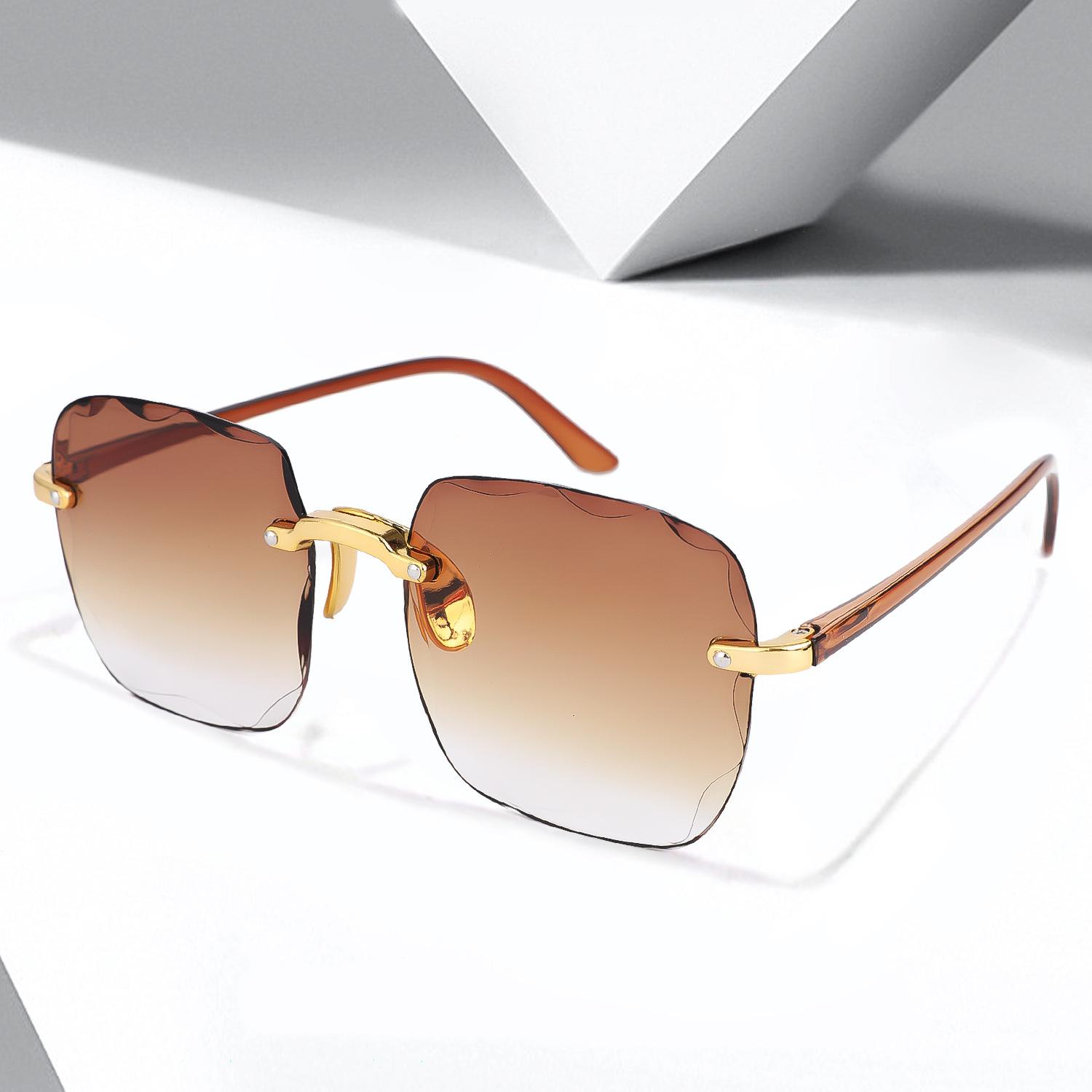 Gafas de sol de verano 2024 nuevas para conducir al aire libre, gafas de sol con montura poligonal sin montura, gafas con degradado A47
