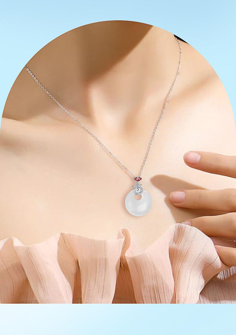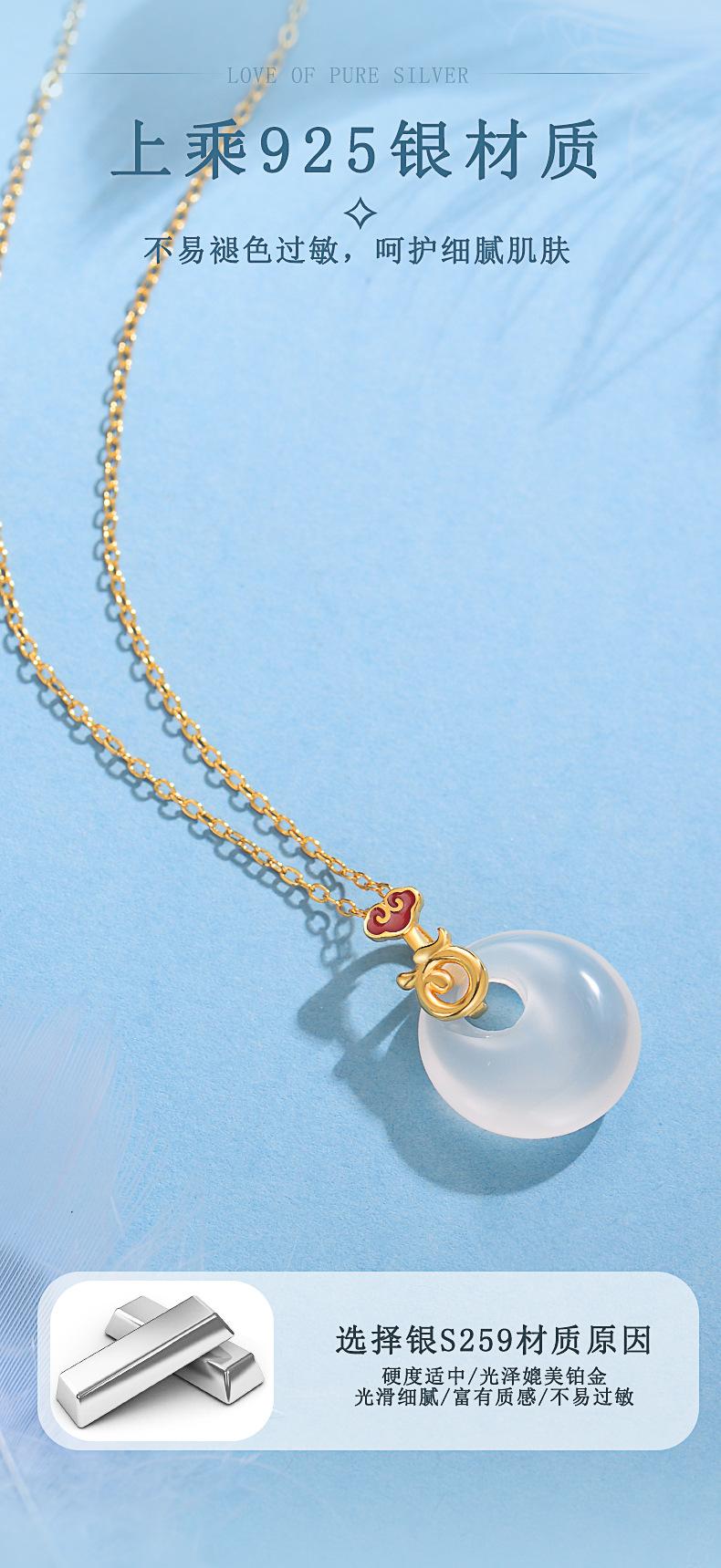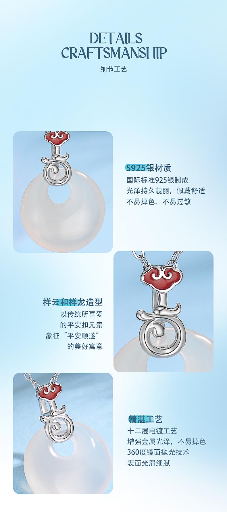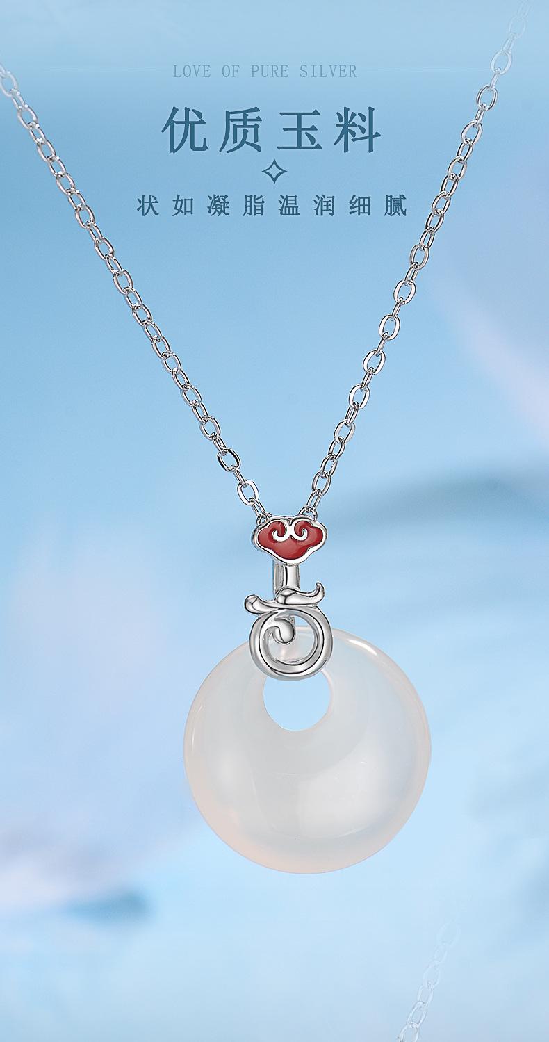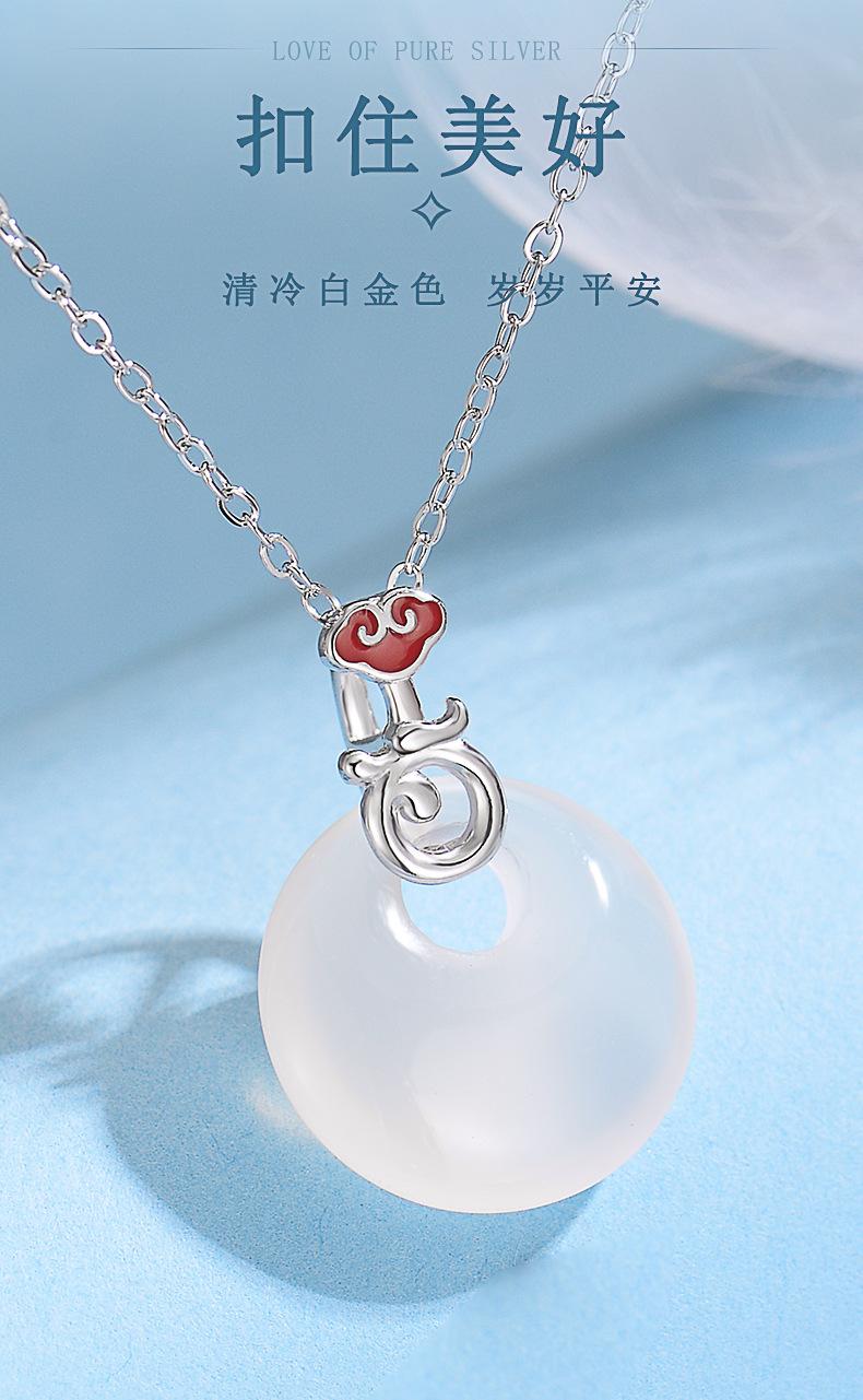 Collar con colgante de calcedonia para mujer, estilo retro chino Xianglong, con hebilla de ping-an, de plata de ley S925, con diseño de nicho de lujo y cadena de clavícula.