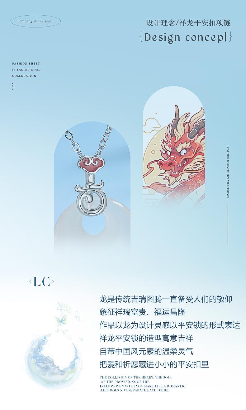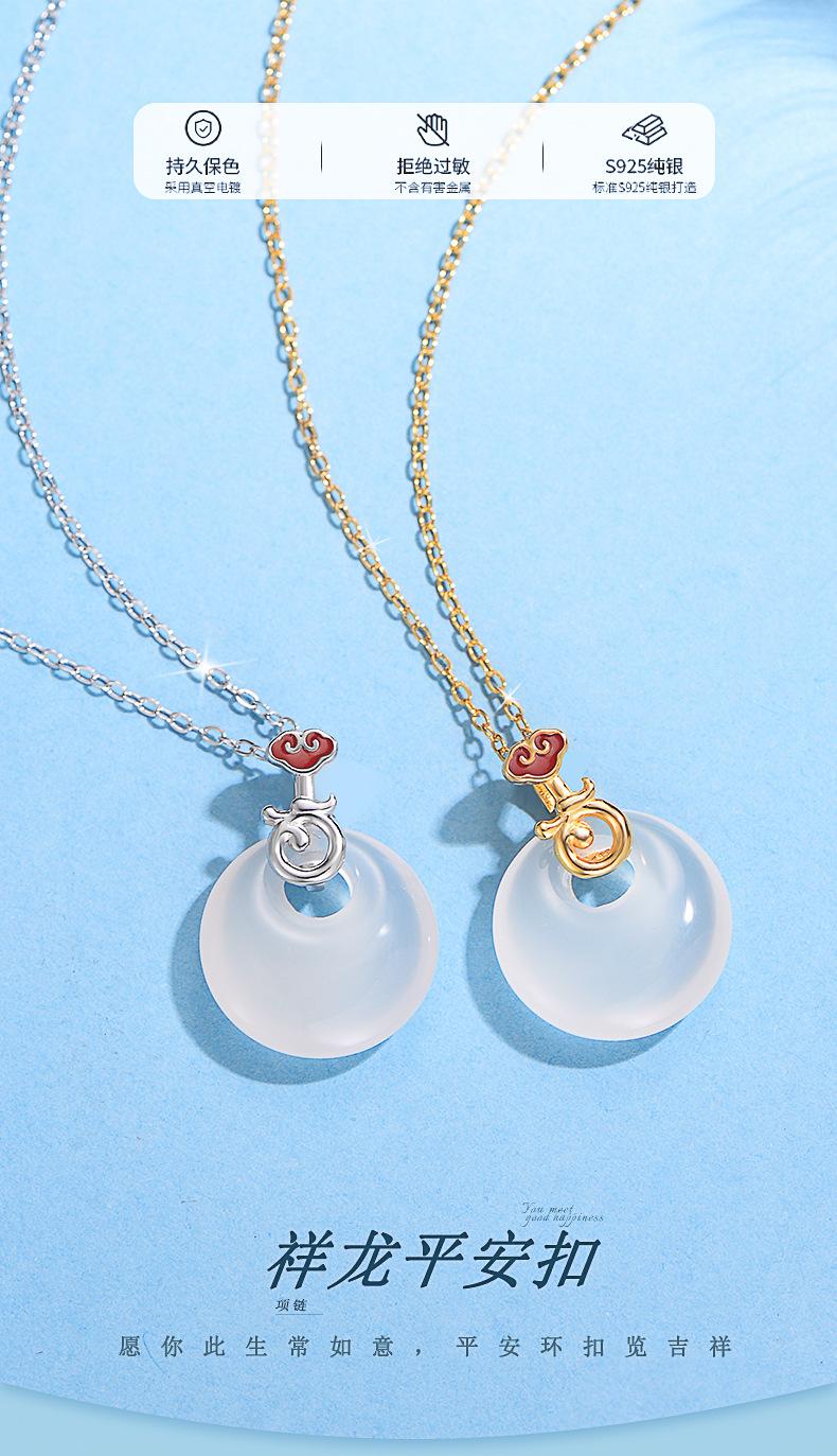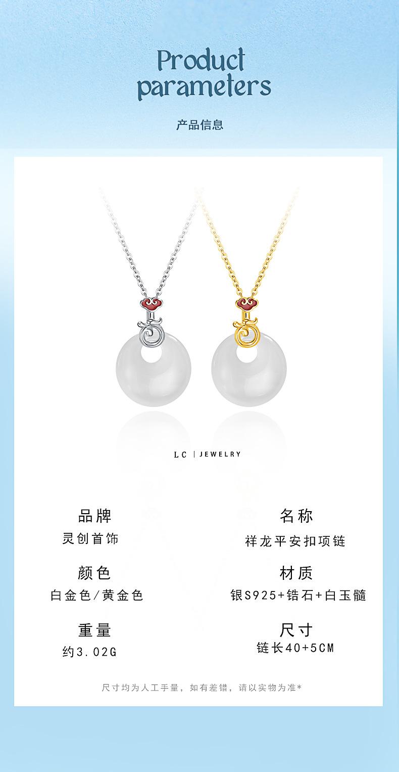 XL0570 Xianglong peace buckle necklace (platinum), XL0570 dragon peace buckle necklace (gold)