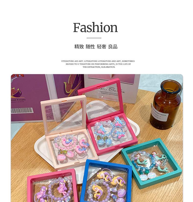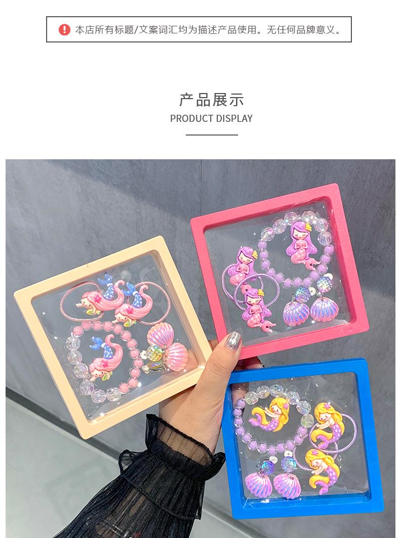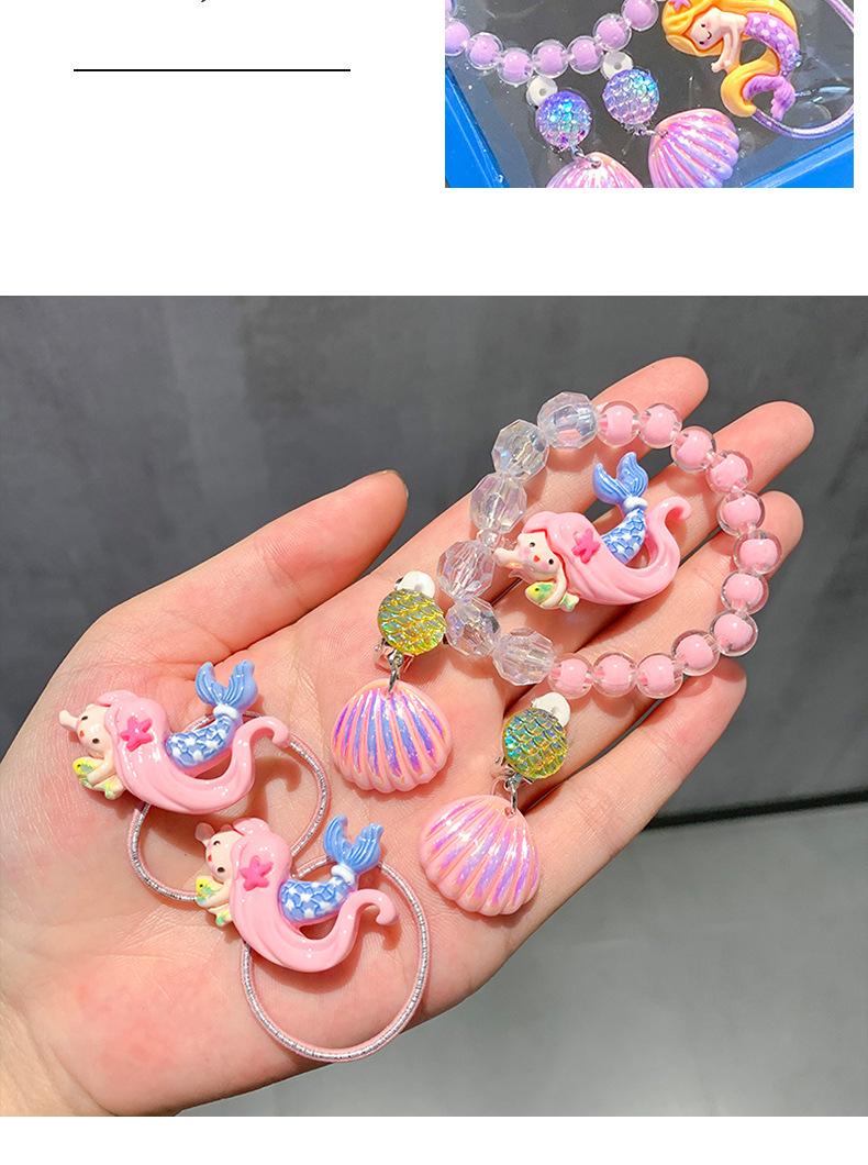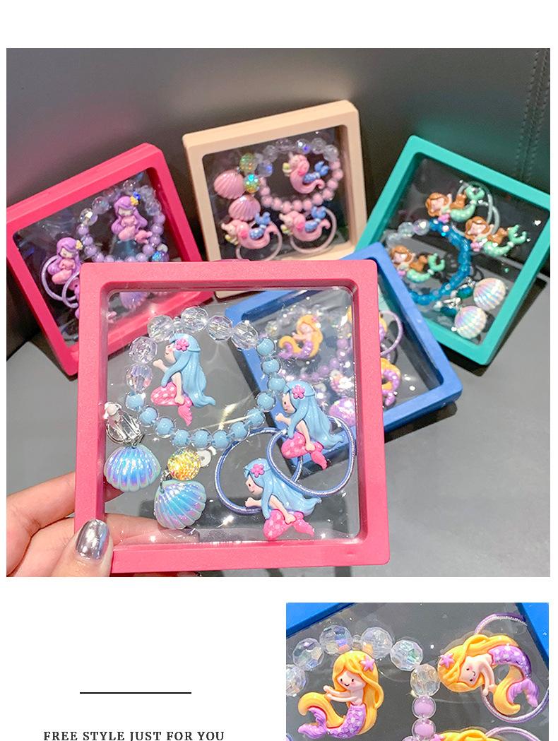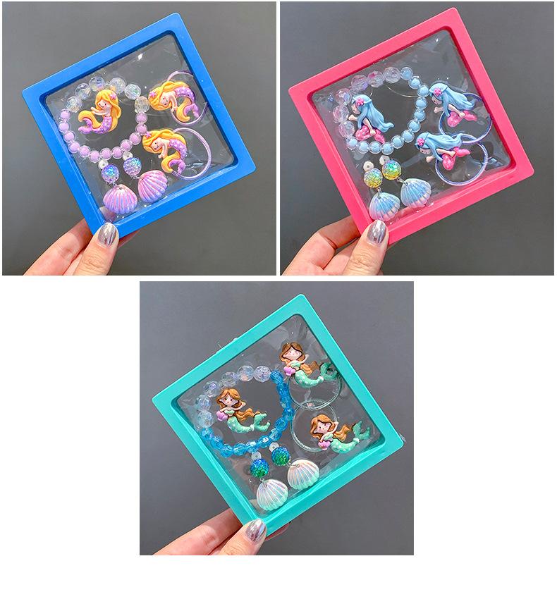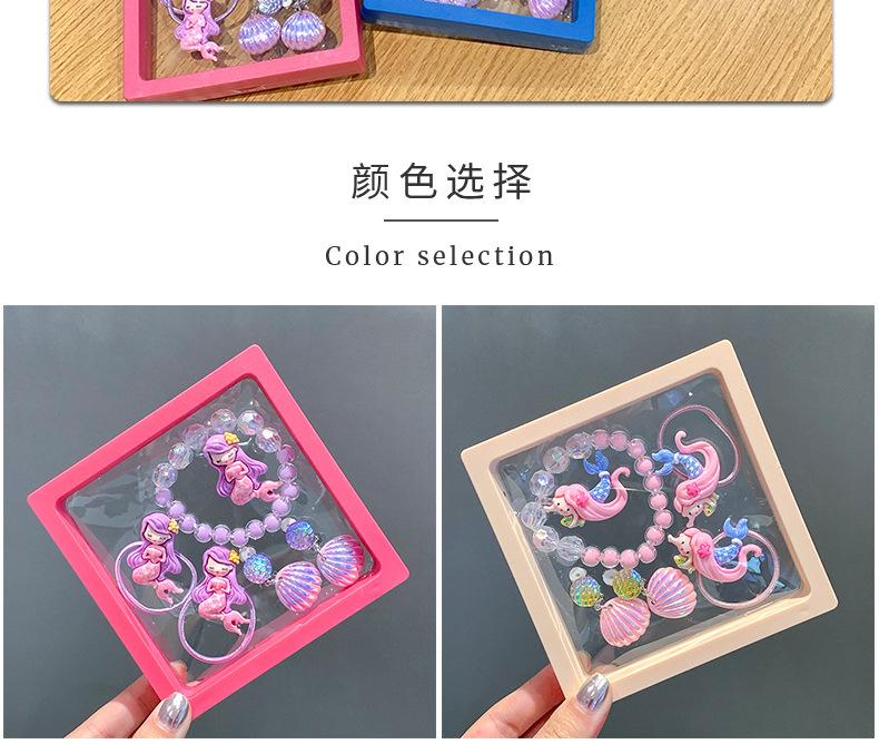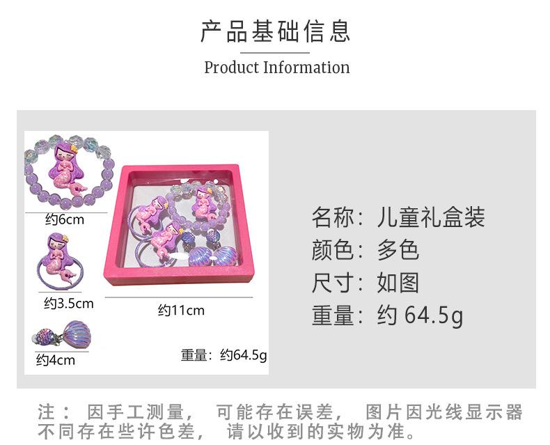 Pulsera de cuentas de princesa sirena de dibujos animados para niños, traje con clip para las orejas de bebé, banda de goma, caja de regalo, joyería para niñas