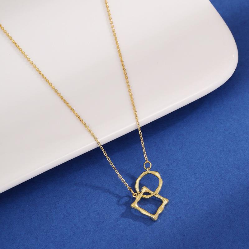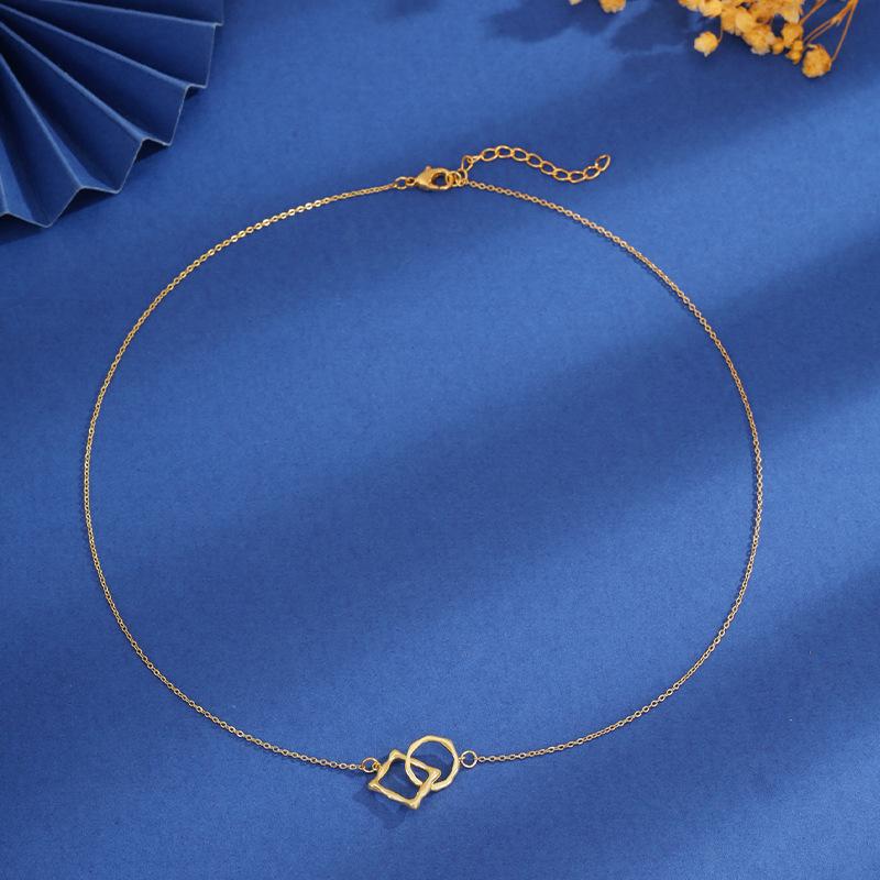 Collar de cadena con diseño simple, nuevo y moderno, con eslabones de anillo cuadrado hueco, para mujer, combina con todo y a la moda para uso diario.