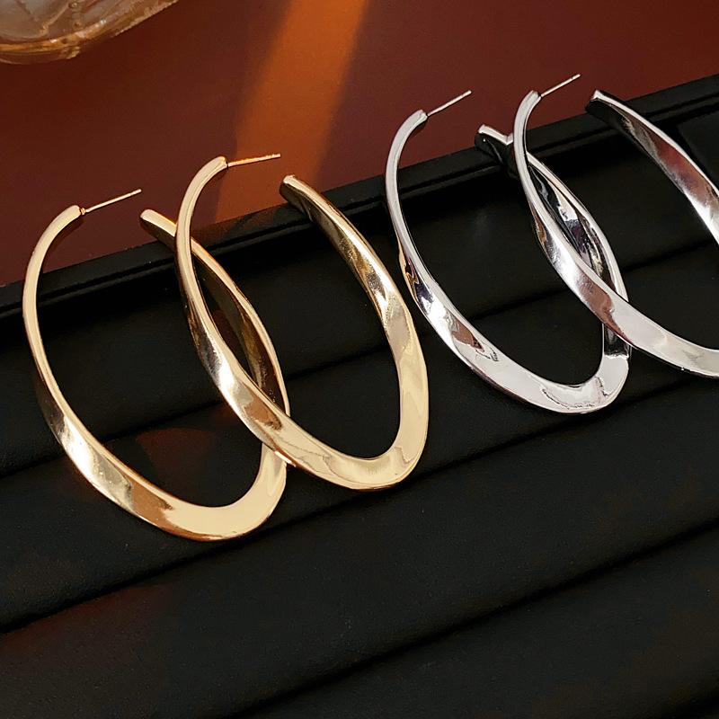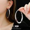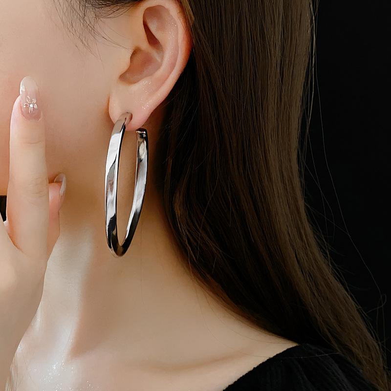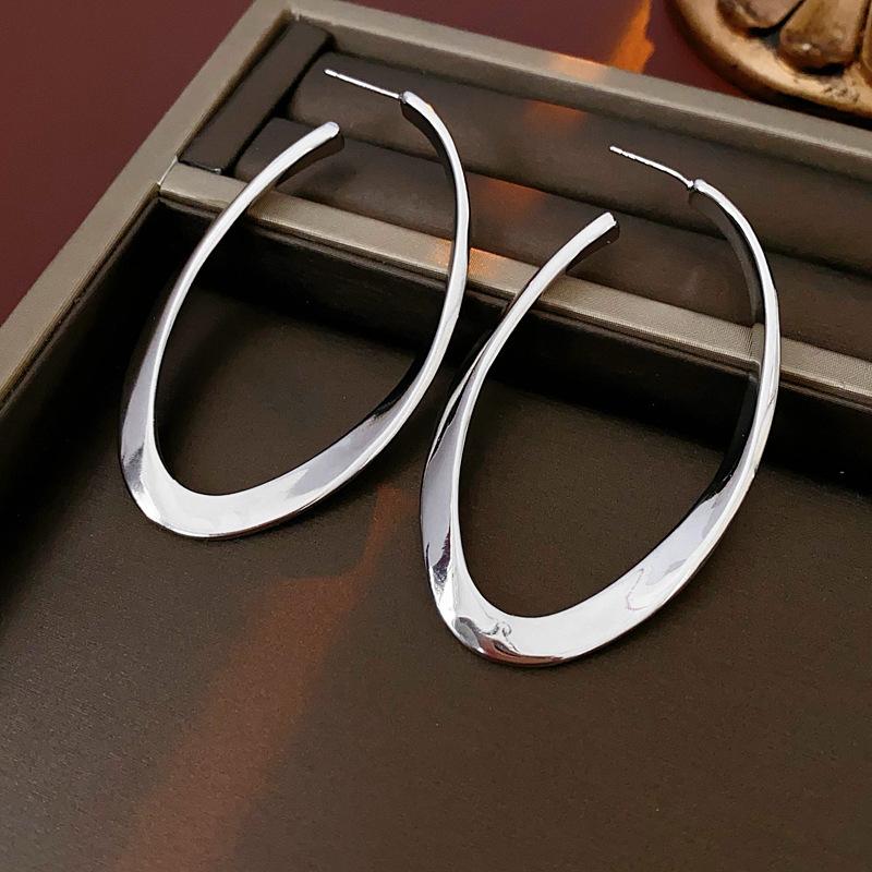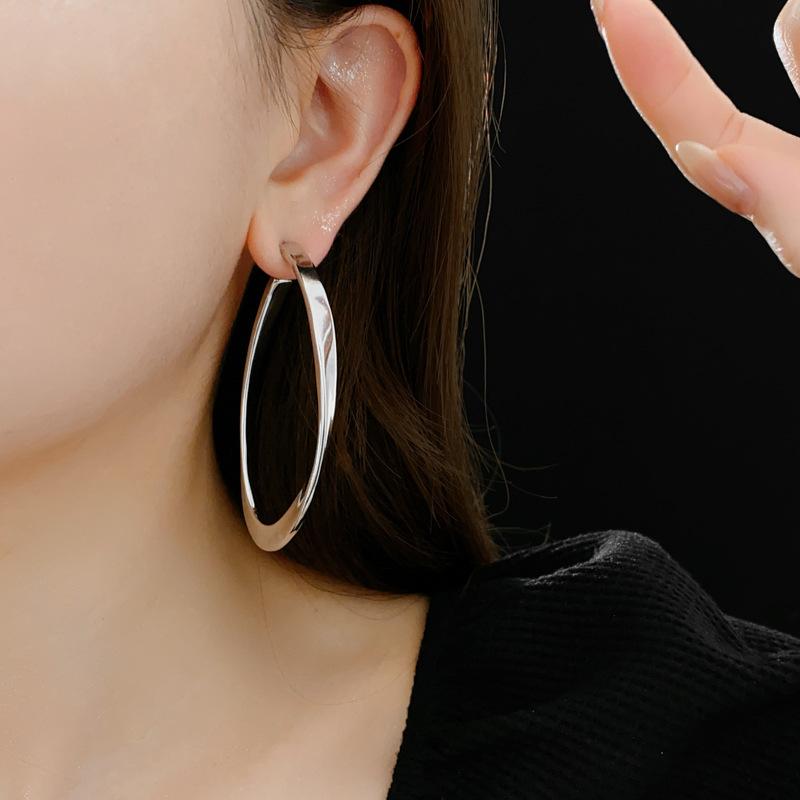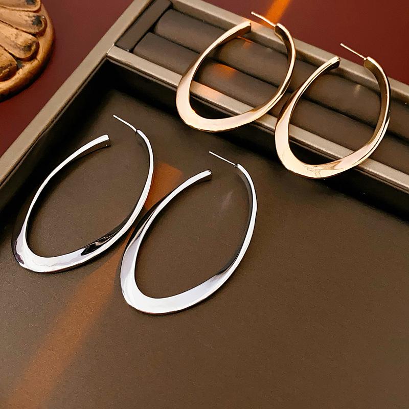 Brincos de metal oval com agulha de prata, brincos de design exagerado e estiloso, moda simples e fria, atacado