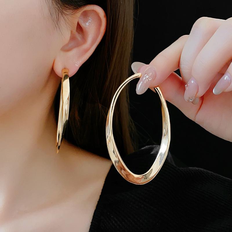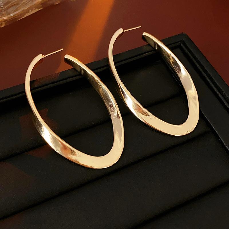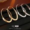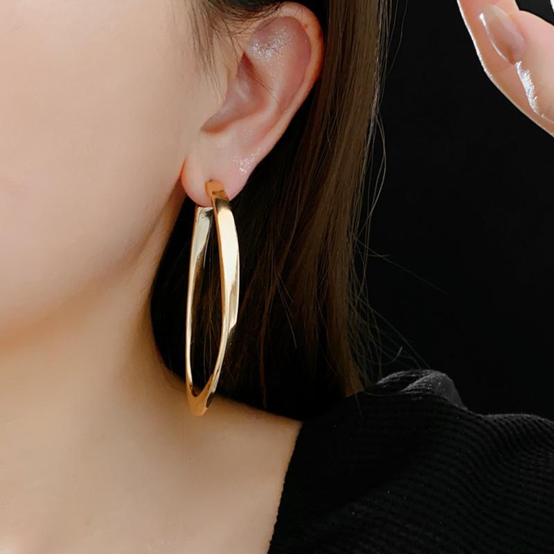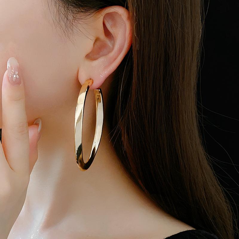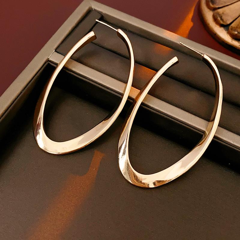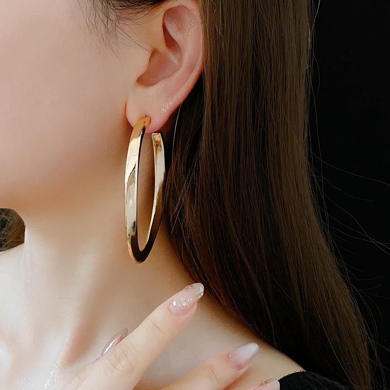 Brincos de metal oval com agulha de prata, brincos de design exagerado e estiloso, moda simples e fria, atacado