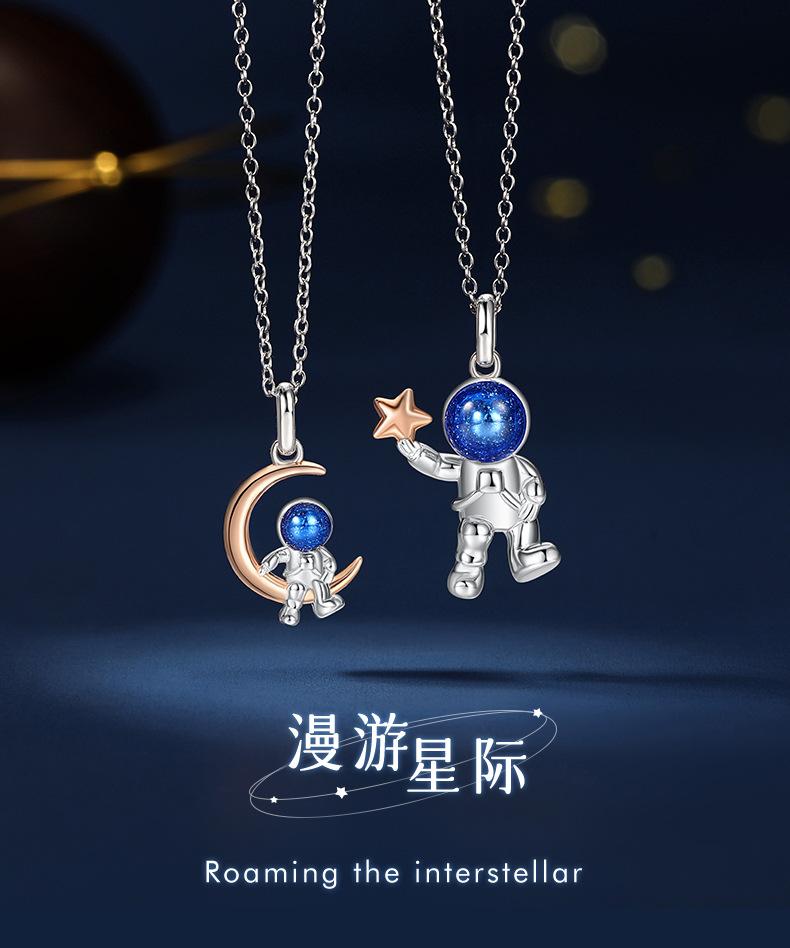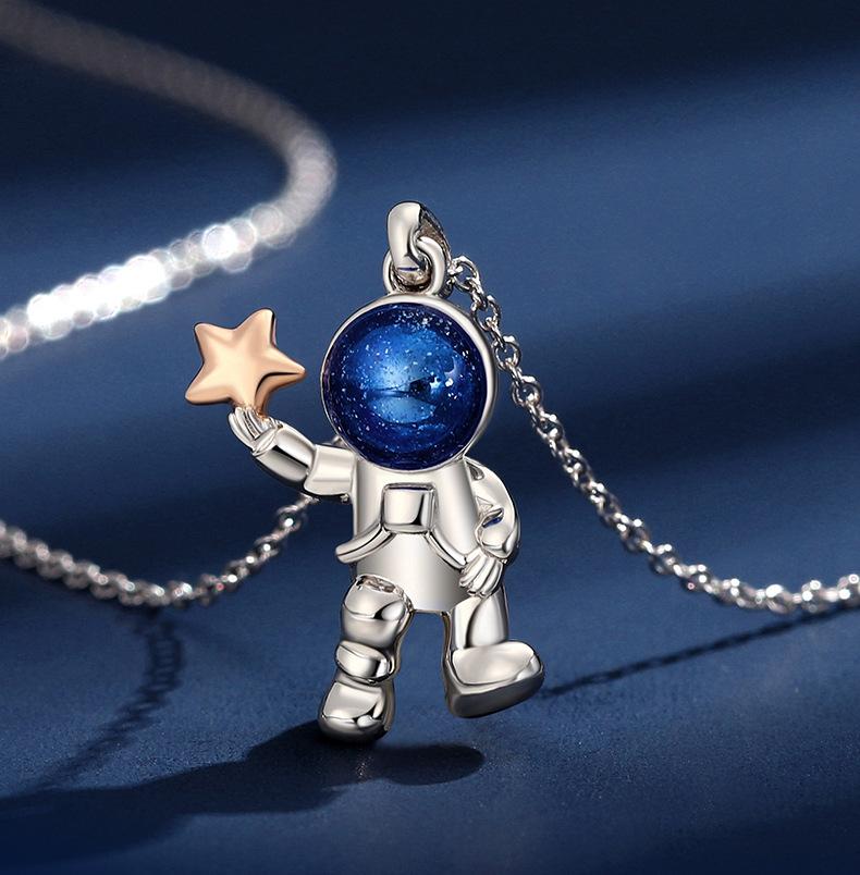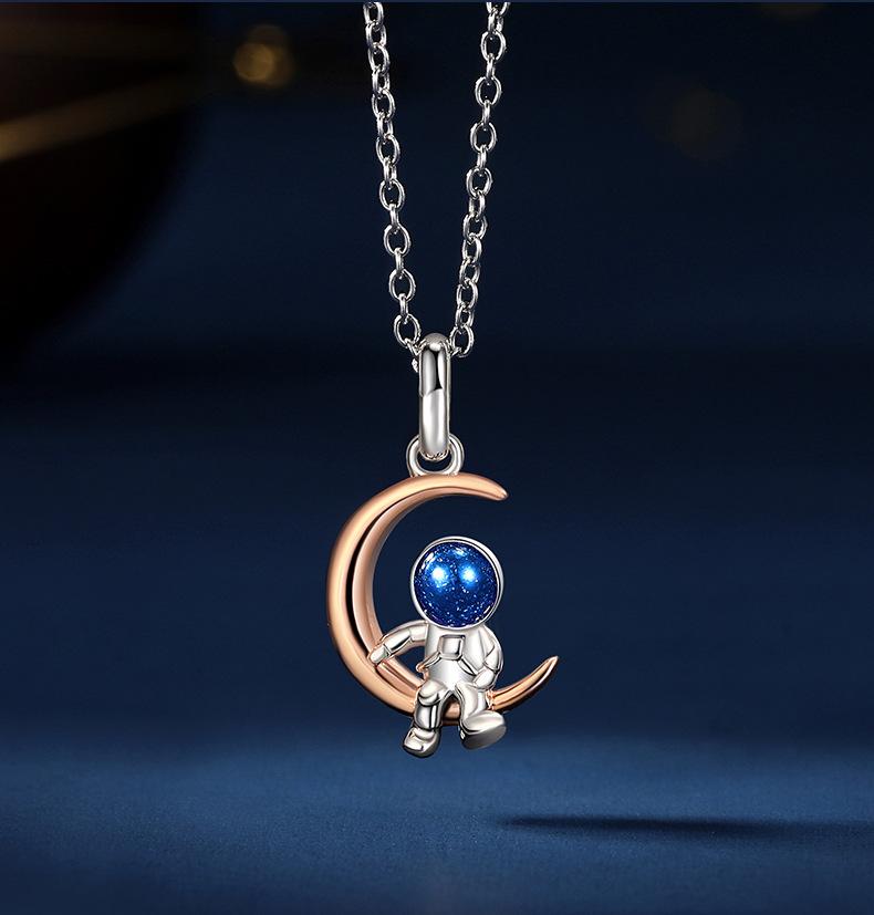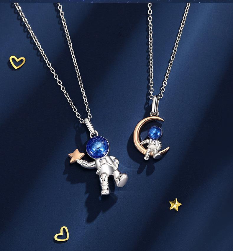 Collar de astronauta espacial para pareja, colgante de plata esterlina para hombre y mujer, nicho original, regalo de cumpleaños para novia