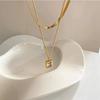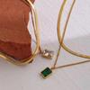 Compra Collar con colgante de circonita cuadrada, estilo europeo y americano, de doble capa, con costuras en forma de O y acero de titanio chapado en oro de 18 quilates. al por mayor en Joom.pro