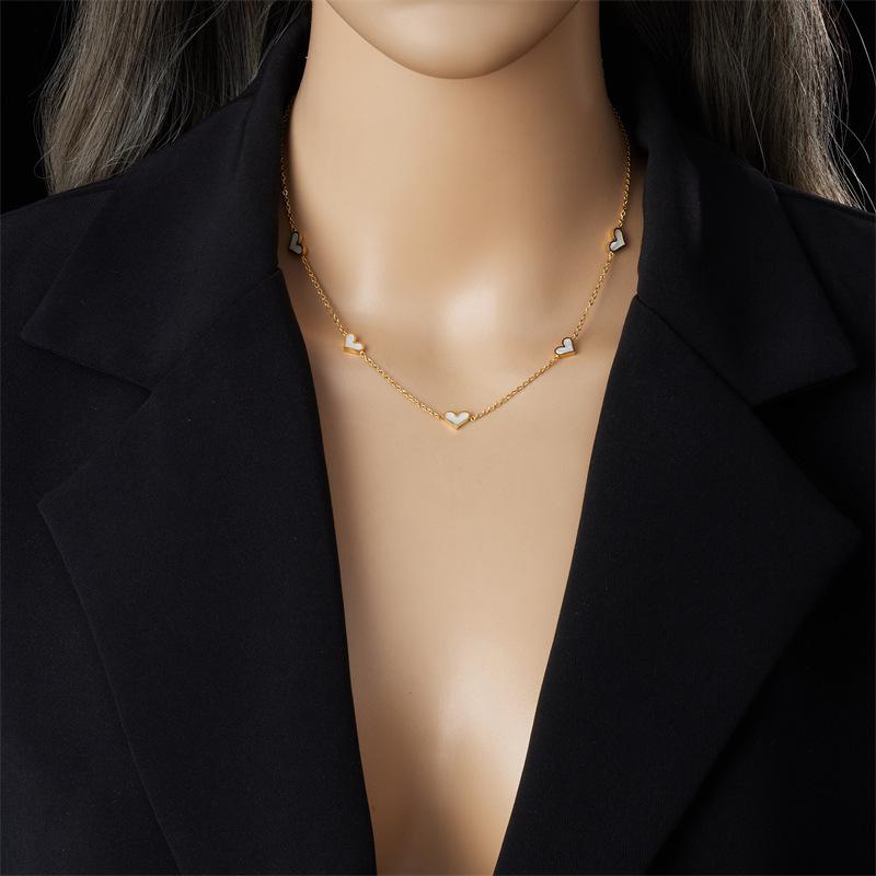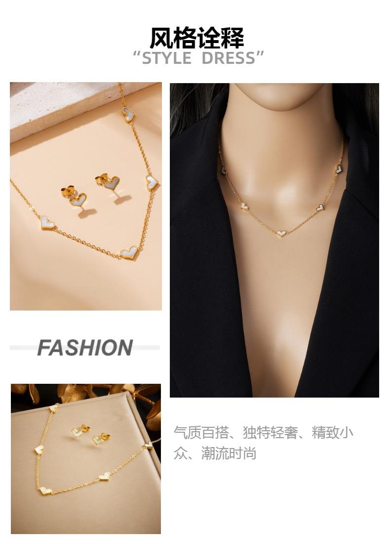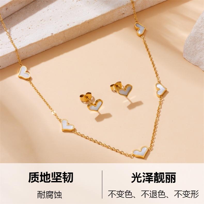 Moda Europea y Americana Diseño Simple Blanco Amor Accesorios Joyería Collar Aretes Acero Inoxidable Juego de Dos Piezas