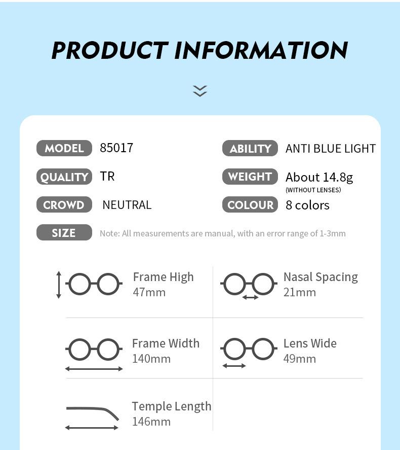 Gafas ultraligeras TR90 m uña moda coreana profesionales para miopía se pueden equipar con el mismo grado de montura anti-luz azul para hombres y mujeres
