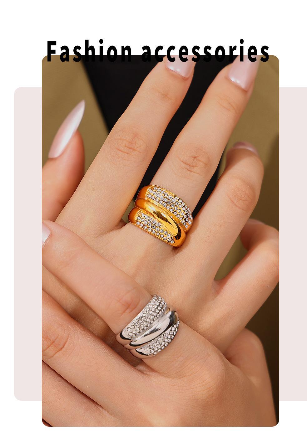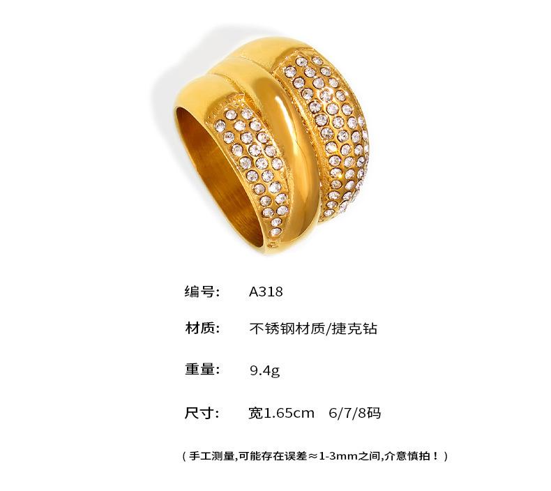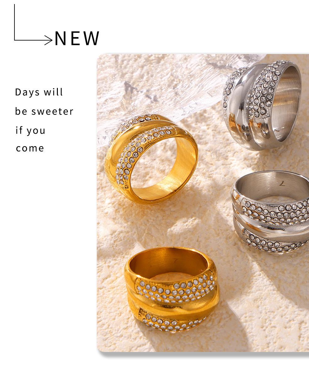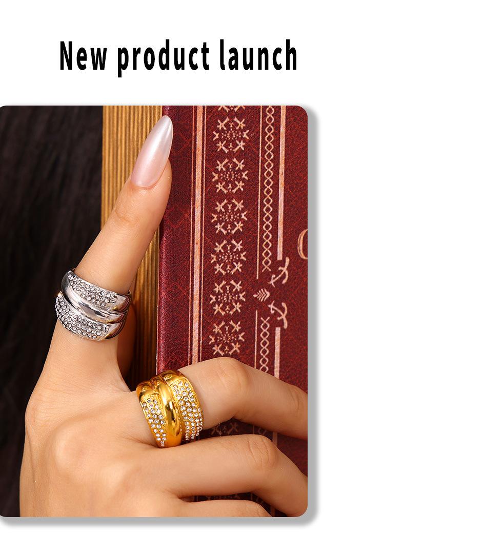 Anillo de diamantes multicapa transfronterizos de Europa y Estados Unidos con diseño de moda hip-hop, nuevo anillo de acero inoxidable chapado en oro de 18 quilates.