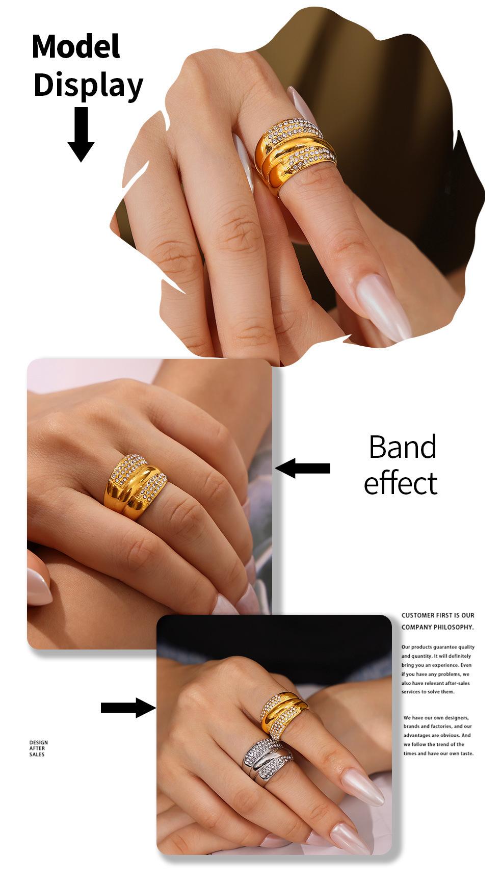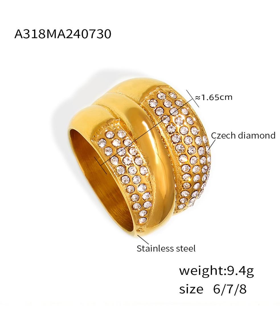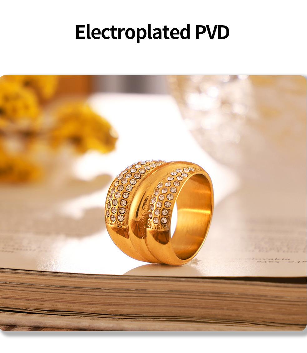 Anillo de diamantes multicapa transfronterizos de Europa y Estados Unidos con diseño de moda hip-hop, nuevo anillo de acero inoxidable chapado en oro de 18 quilates.