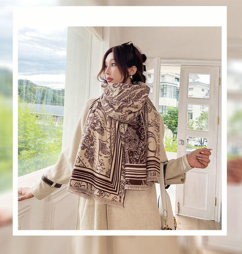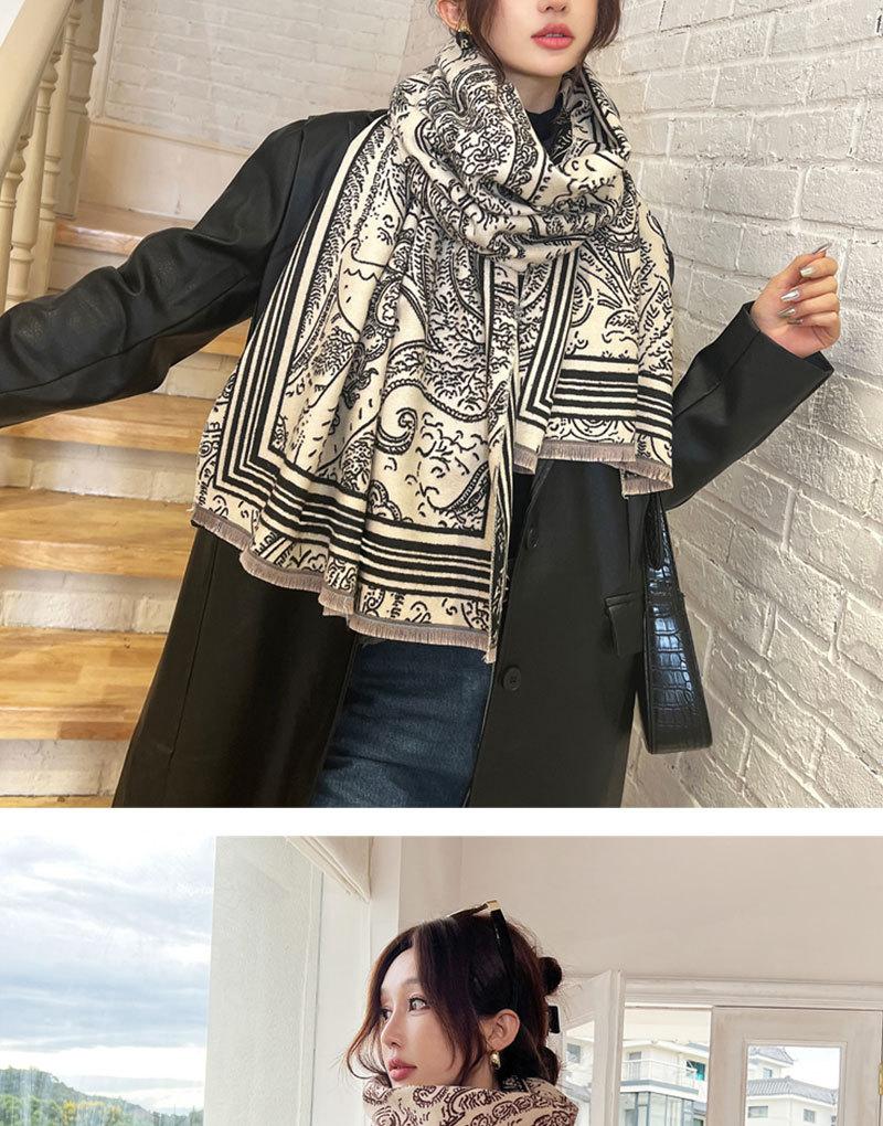 Bufanda de cachemira jacquard de nueva moda 2024 para mujer, estilo coreano, otoño e invierno, combina con todo, chal grueso y cálido.