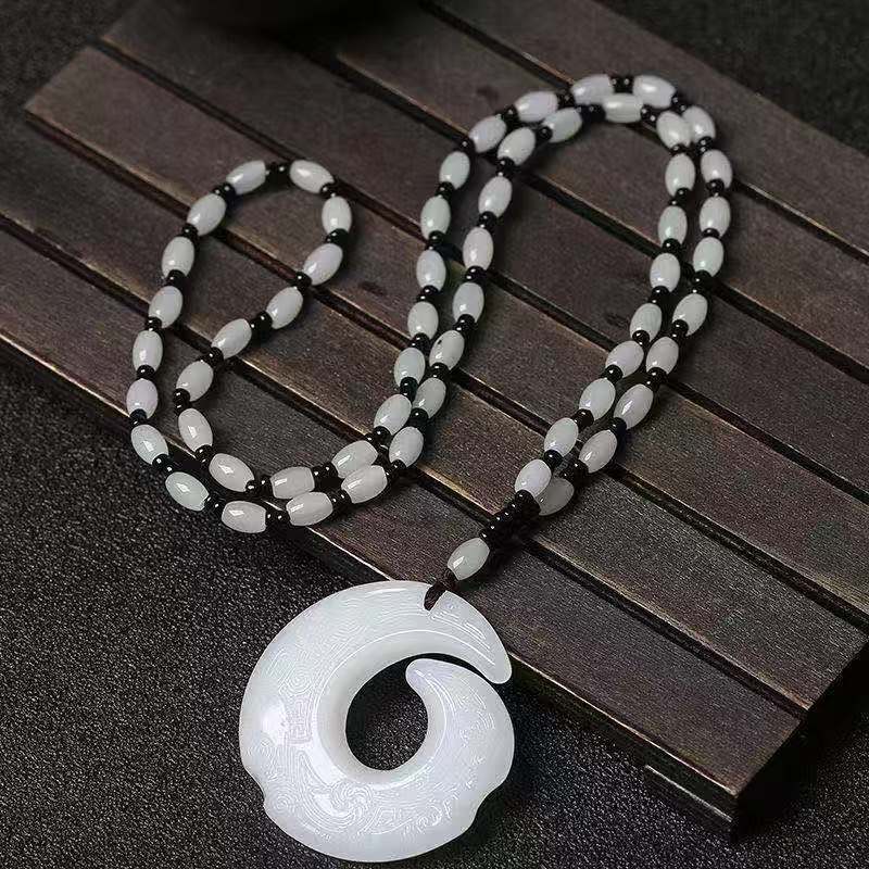 Compra Hebilla de seguridad calada colgante de jade cadena para suéter colgante de jade blanco de alta calidad collar largo para hombre y mujer accesorios Joker al por mayor al por mayor en Joom.pro