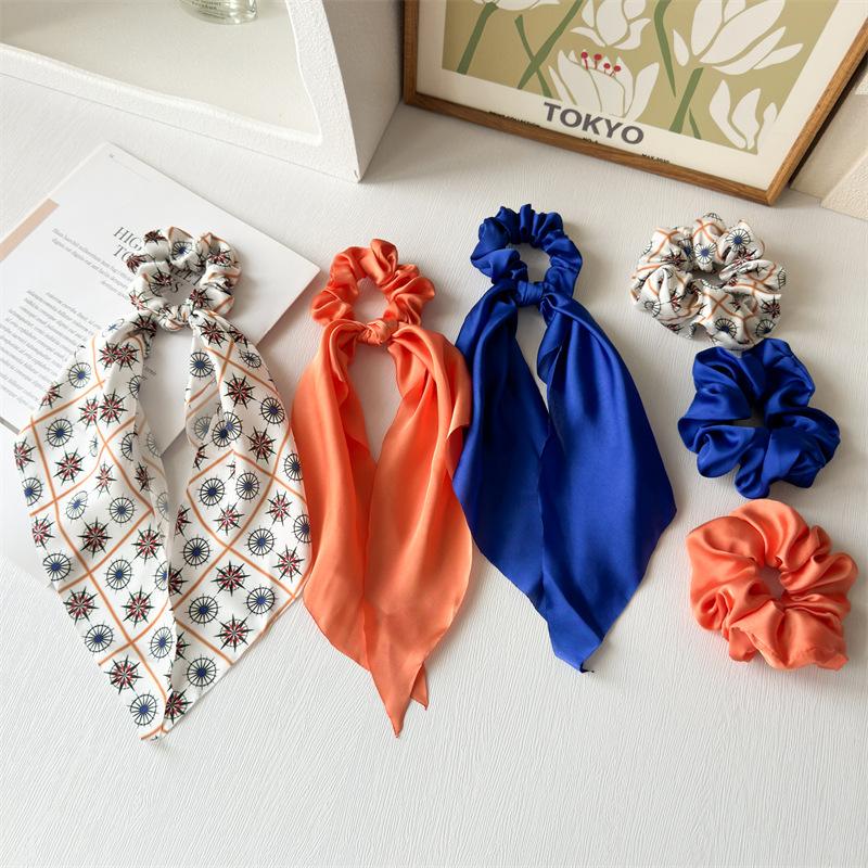 Satin green and orange ribbon, Satin blue and orange ribbon, Satin red and orange ribbon, Satin white orange r...