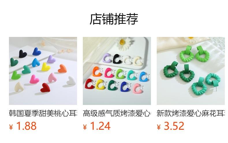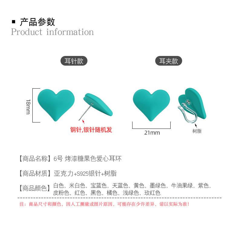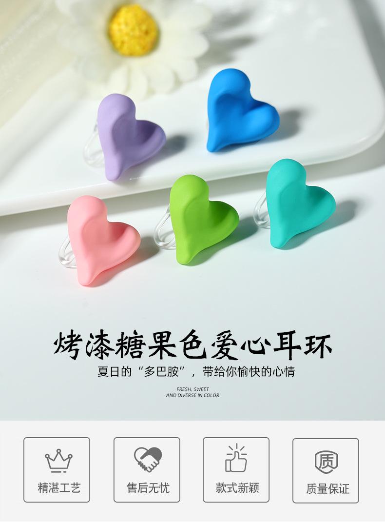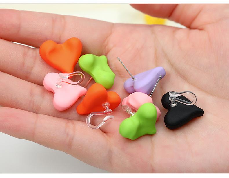 No. 6 painted candy color love earrings/resin ear clips