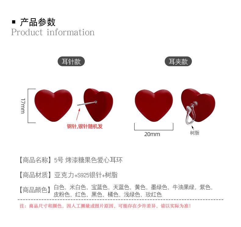 No. 5 painted candy color love earrings/resin ear clips