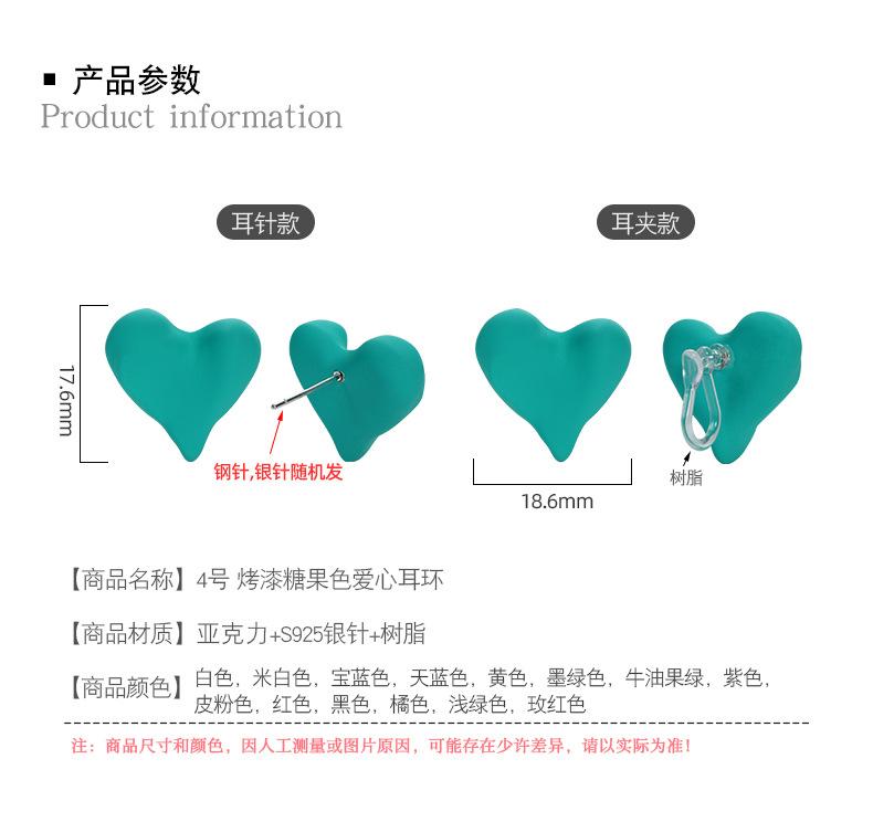 No. 4 painted candy color love earrings/resin ear clips