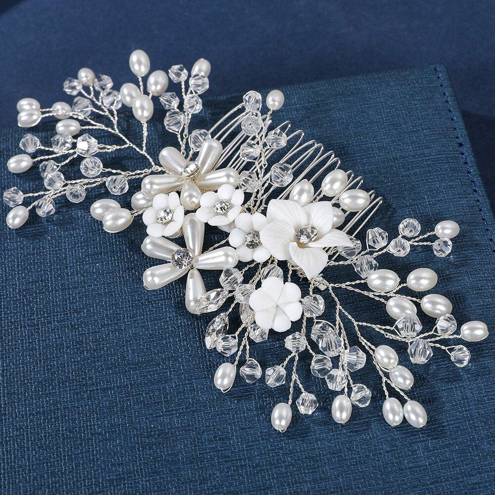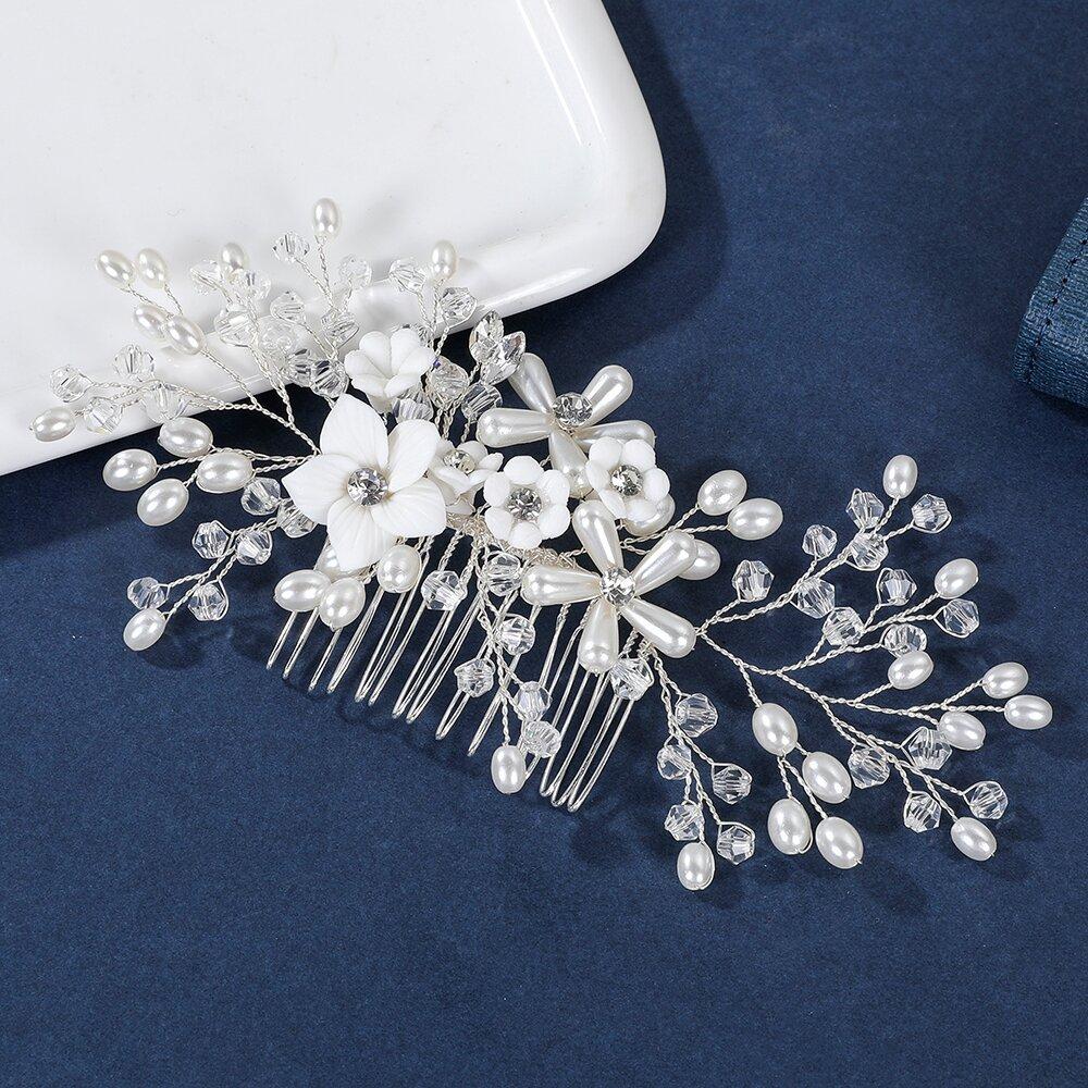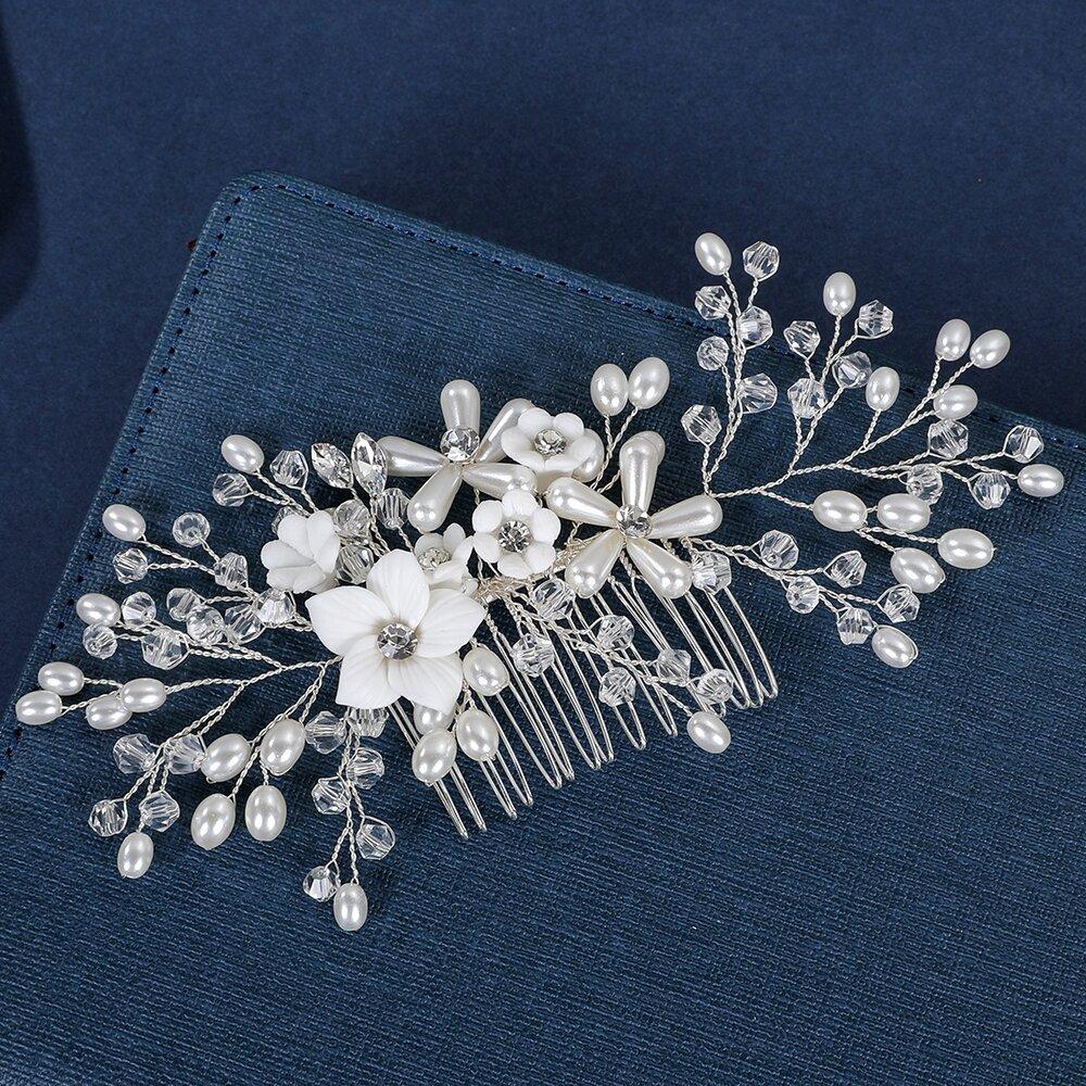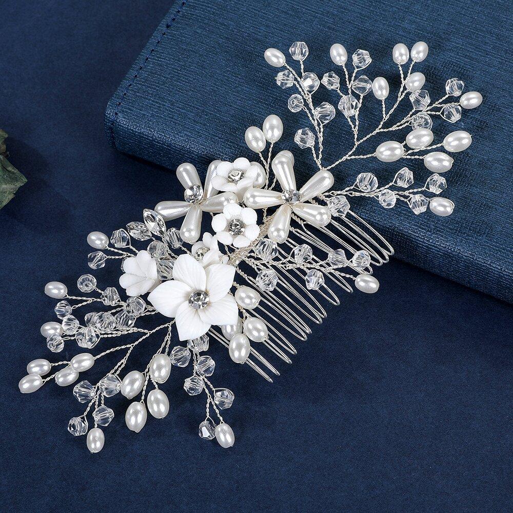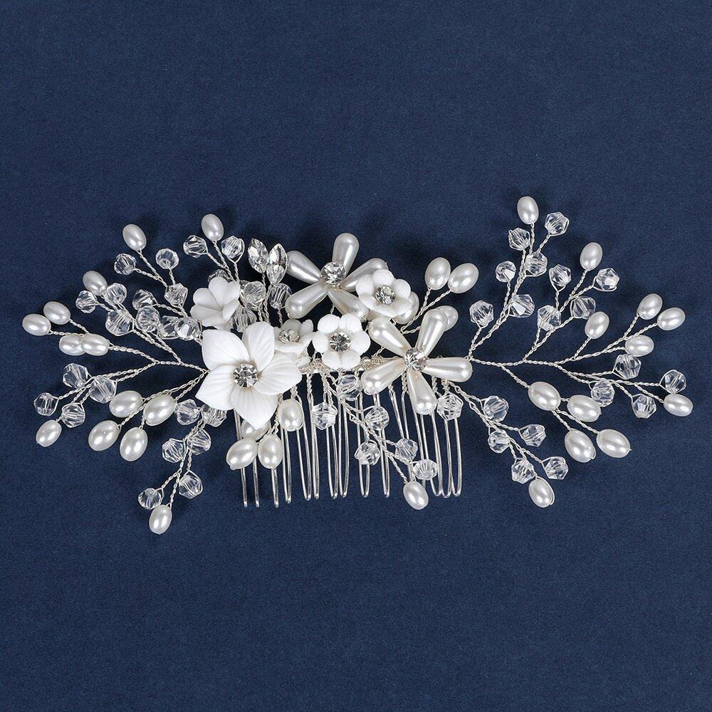 Joyería nupcial Carlo tocado de flor blanca accesorios para vestido de novia peine para el cabello de perlas dulces europeas y americanas accesorios para el cabello al por mayor