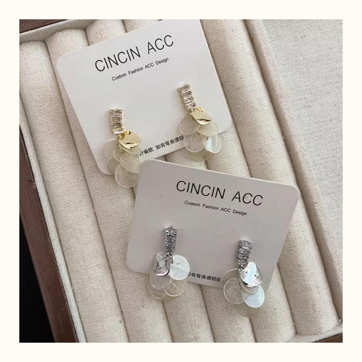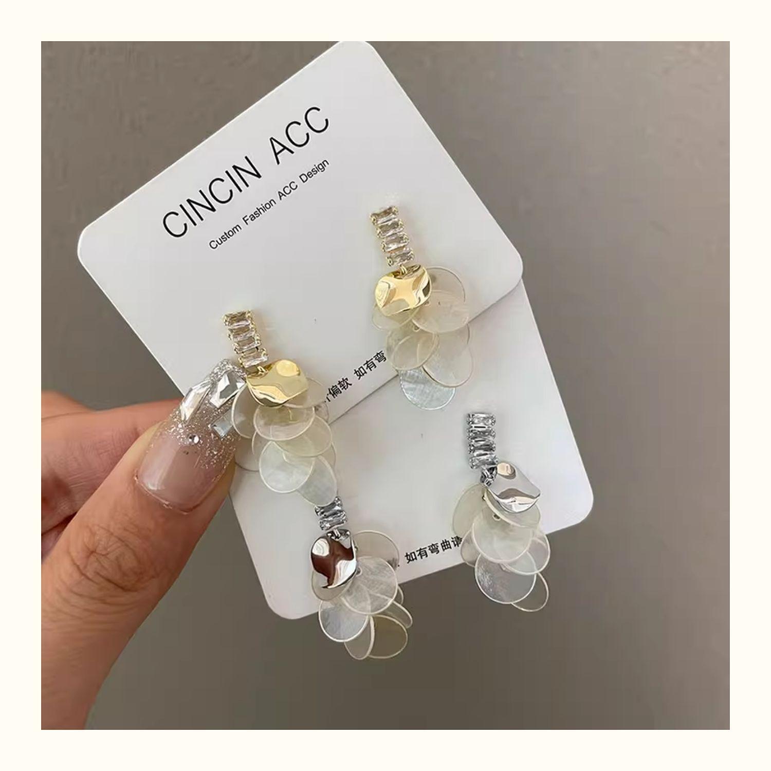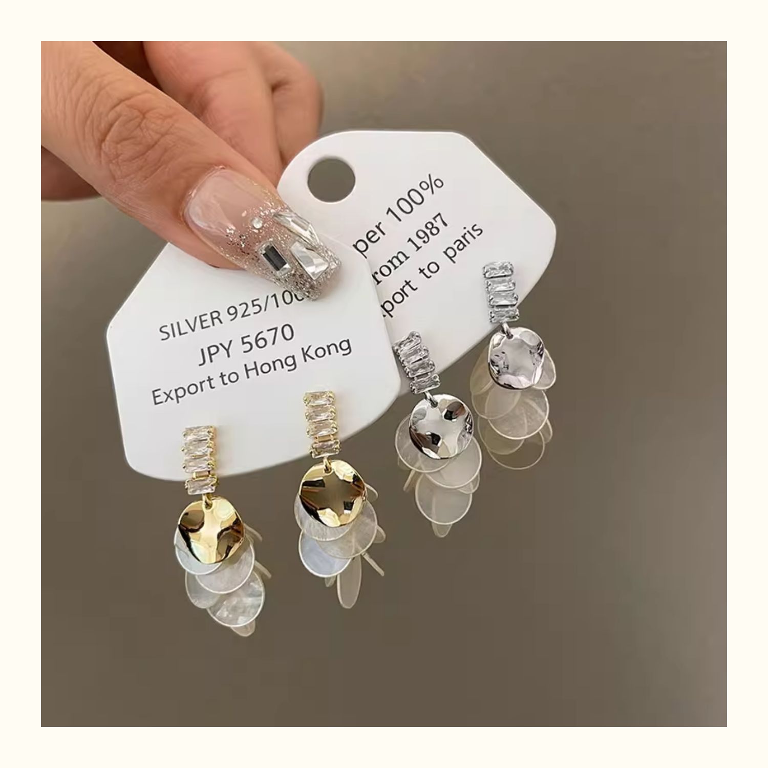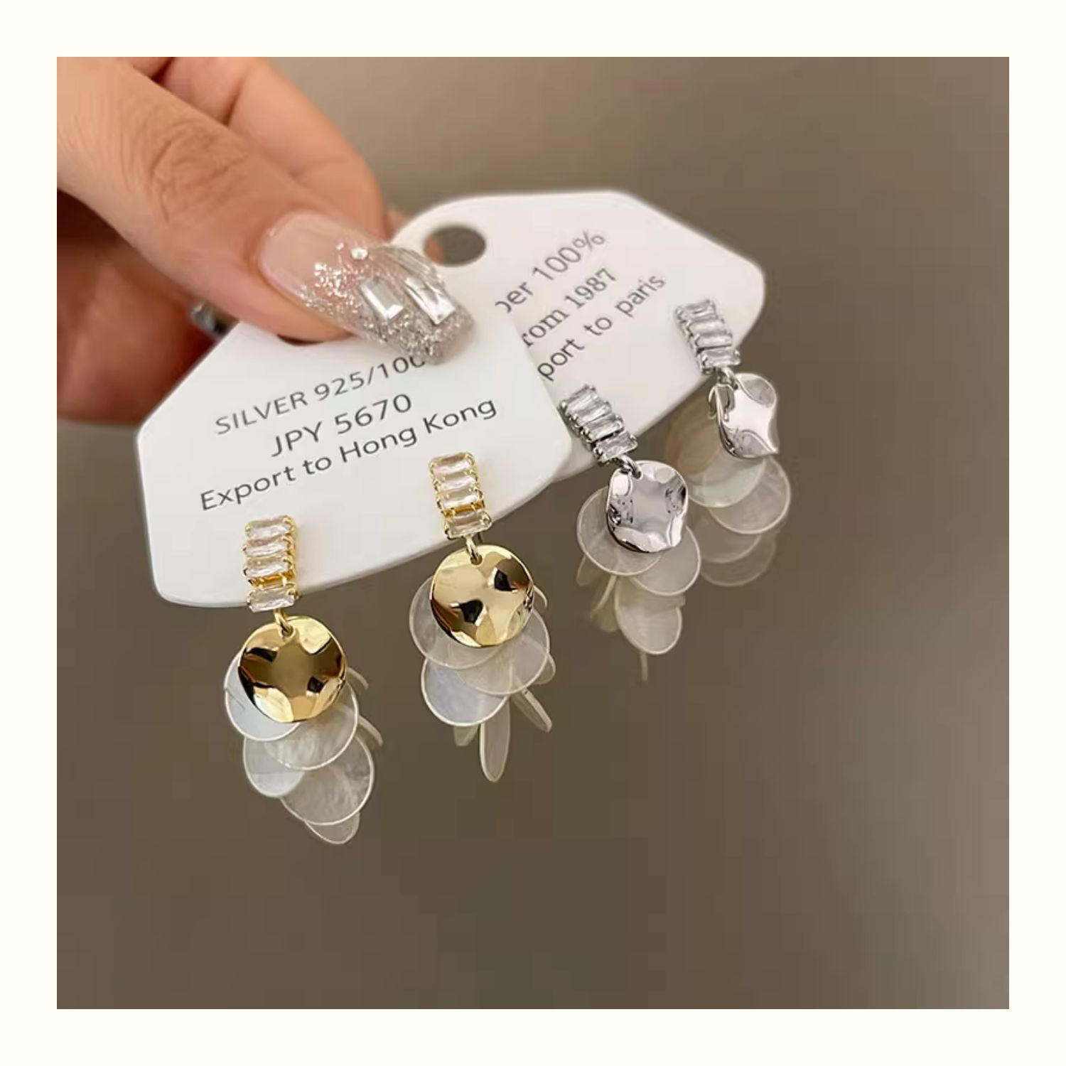 1990 gold zircon shell tassel earrings 925 silver needle, 199 silver zircon shell tassel earrings 925 silver needle