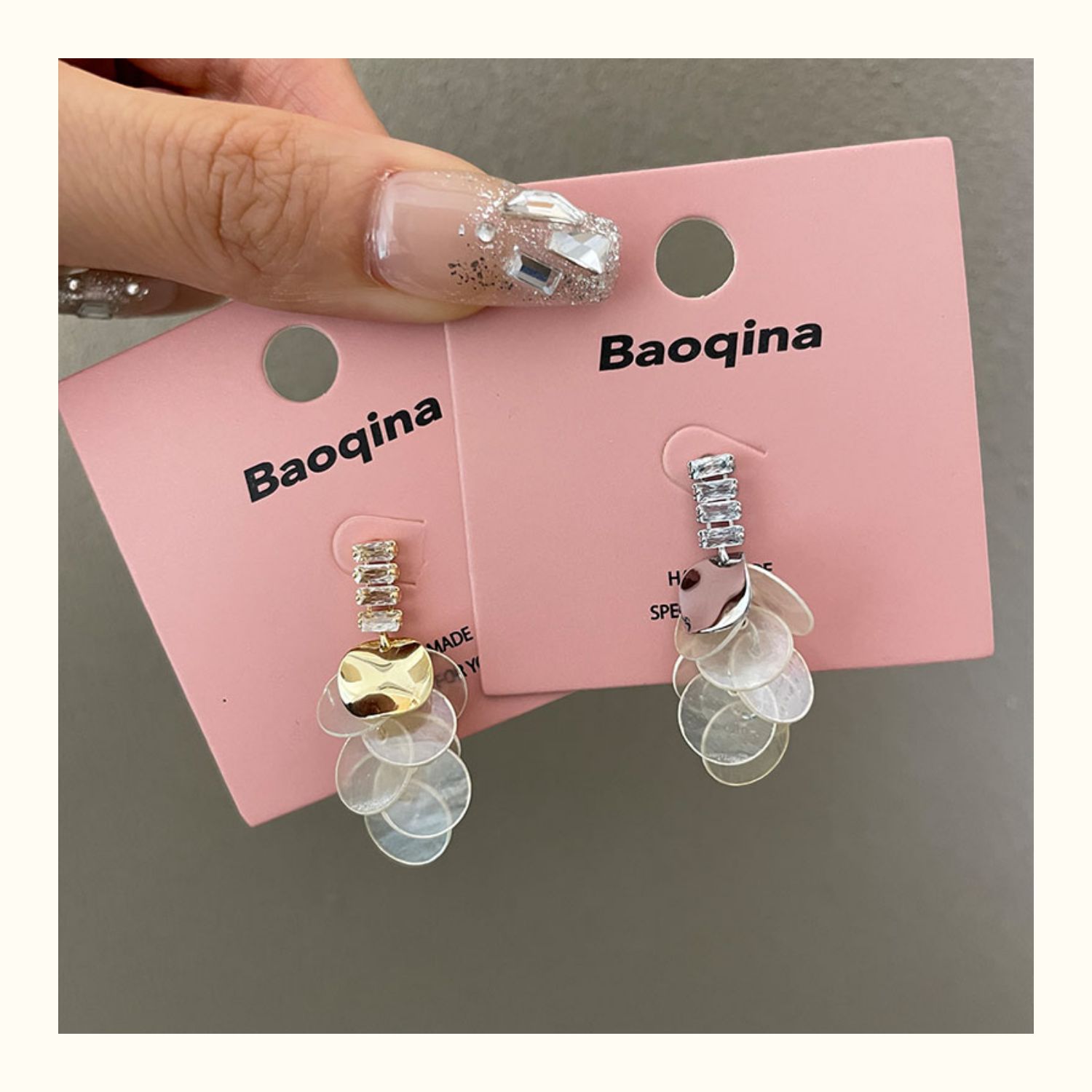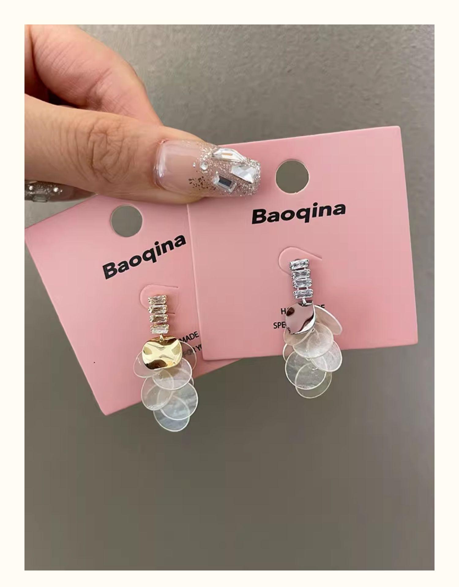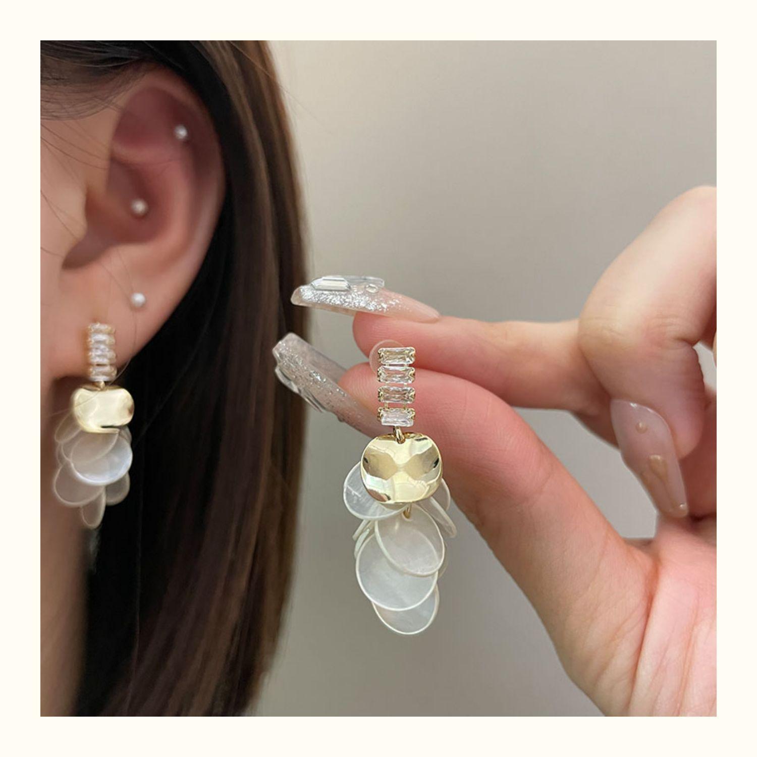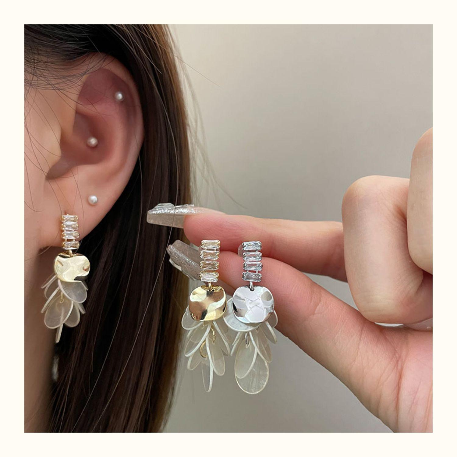 1990 gold zircon shell tassel earrings 925 silver needle, 199 silver zircon shell tassel earrings 925 silver needle