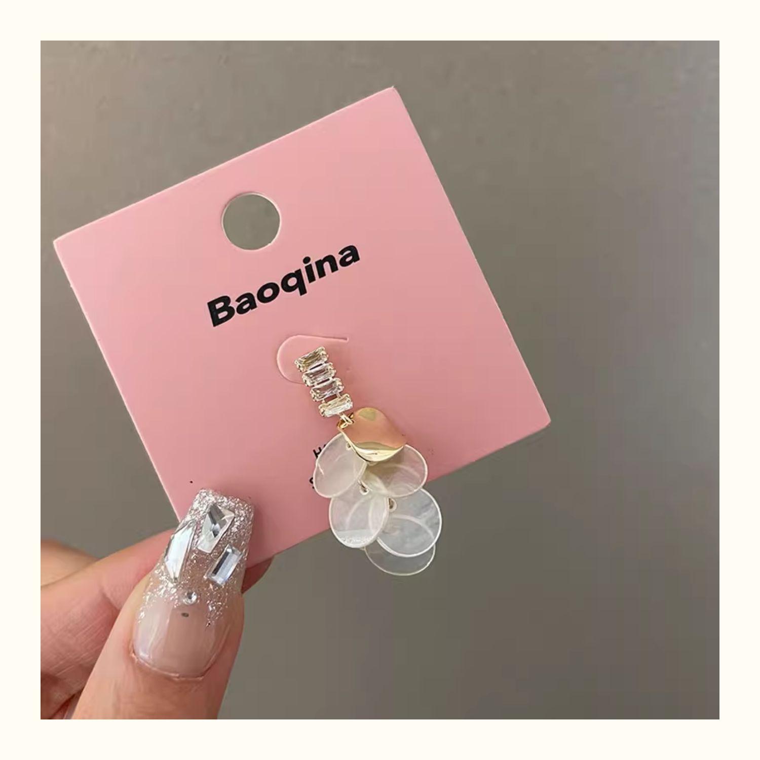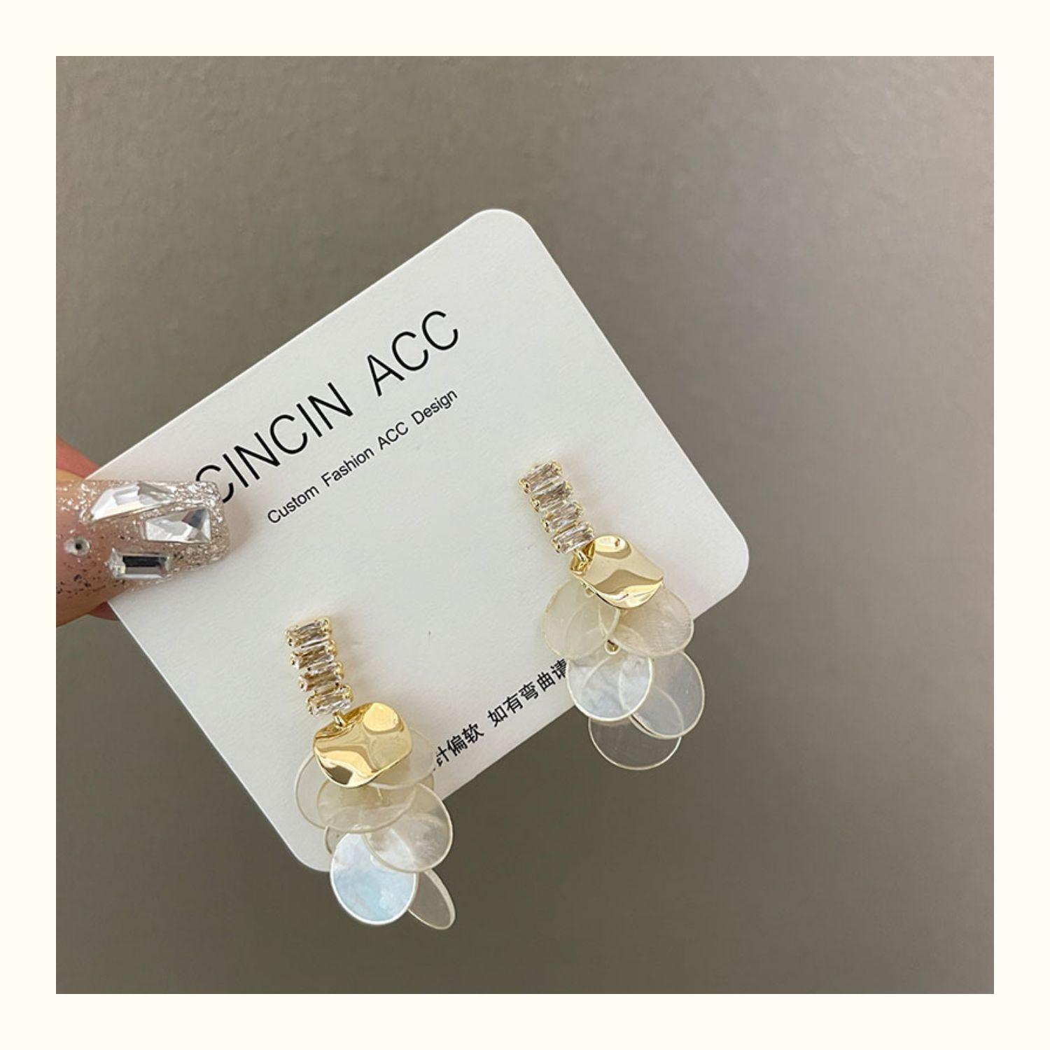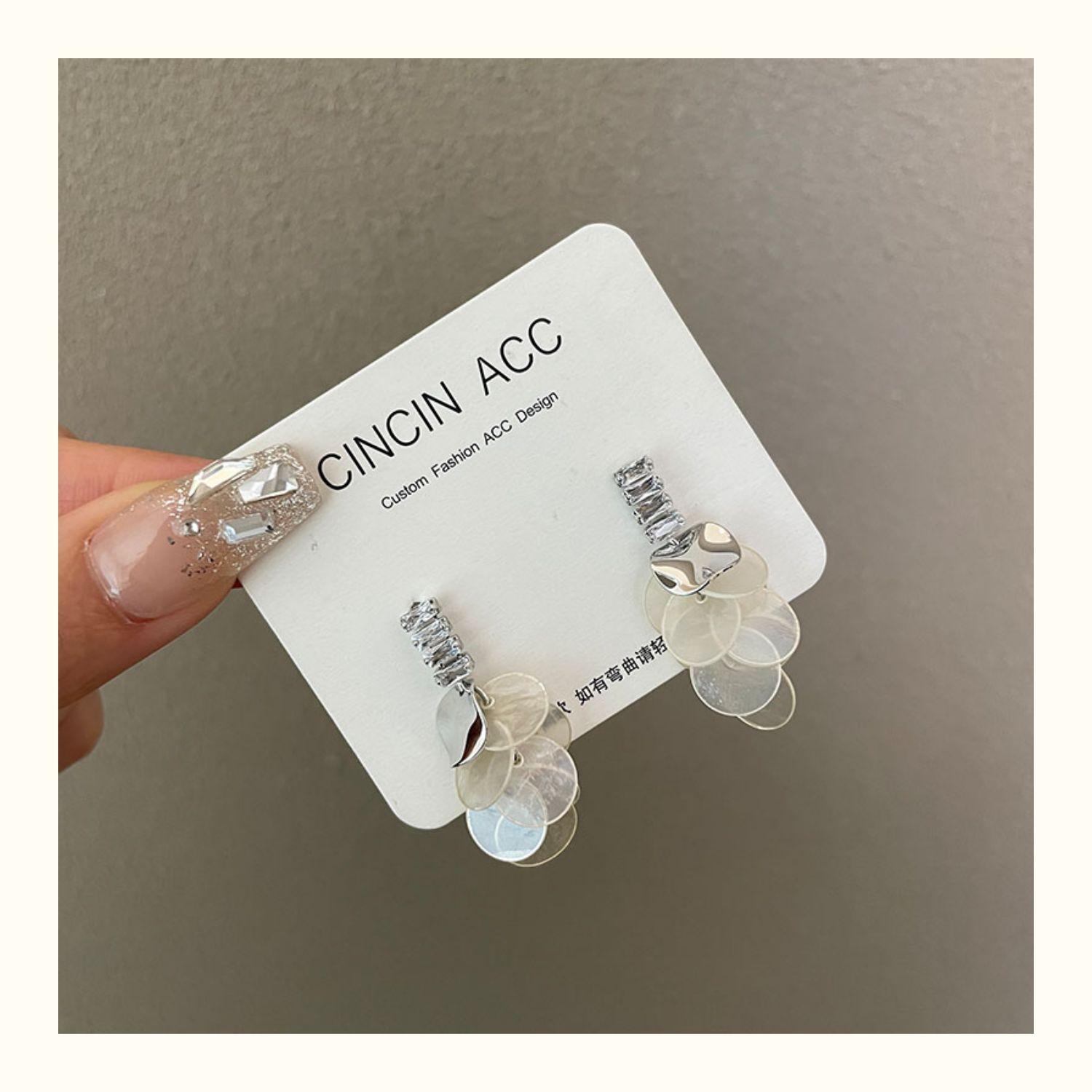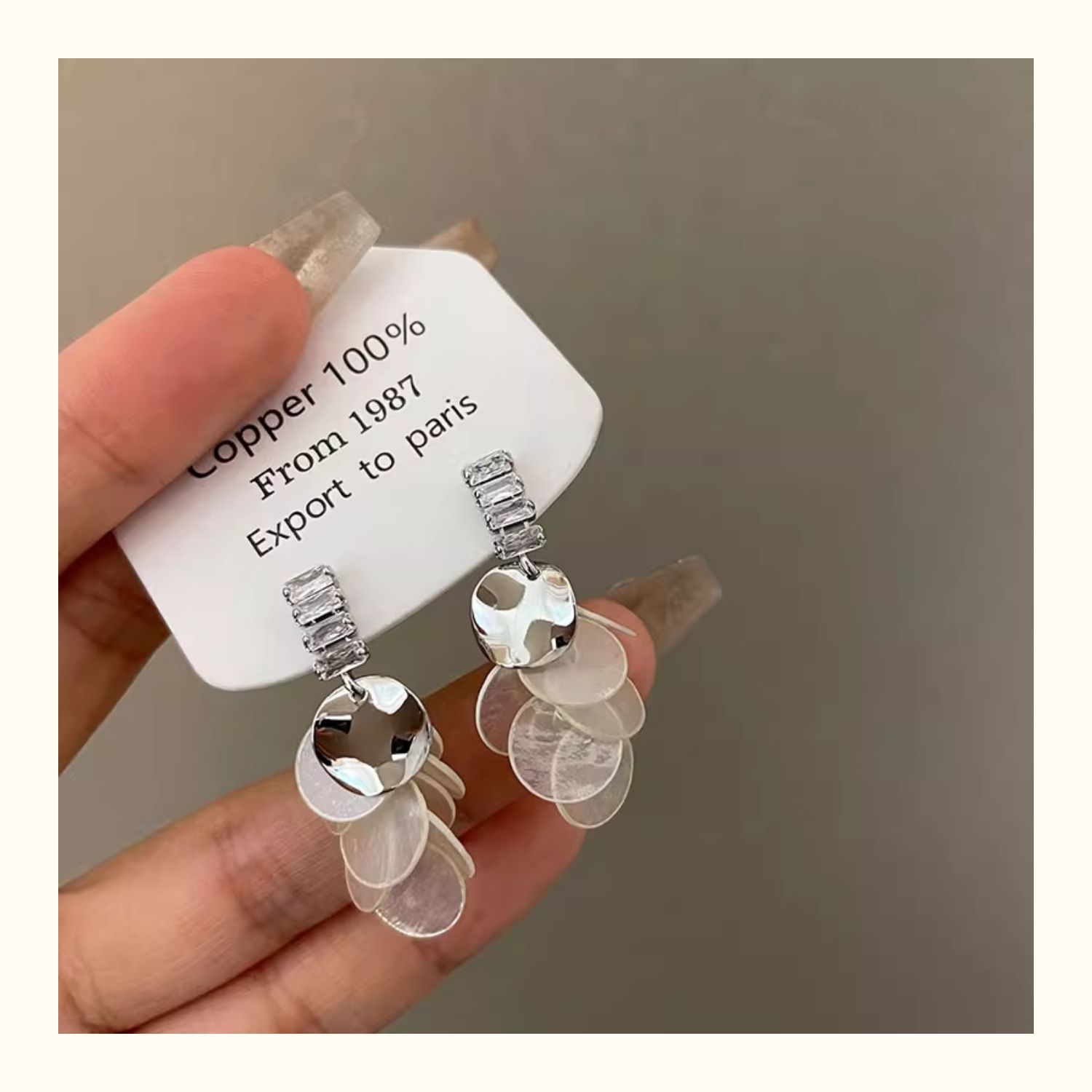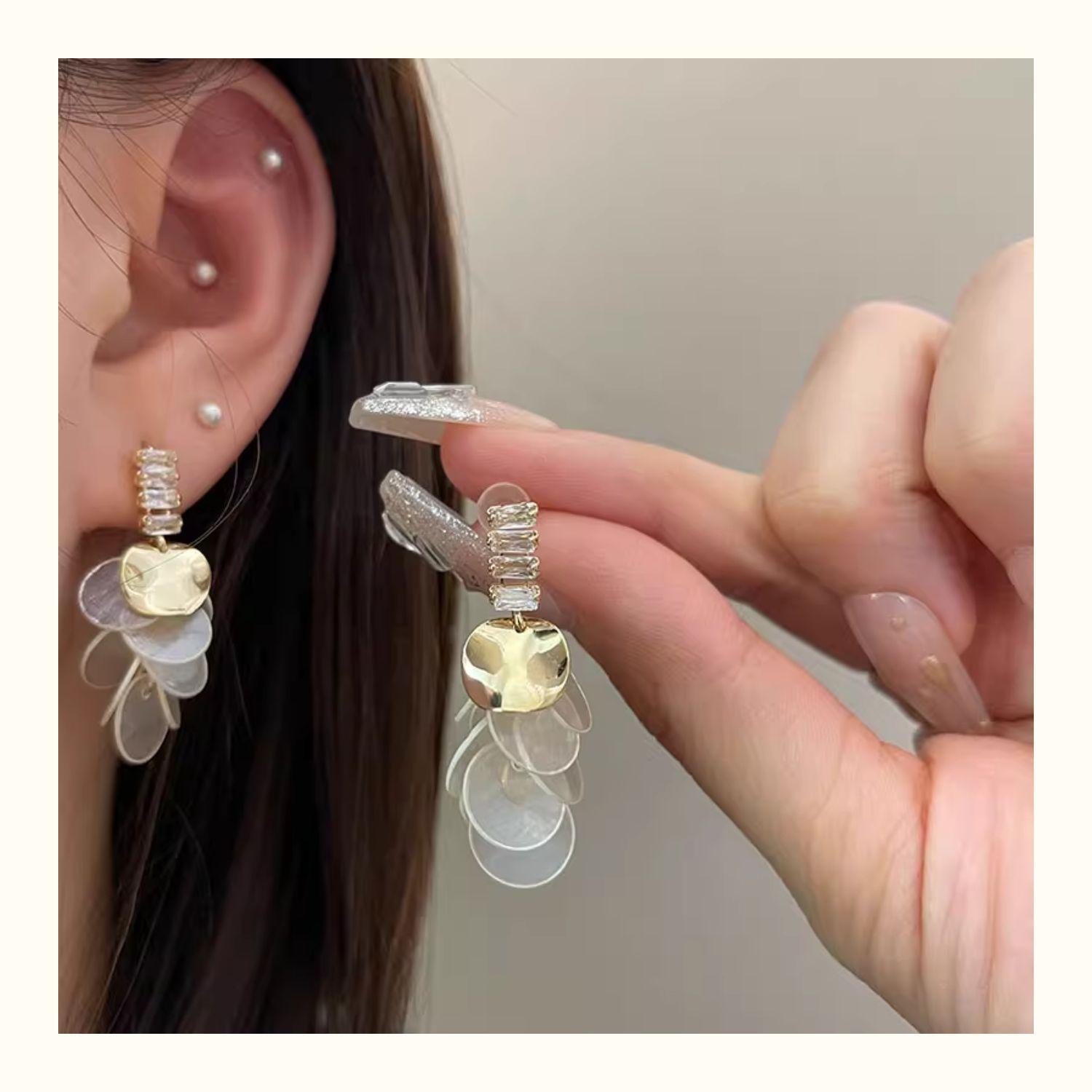 1990 gold zircon shell tassel earrings 925 silver needle, 199 silver zircon shell tassel earrings 925 silver needle