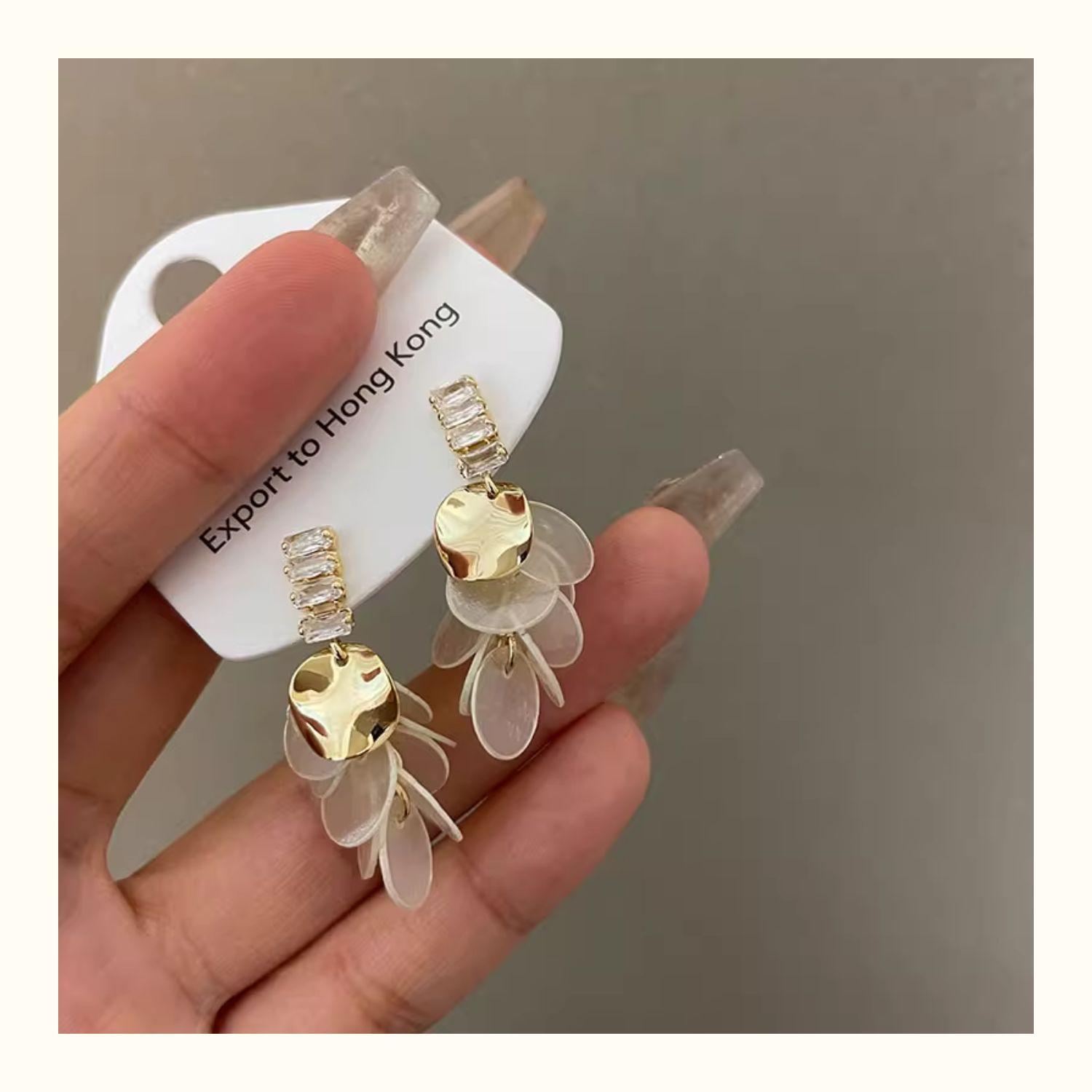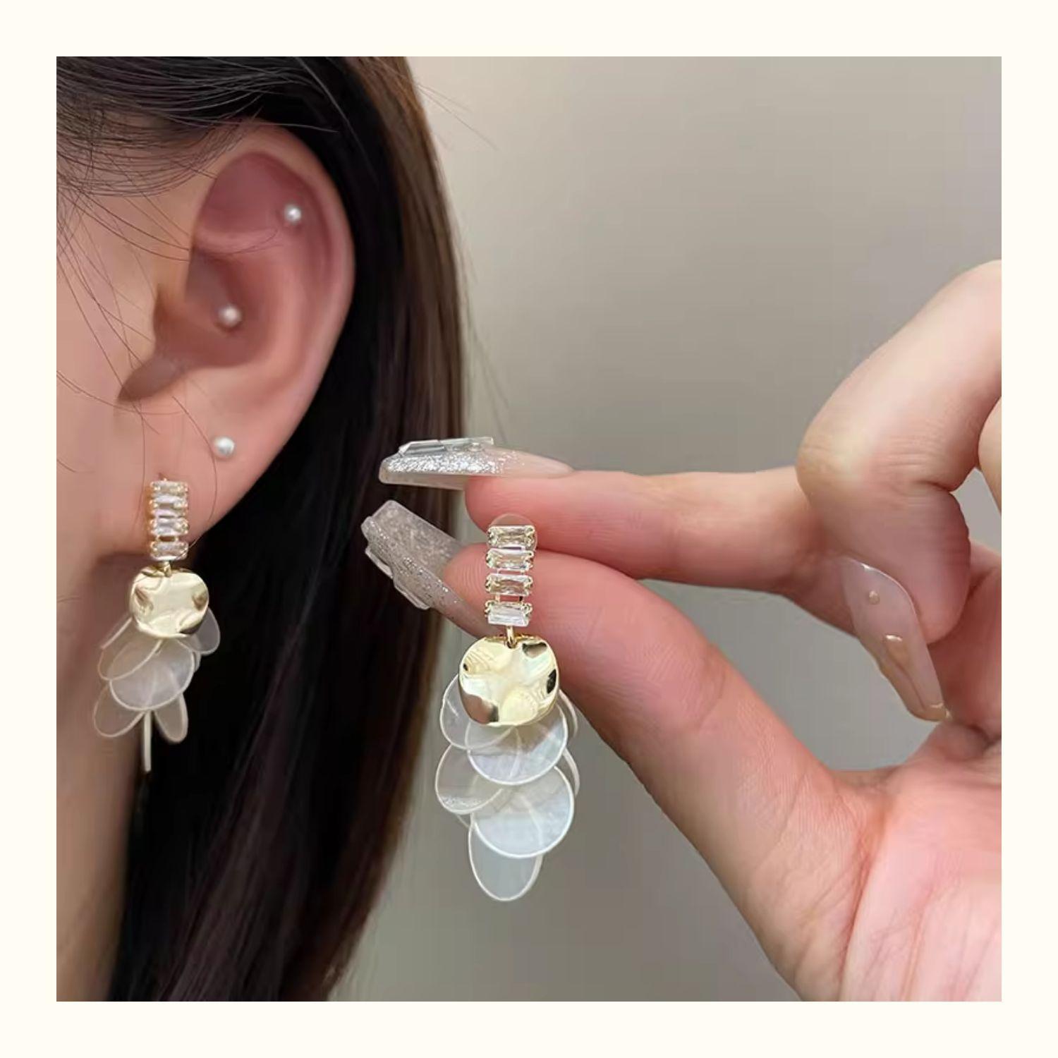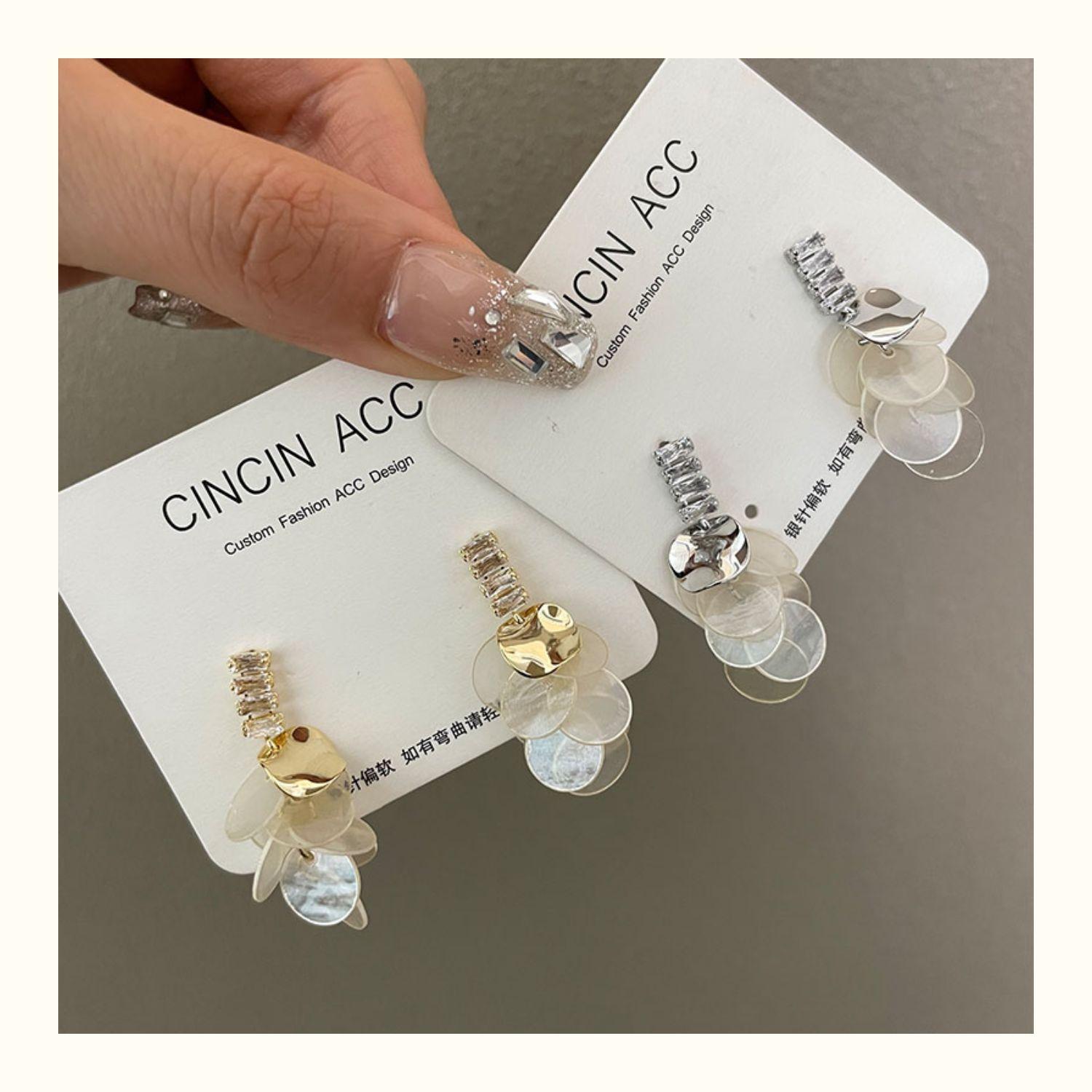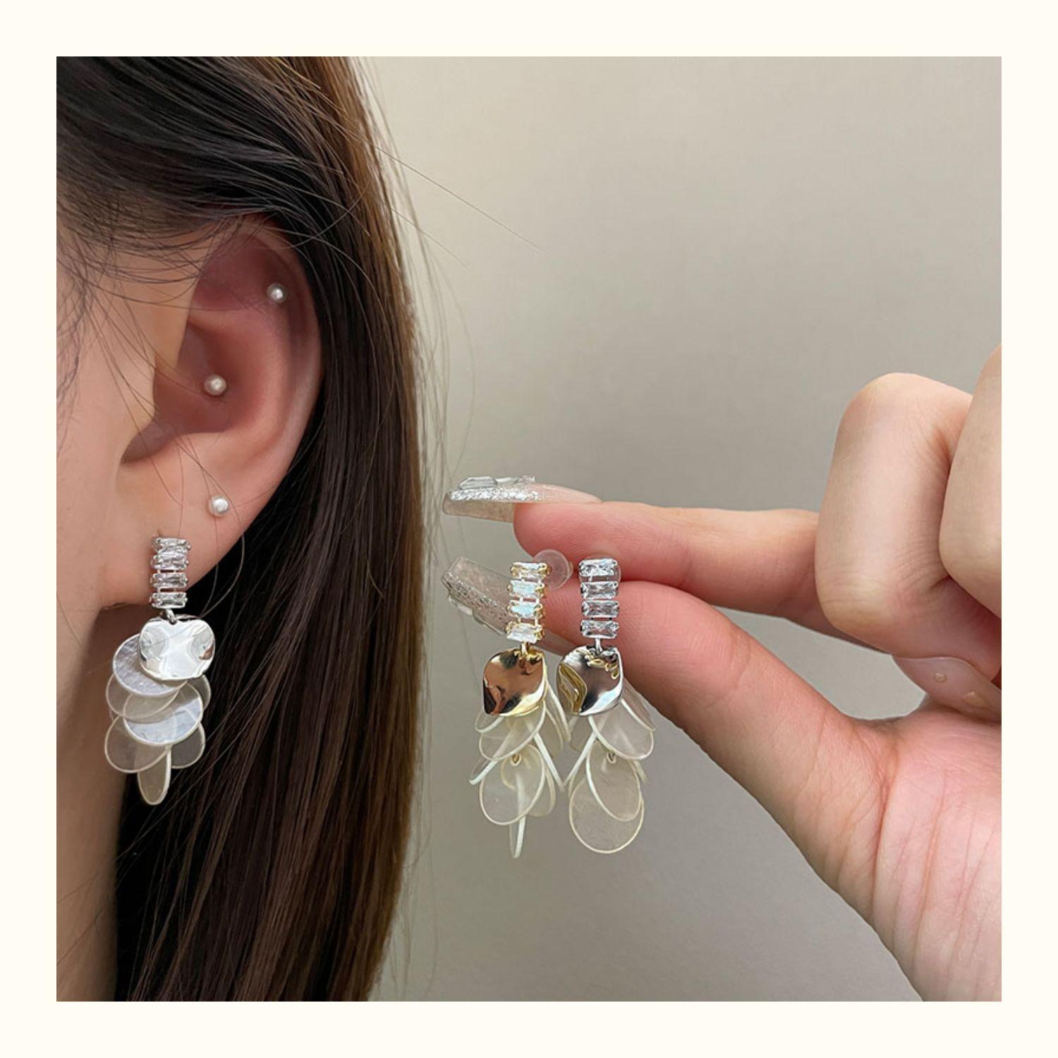 1990 gold zircon shell tassel earrings 925 silver needle, 199 silver zircon shell tassel earrings 925 silver needle