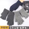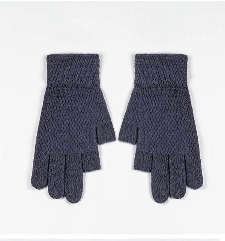Guantes de lana antideslizantes de punto con pantalla táctil de dos dedos, cálidos, de invierno, para hombre, estilo coreano, resistentes al frío, para deportes al aire libre y equitación.