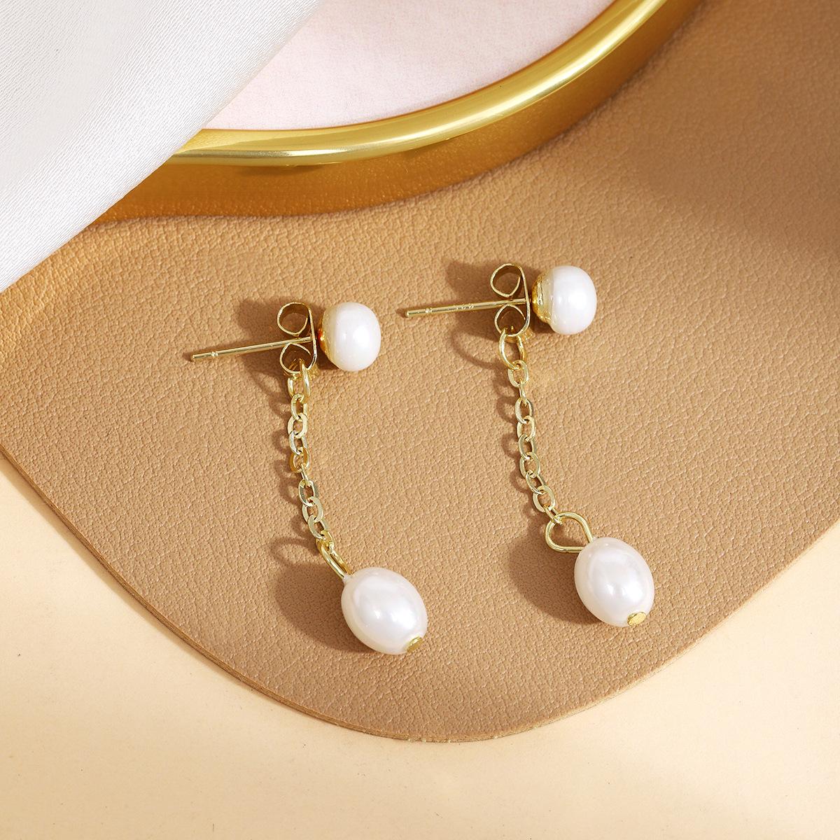 Pendientes de perlas de lujo, sencillos y ligeros, de estilo coreano con aguja plateada, de alta gama, con borlas desmontables de dos piezas para mujer.