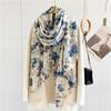 Bufanda de lana azul con pequeñas flores para mujer, otoño e invierno, nueva, de lana soluble en agua, larga, cálida, elegante, ligera, de lujo, chal largo.