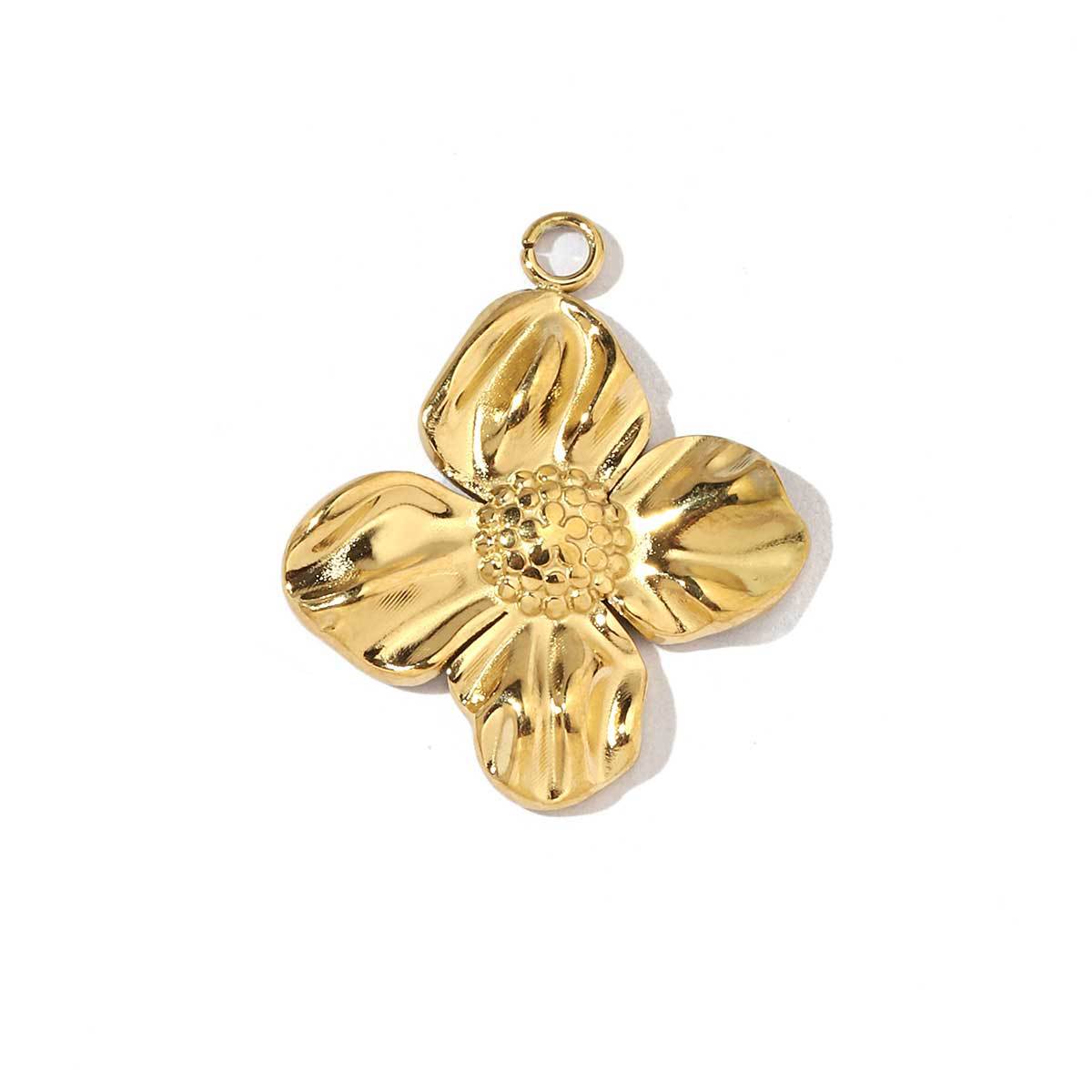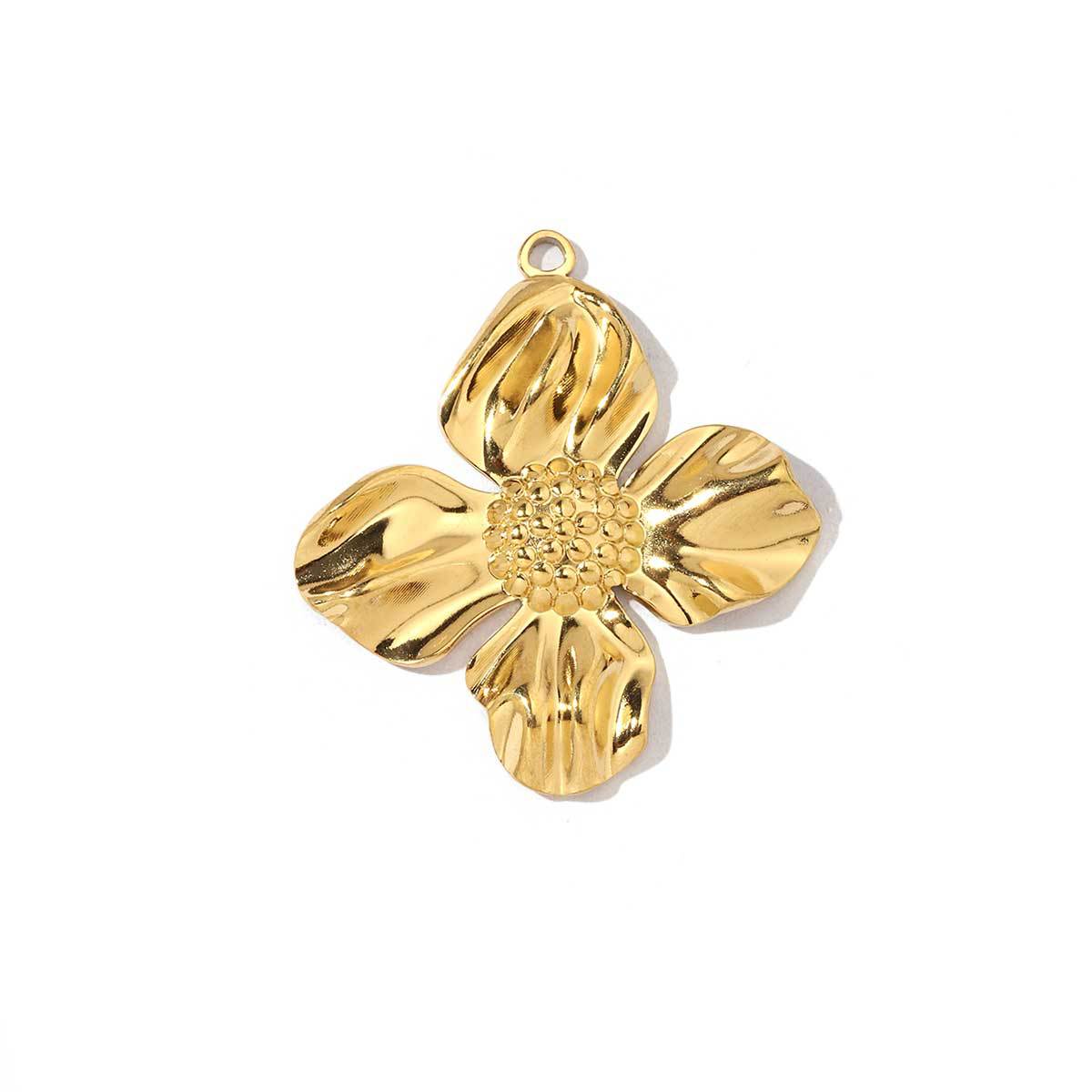 Collar con Colgante de Flor Francesa Trébol de Cuatro Hojas Acero Titanio Calado Geométrico Espiral Acero Inoxidable Oro Real DIY Accesorios de Joyería