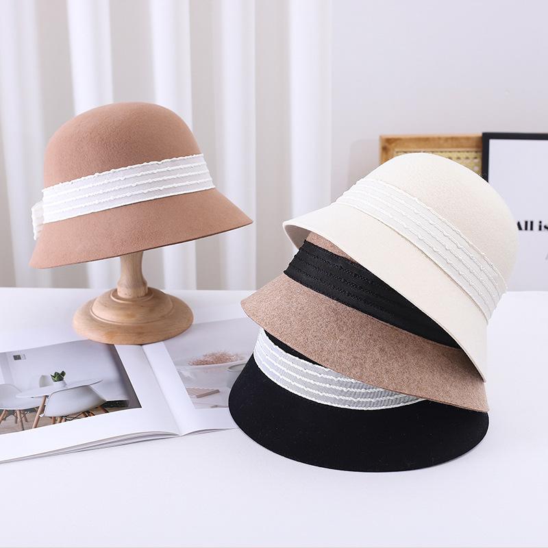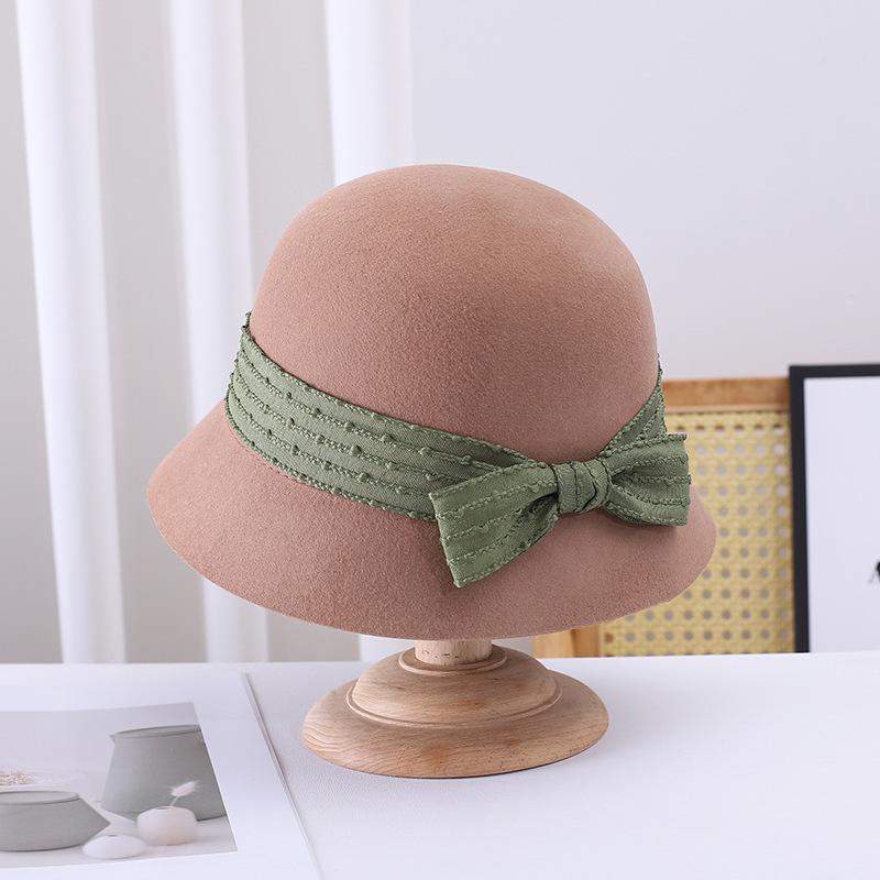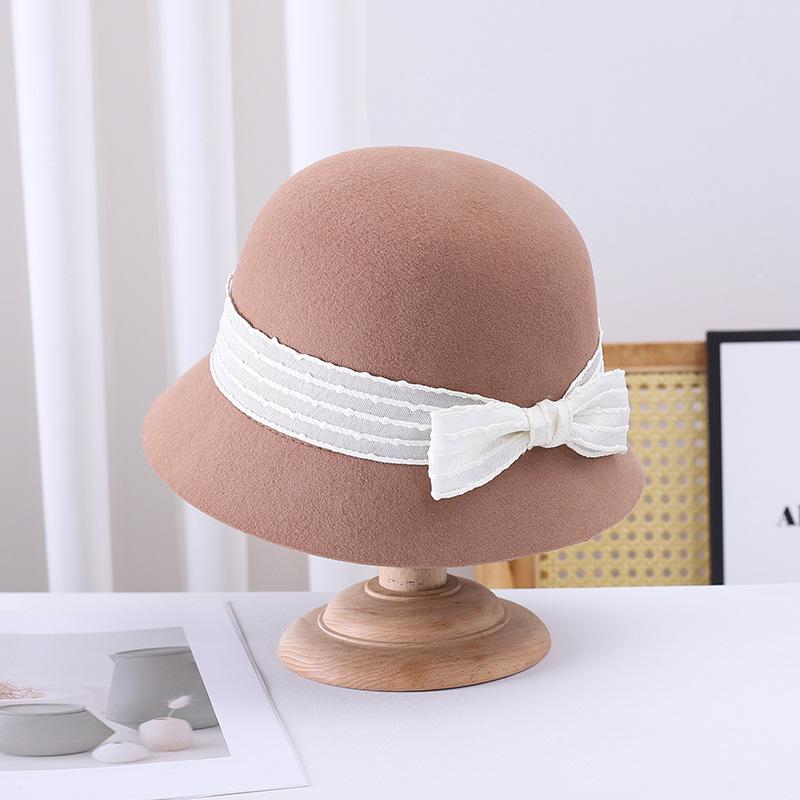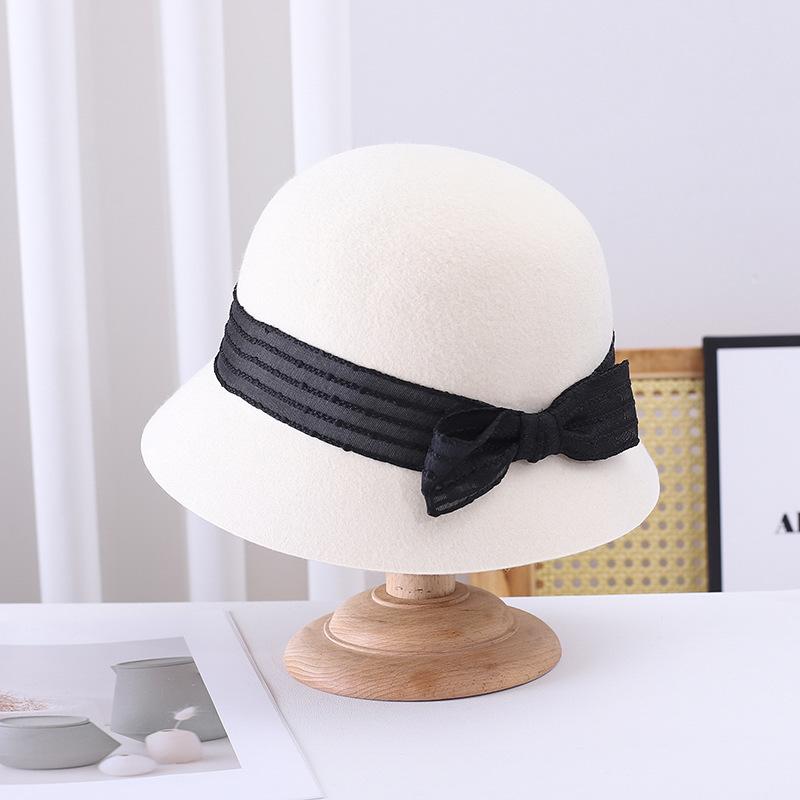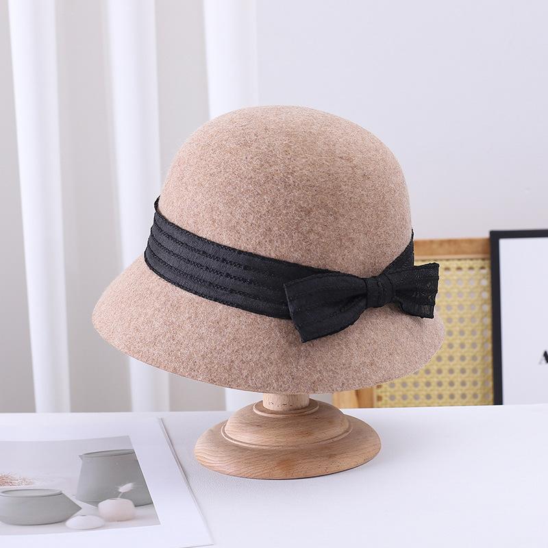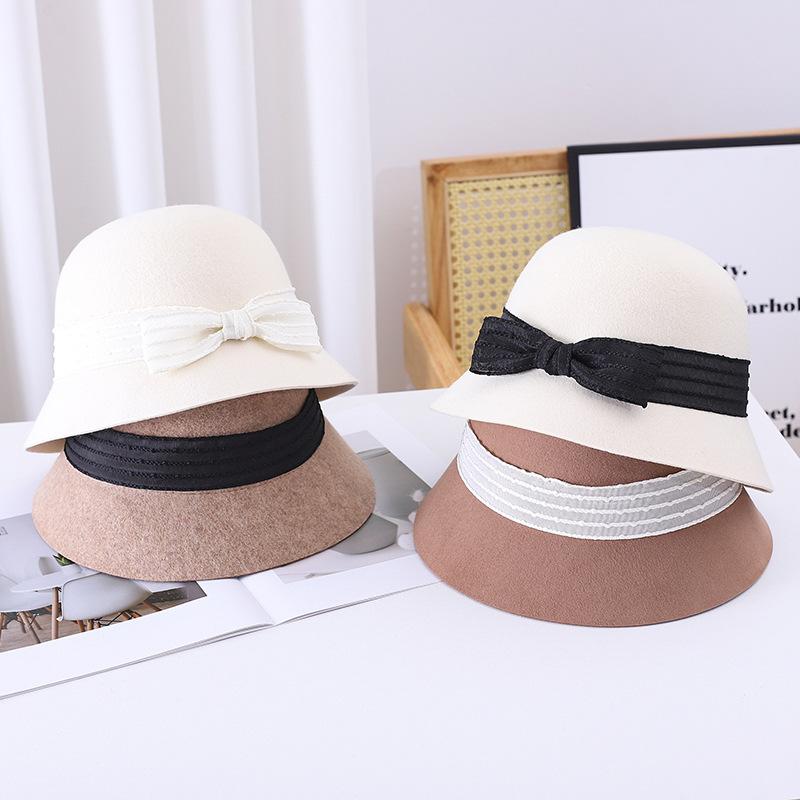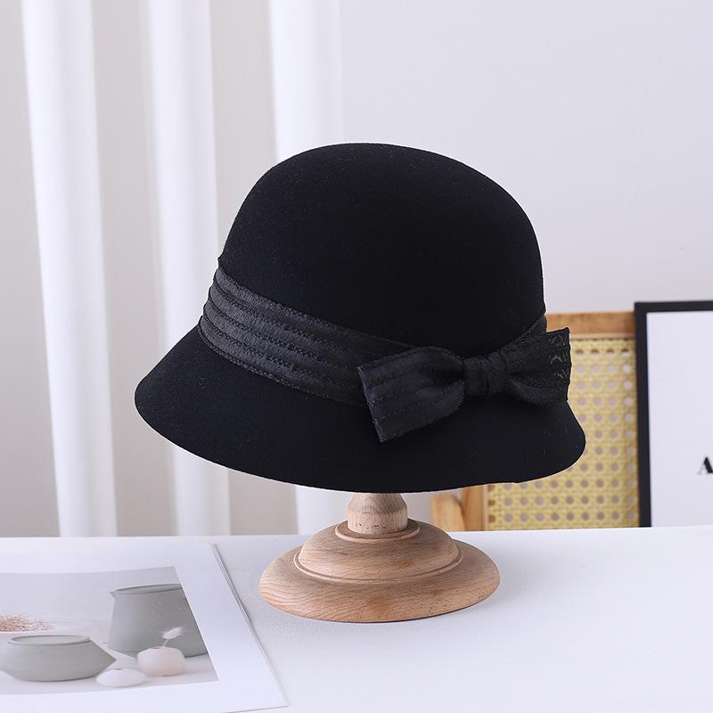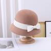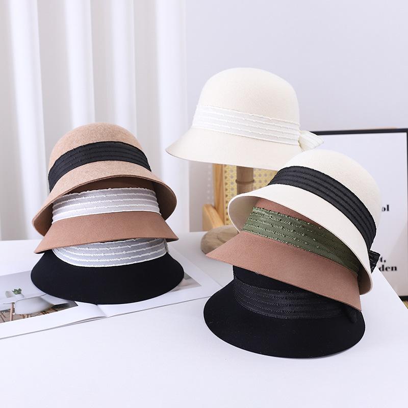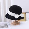 Sombrero de pescador pequeño de lana estilo francés Hepburn, estilo vintage, elegante, con lazo, color negro, marrón y marrón, para mujer, otoño e invierno, moda británica.