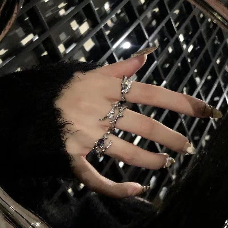 Anillo de Tres Piezas Estudiante Femenino Ins Diseño Nicho Trendy Gema Sentido Avanzado Personalidad Apertura Ajustable Anillo de Dedo para Dieta
