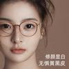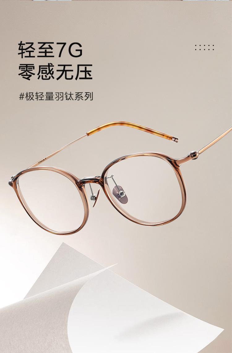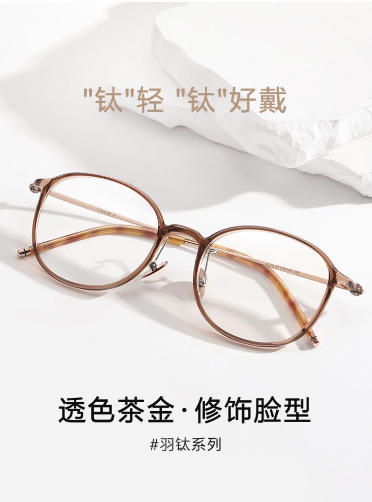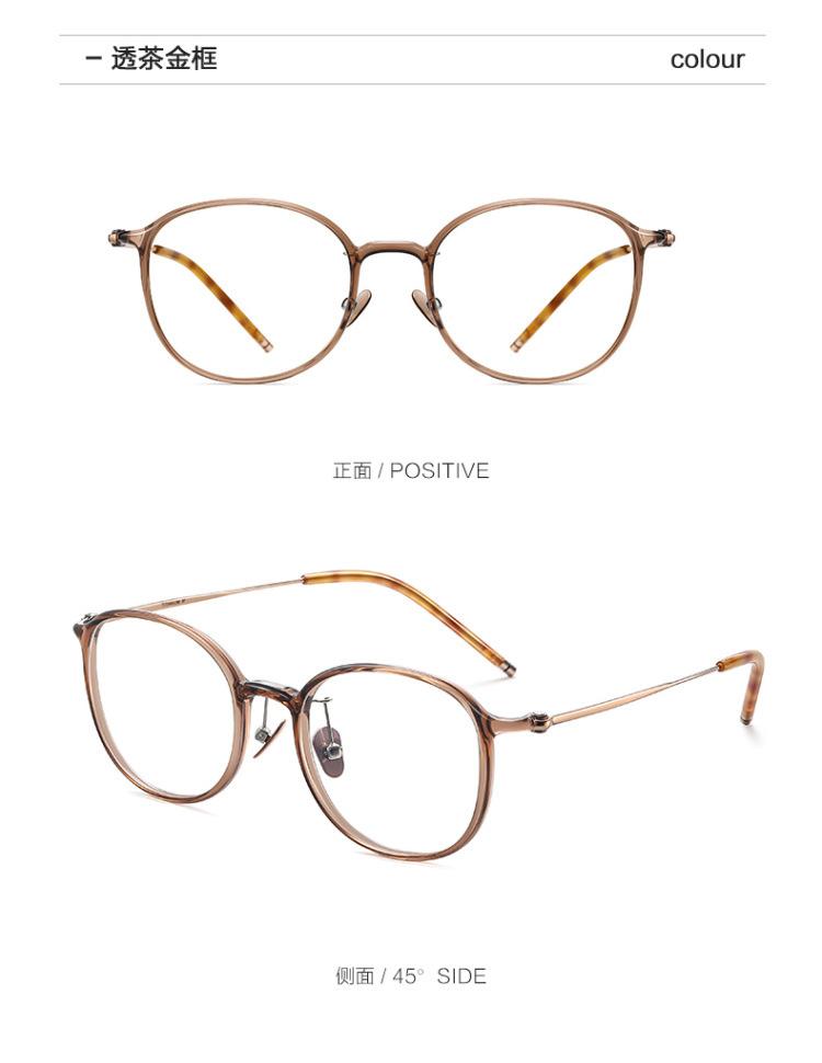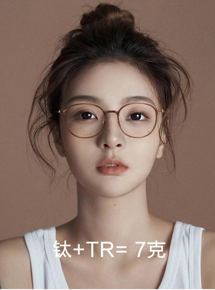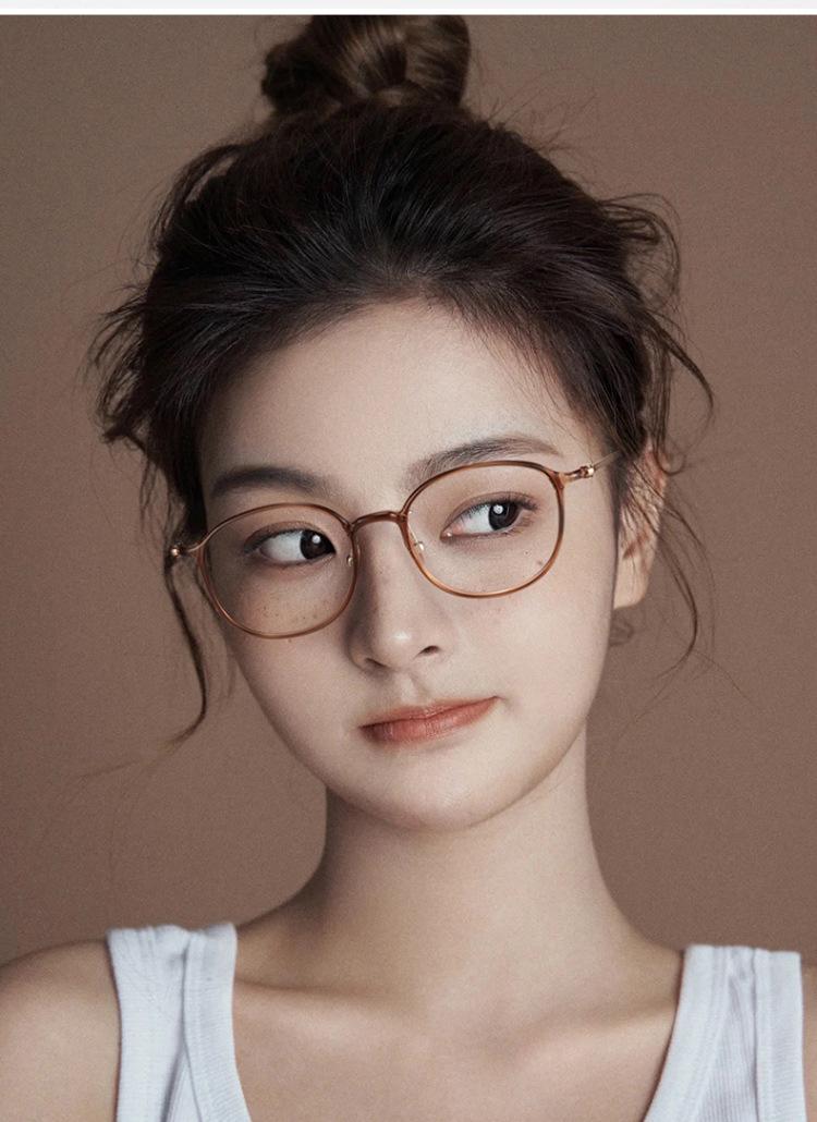 Versión coreana de marco de ojos marrones ultra claros de titanio puro con miopía, luz azul anti-grado ajustable, cara redonda de mujer sin maquillaje, sensación de alta gama