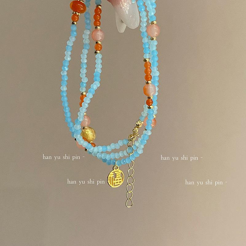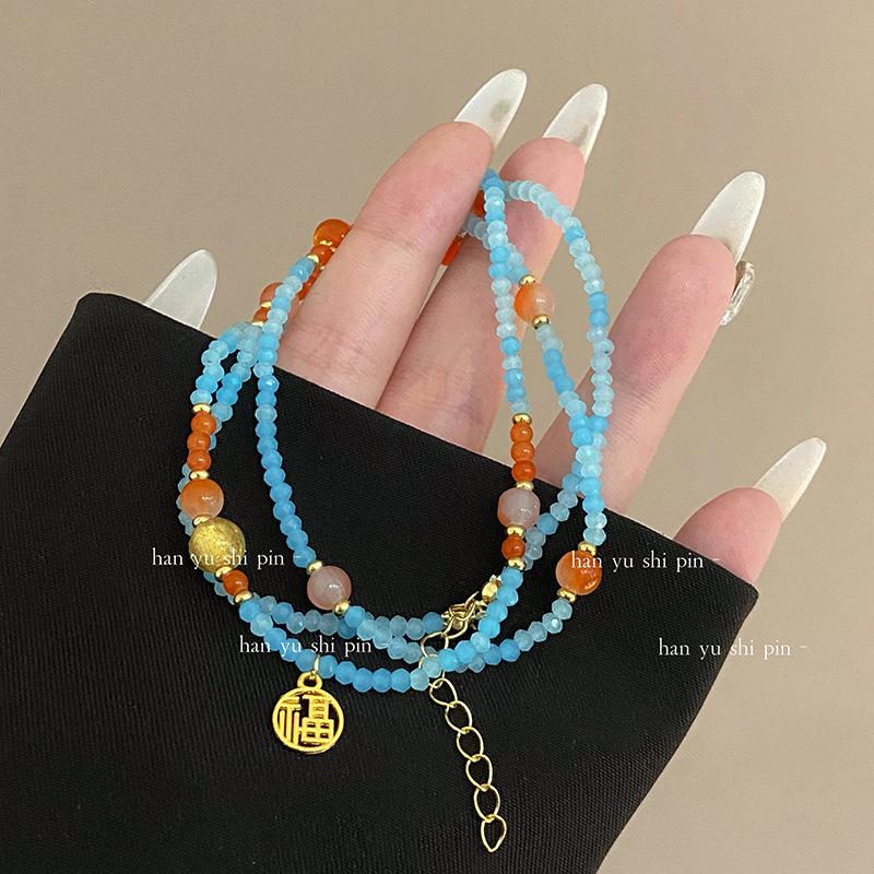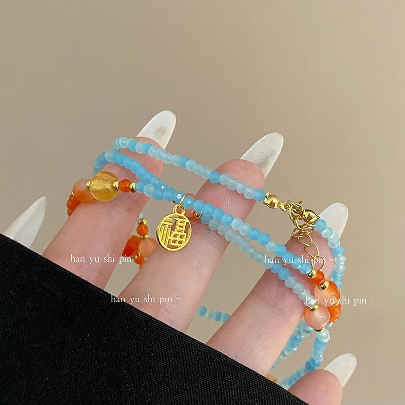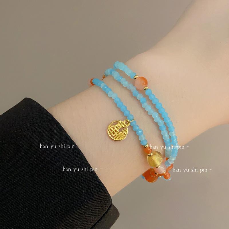 Nueva pulsera multicapa con cuentas de colores chinos, diseño de nicho, exquisita pulsera retro con colgante de la fortuna, pulsera de moda