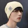 Gorro de lana para hombre, de otoño e invierno, sencillo, combinable, cálido, para ciclismo al aire libre, con forro polar resistente al frío y protección para los oídos.