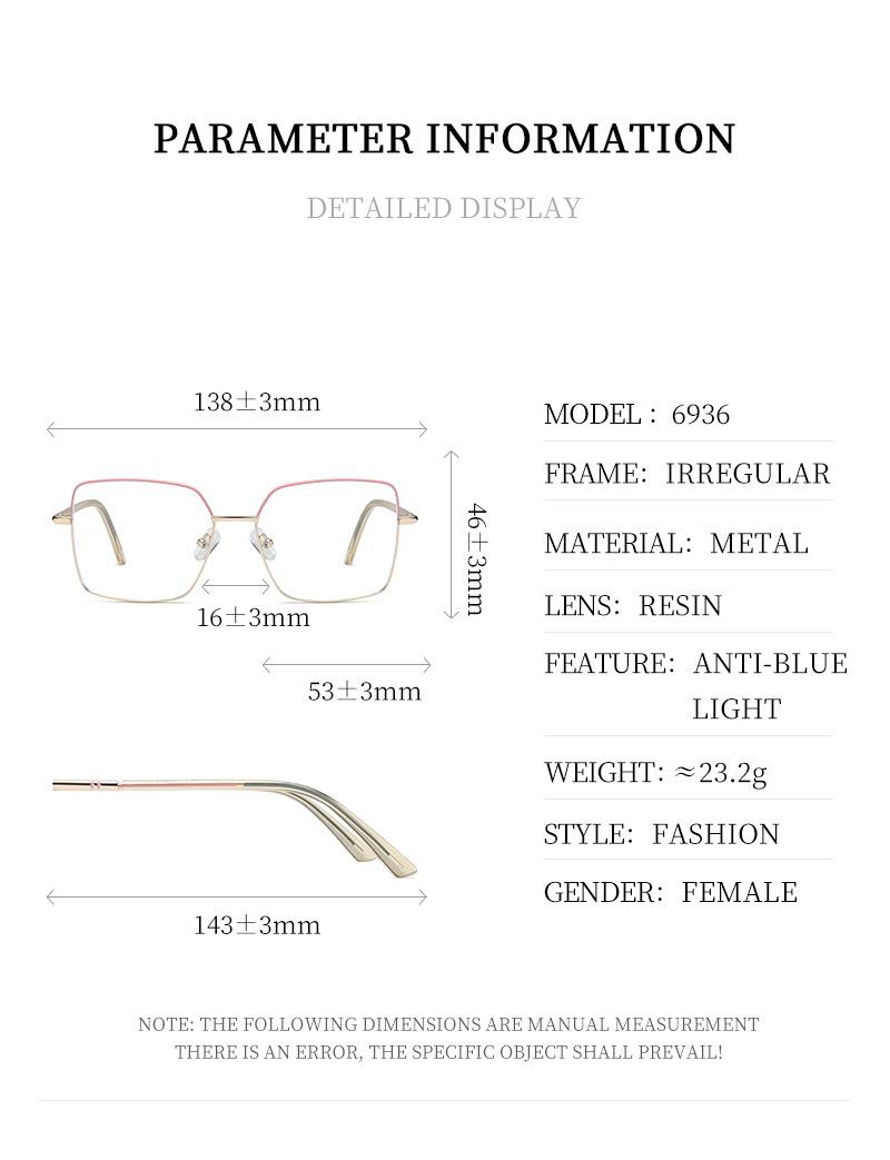 Montura de gafas transfronteriza de metal con diseño retro, montura de gafas con protección contra la luz azul, gafas para miopía femenina.