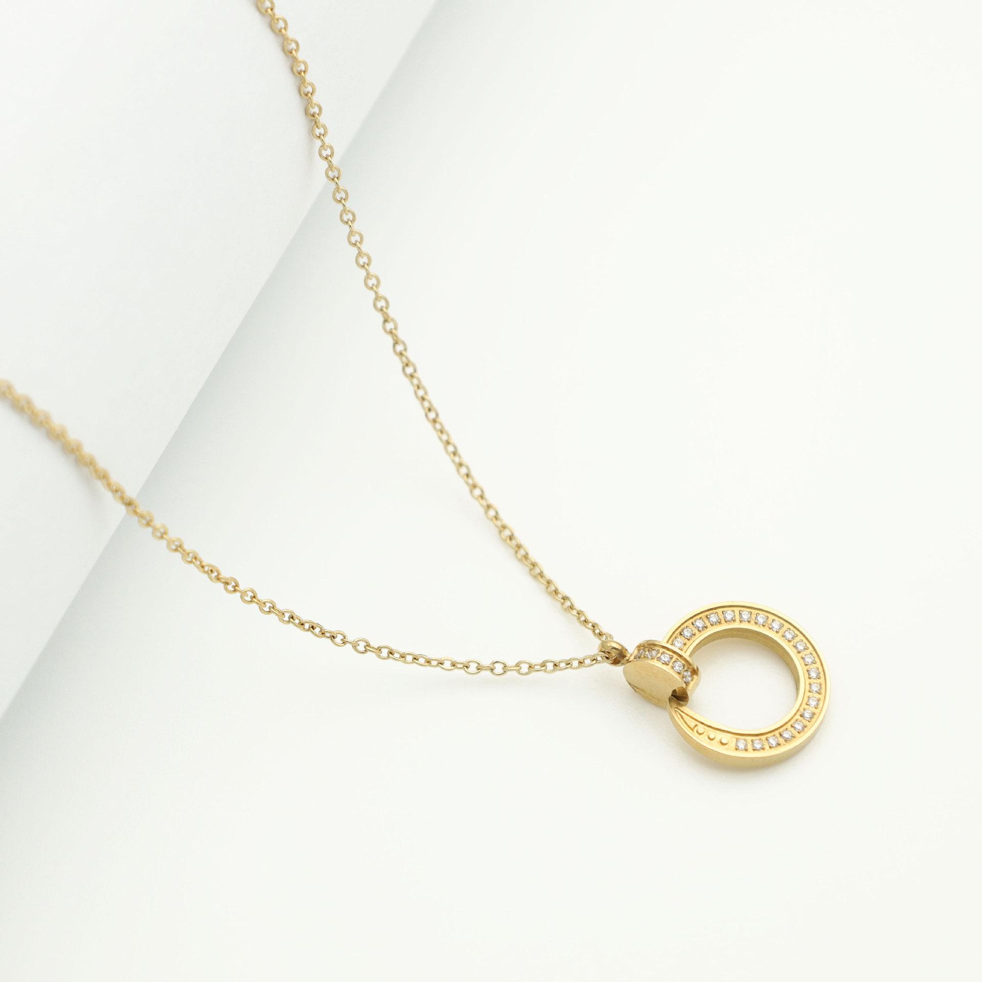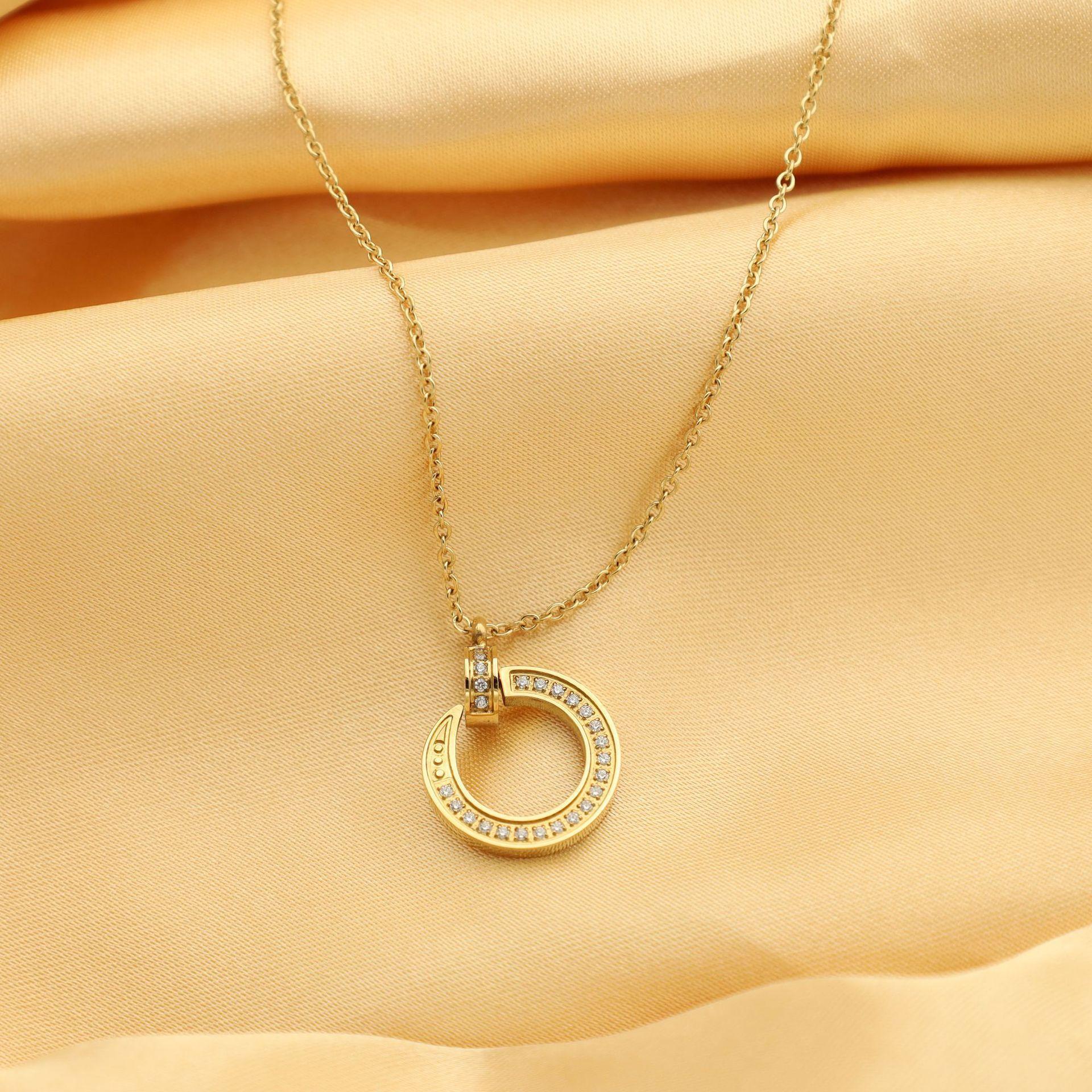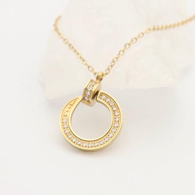 Collar con incrustaciones de diamantes tipo C, estilo Ins, de gran venta transfronteriza, colgante de diseño de nicho para mujer, cadena de clavícula de acero de titanio sin color.