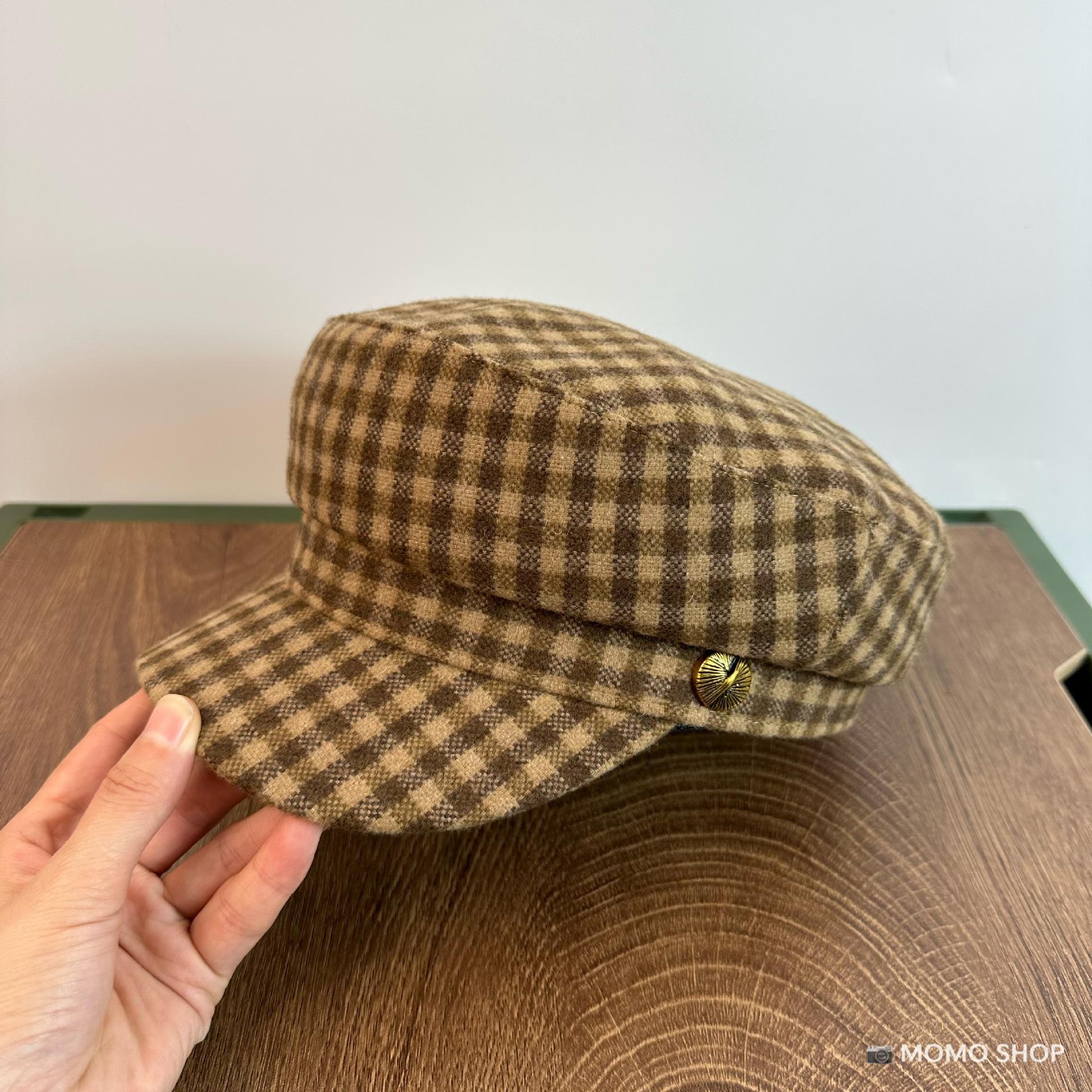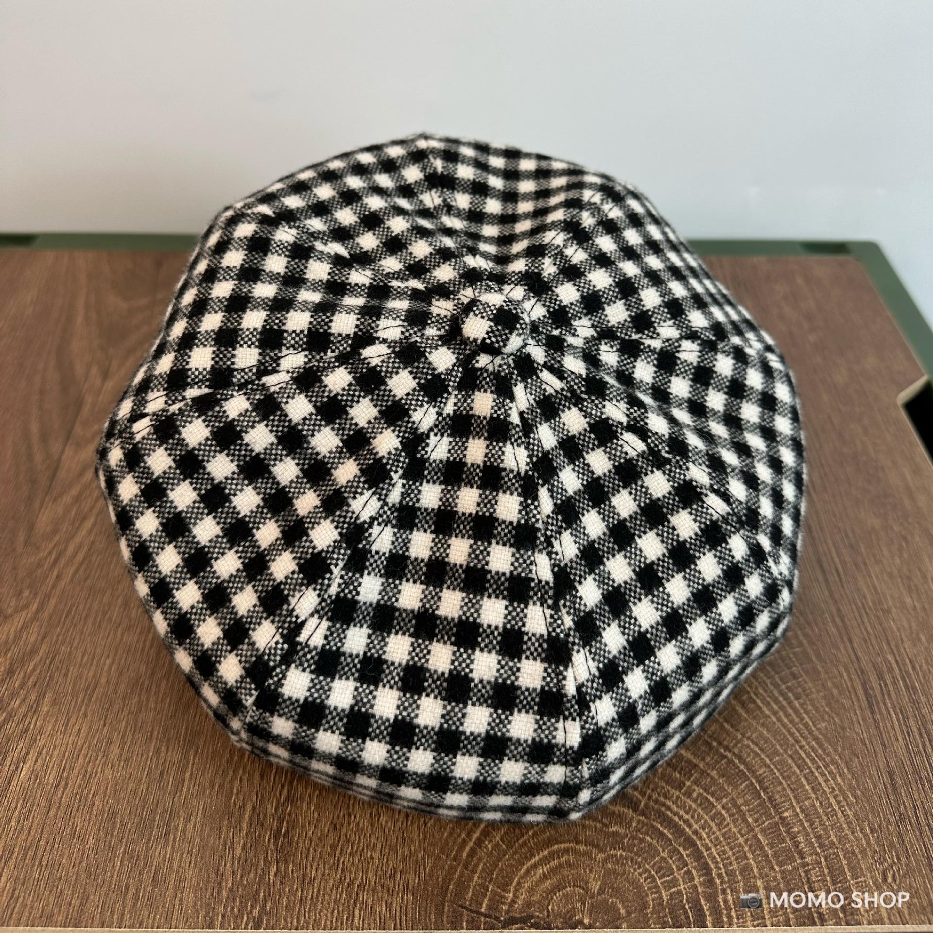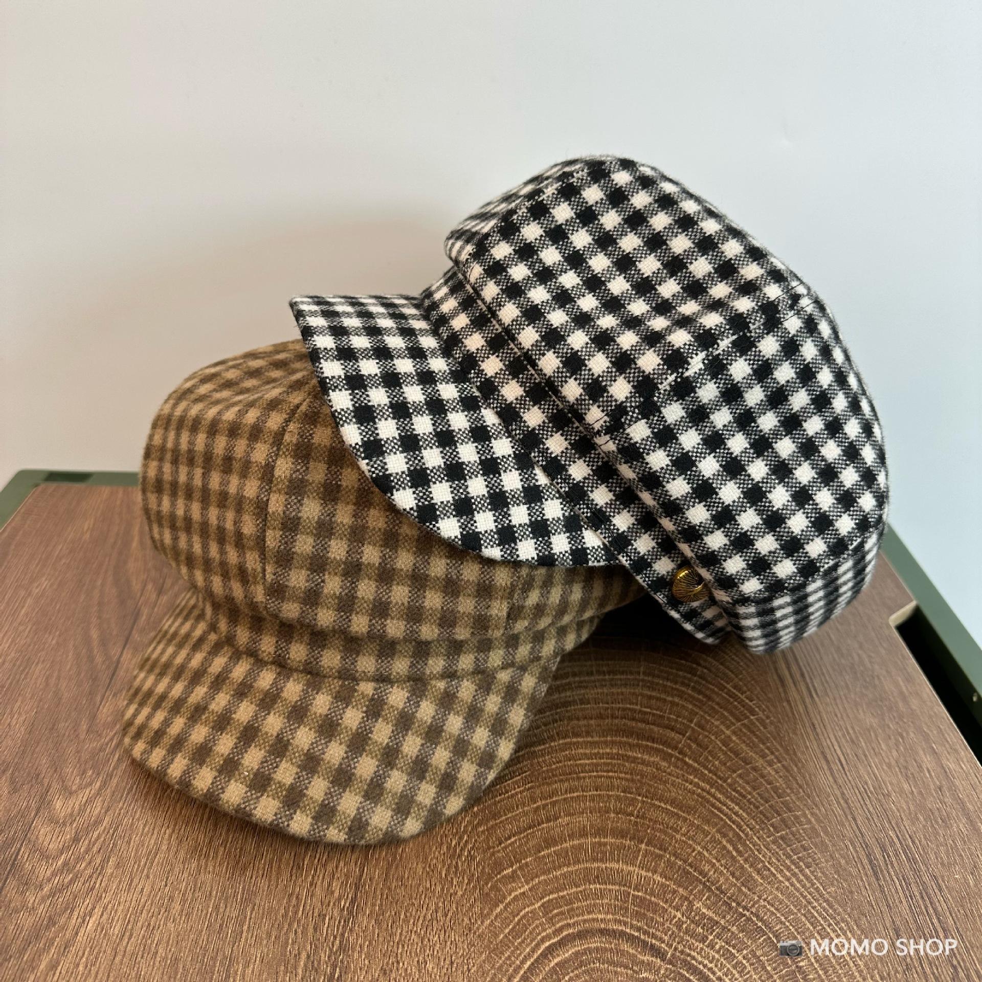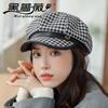 Combinación de moda ~ Sombrero octogonal de pata de gallo estilo navy británico para mujer, moda otoño-invierno, temperamento marrón, blanco, sombrero de pintor