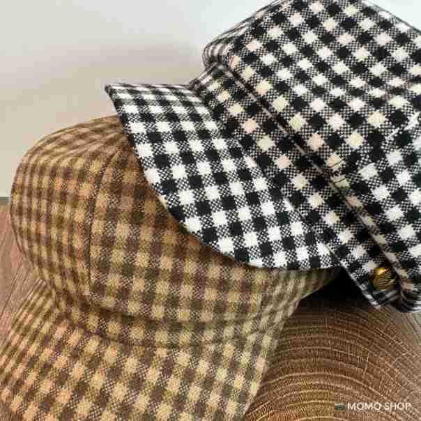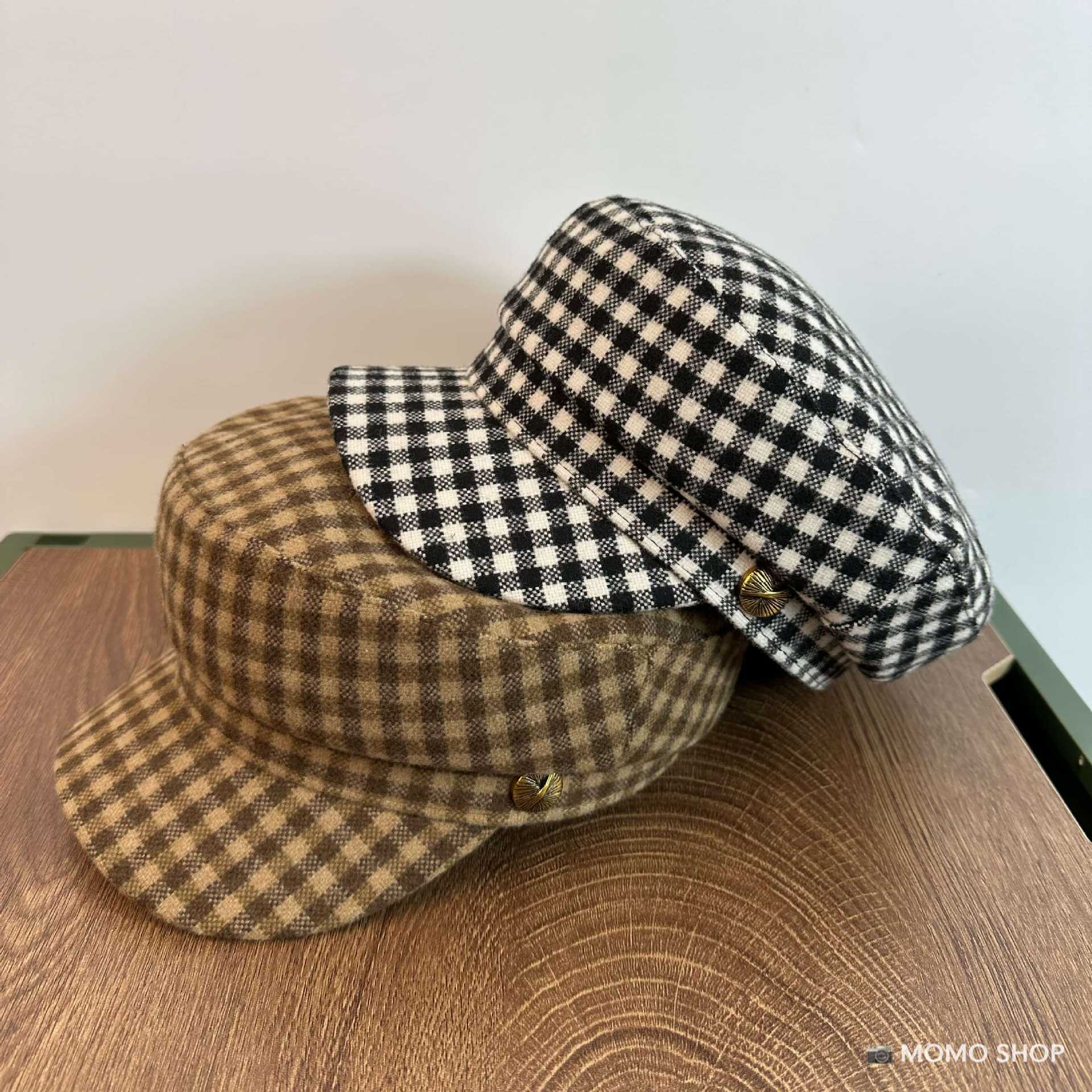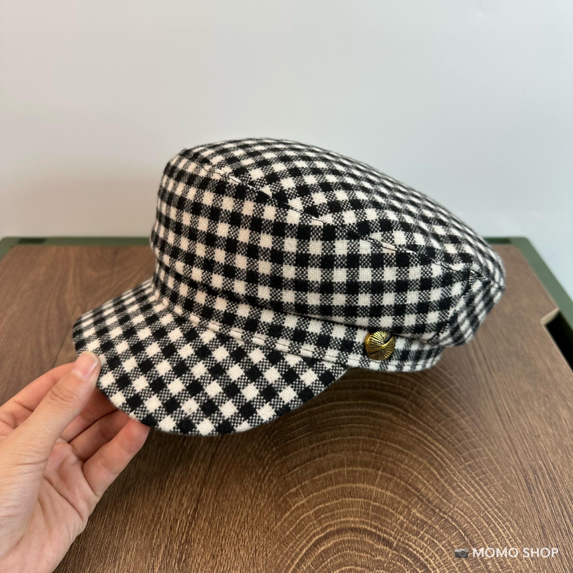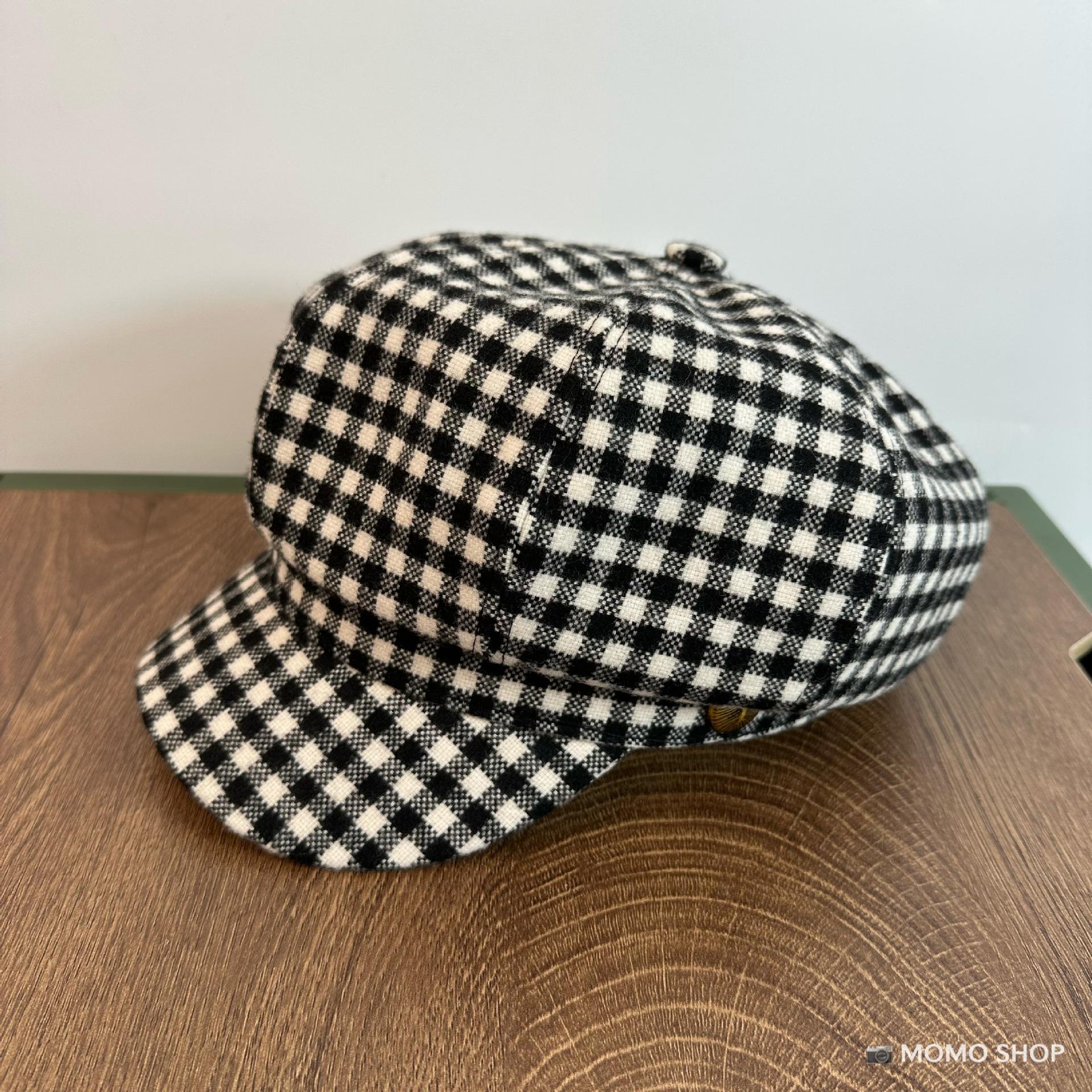 Combinación de moda ~ Sombrero octogonal de pata de gallo estilo navy británico para mujer, moda otoño-invierno, temperamento marrón, blanco, sombrero de pintor